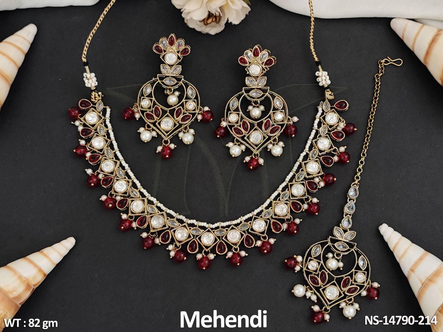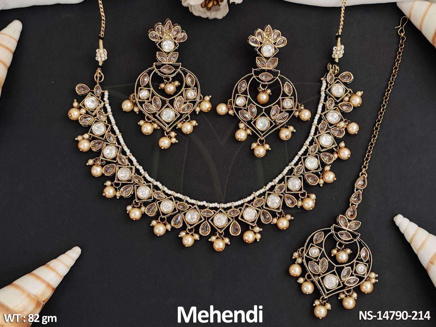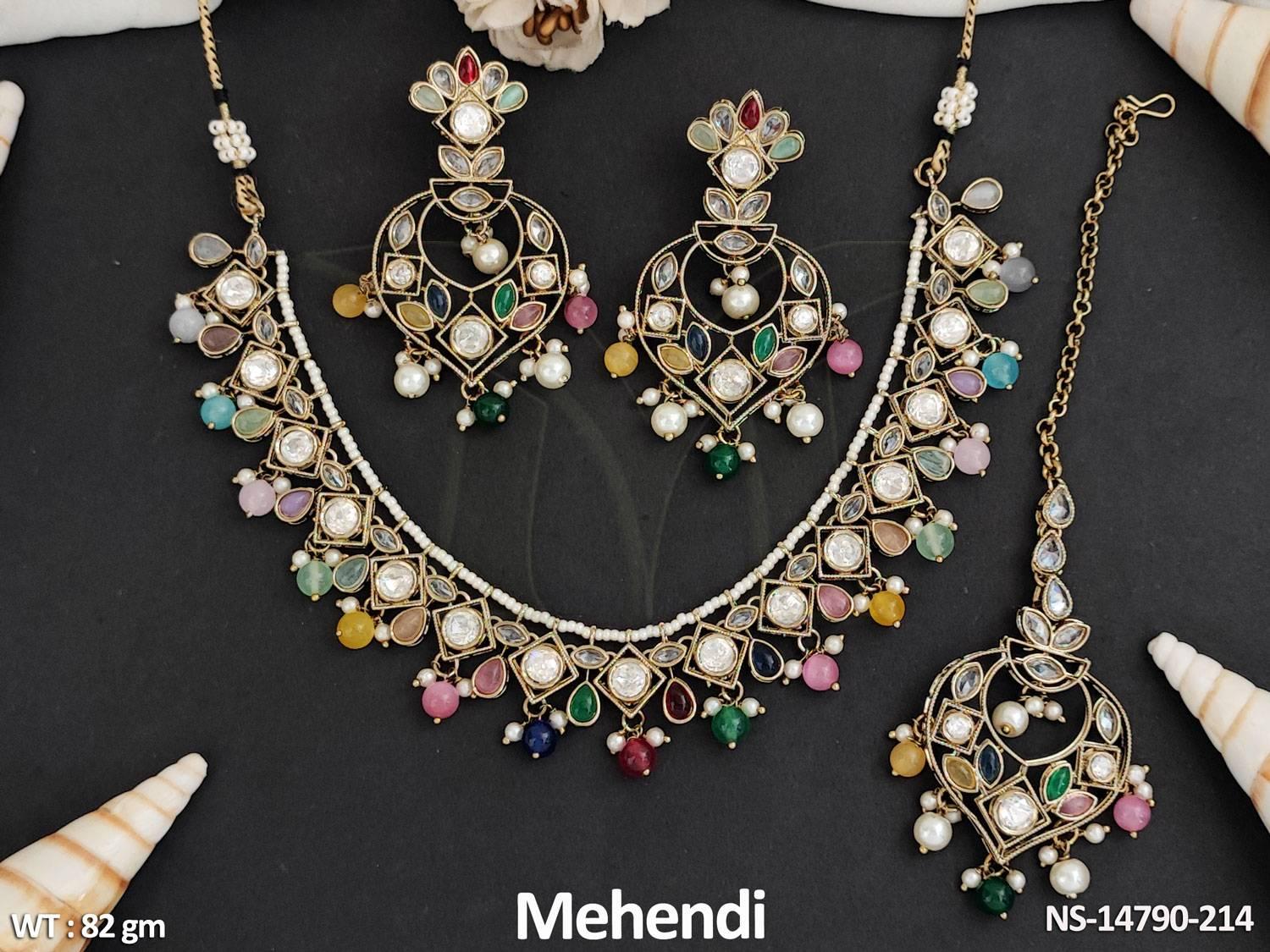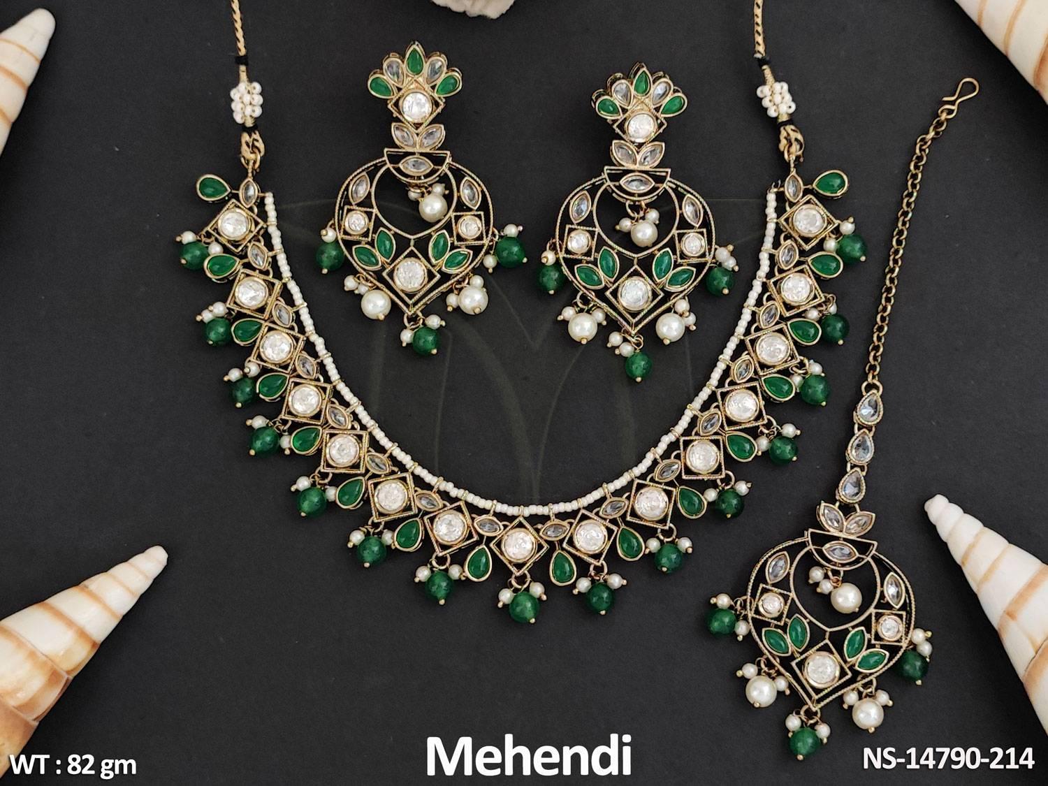 - Antique Jewelry Mehendi Polish Fancy Design party Wear Antique Short Necklace Set