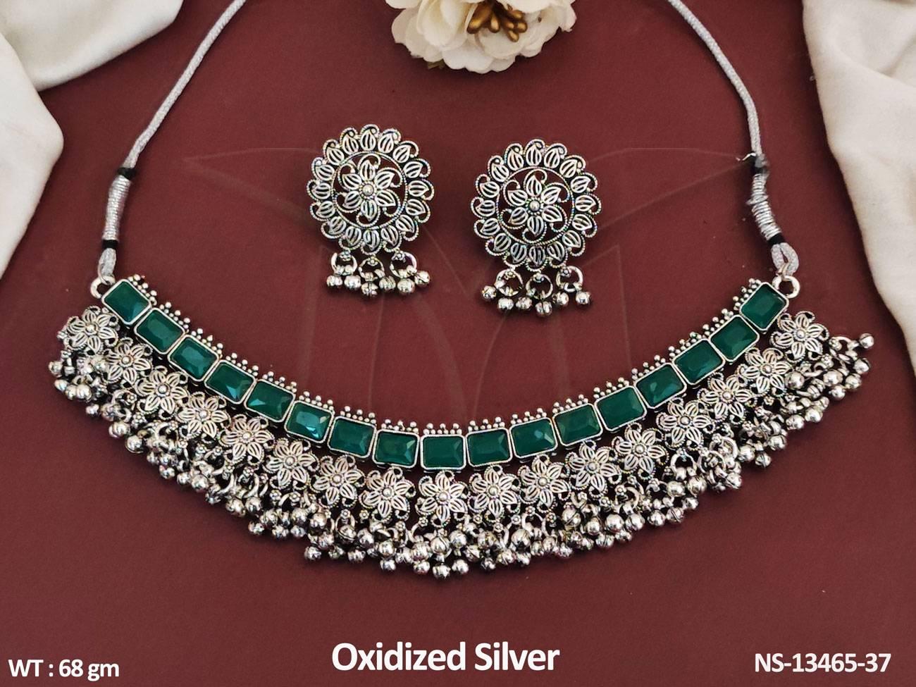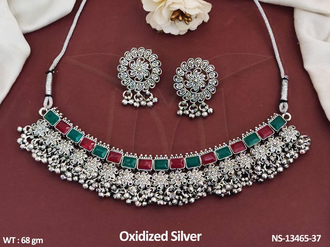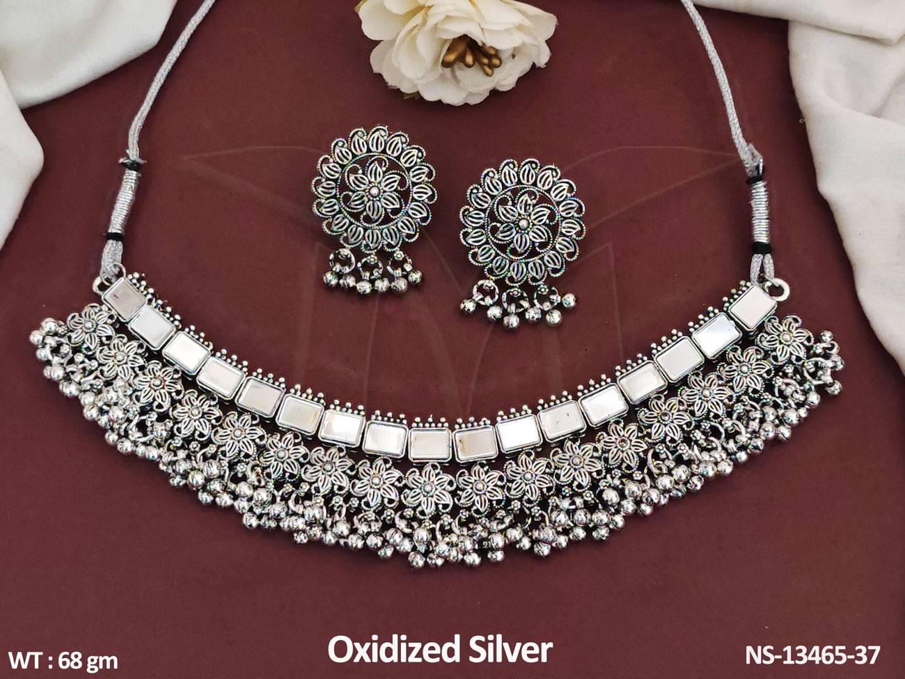 - Antique Style Oxidized Silver Polish Jewellery Party Wear Choker Necklace Set