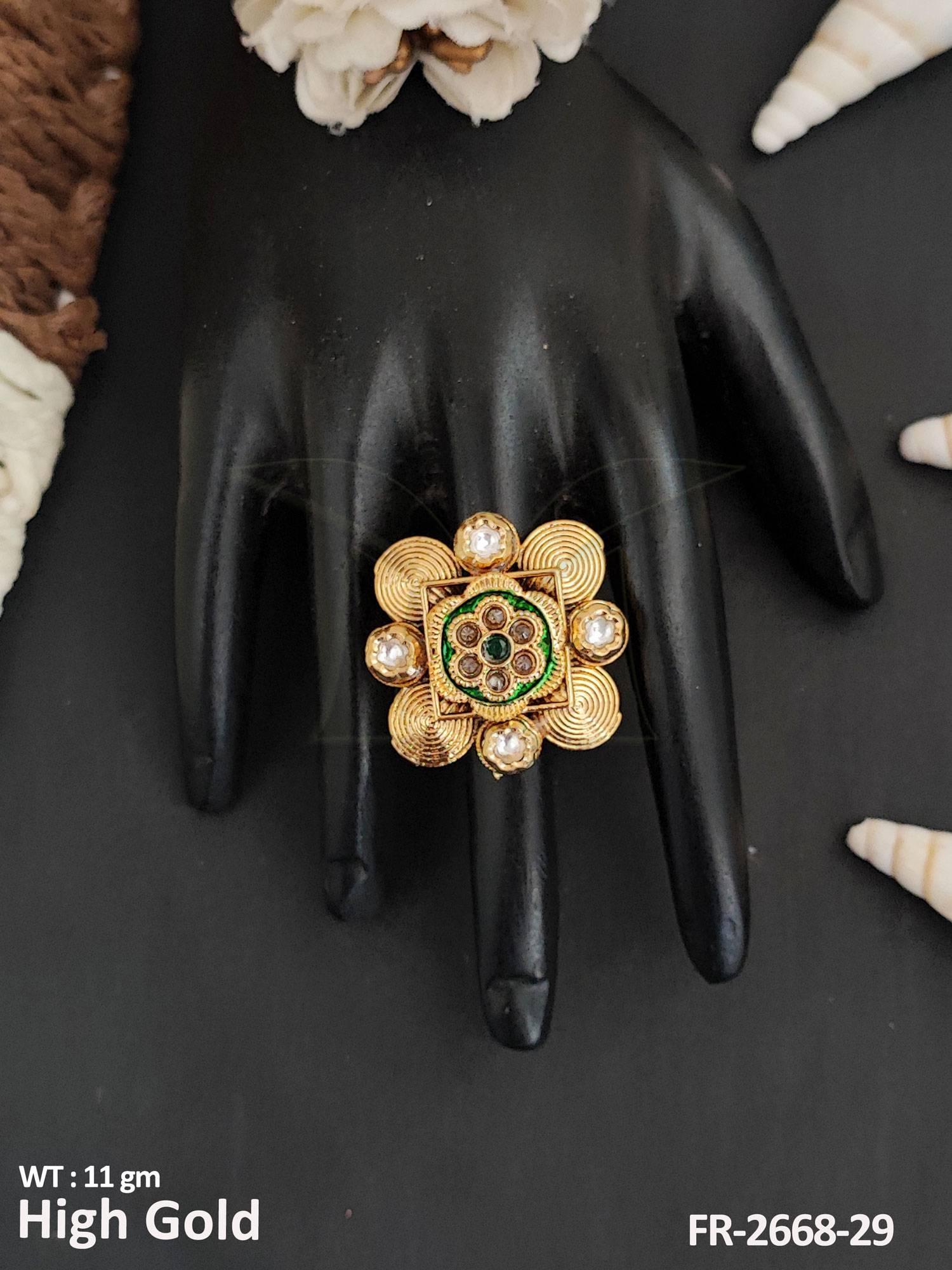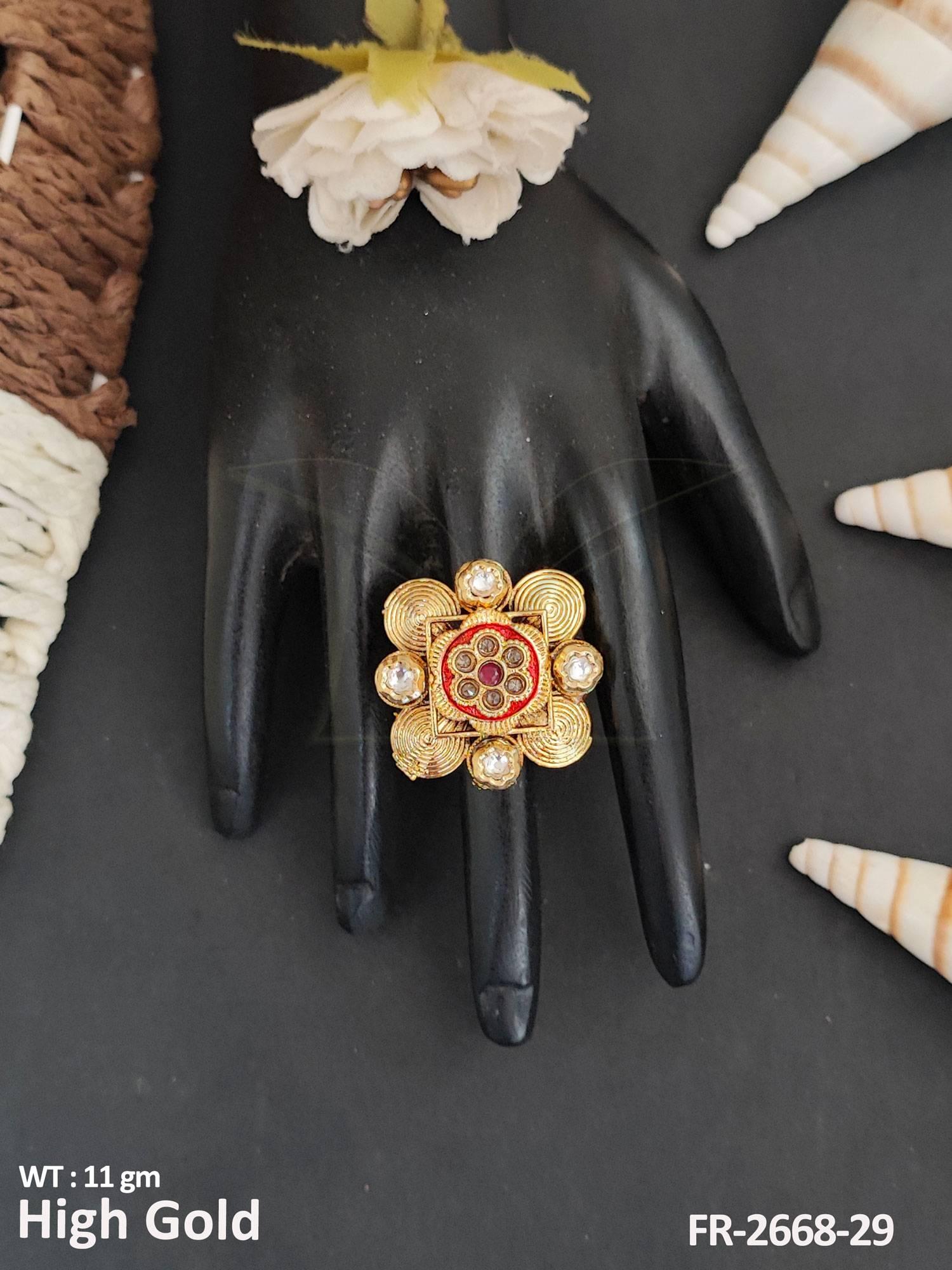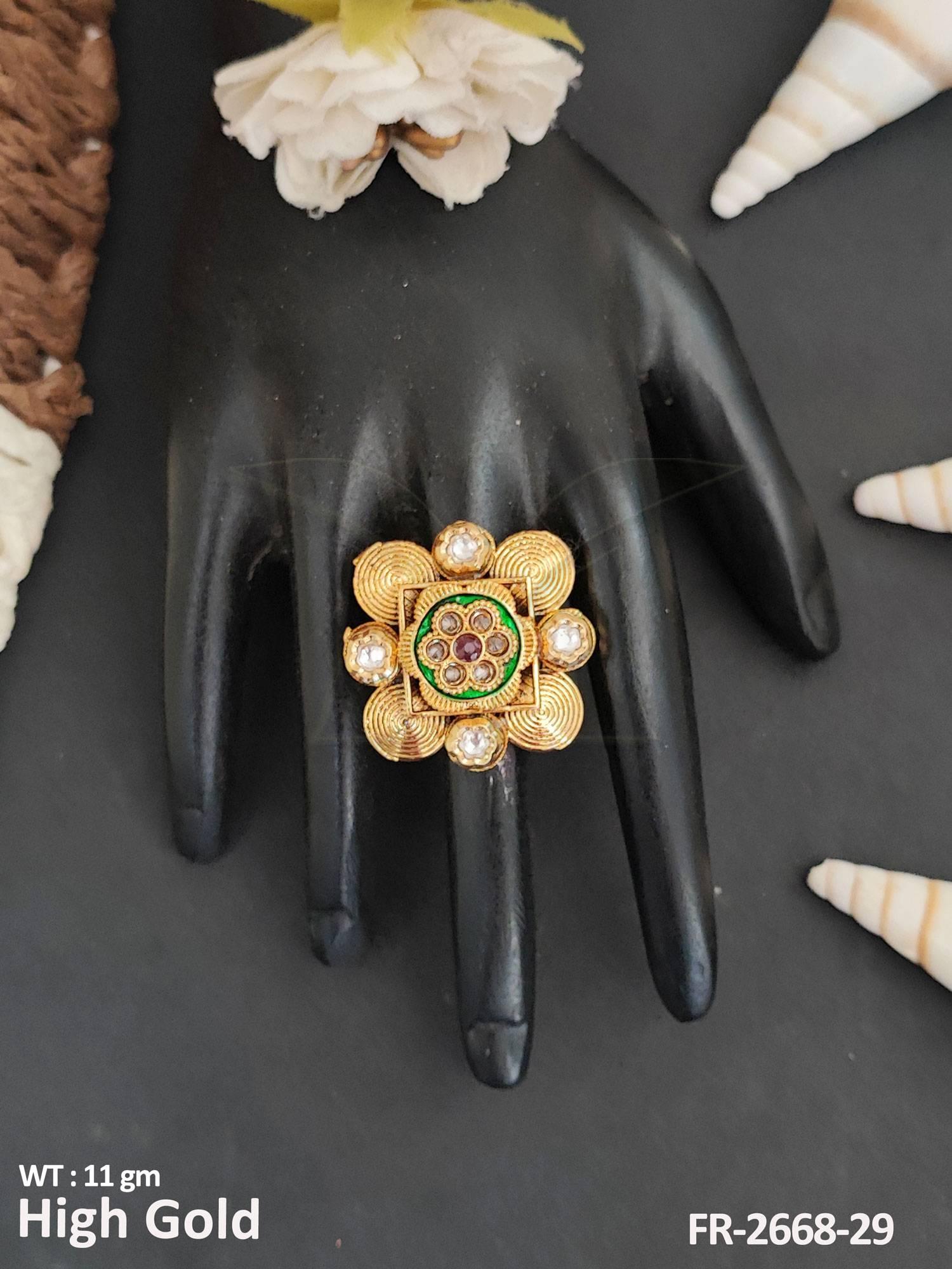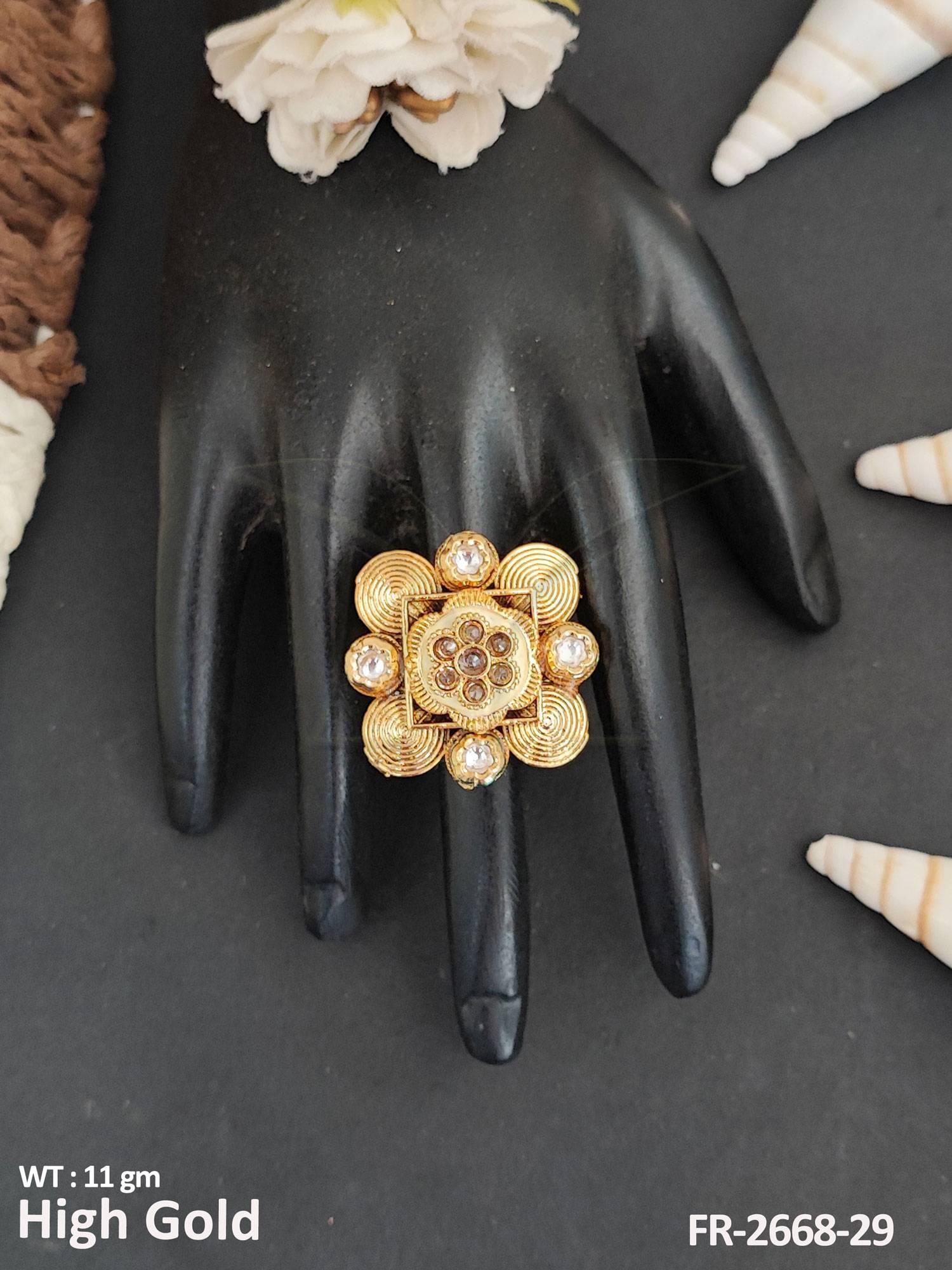 - Attractive Design High Gold Polish Antique Jewellery Stylish Party Wear Antique Finger Ring