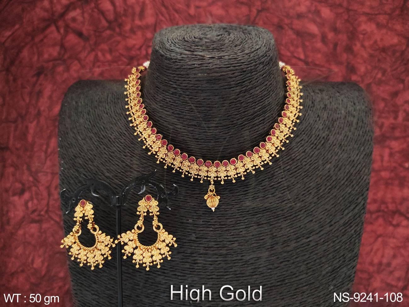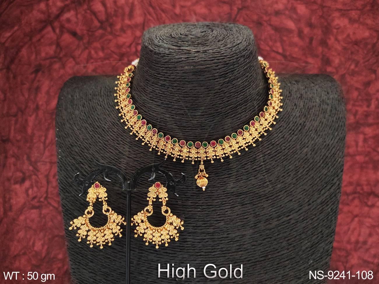 Beautiful Antique Designer High Gold Polish Party wear Choker Style Necklace Set