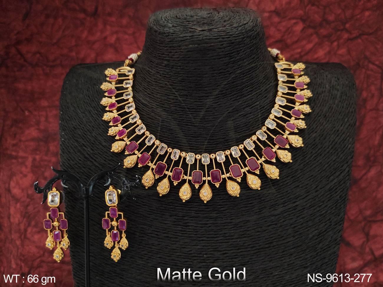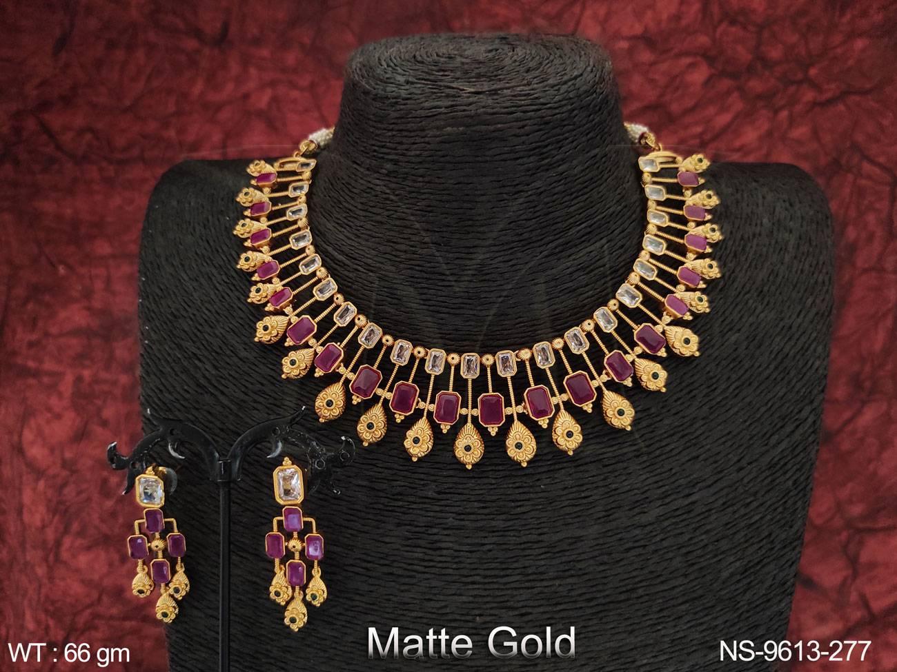 - Beautiful Design Fancy Style Matte Gold Polish Party wear Necklace Set