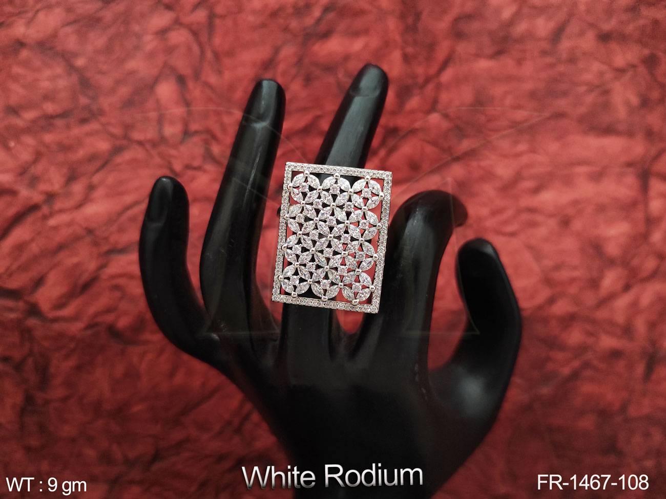 - Beautiful Design White Rodium Polish Cz American Diamond Full Stones Party wear Finger Ring