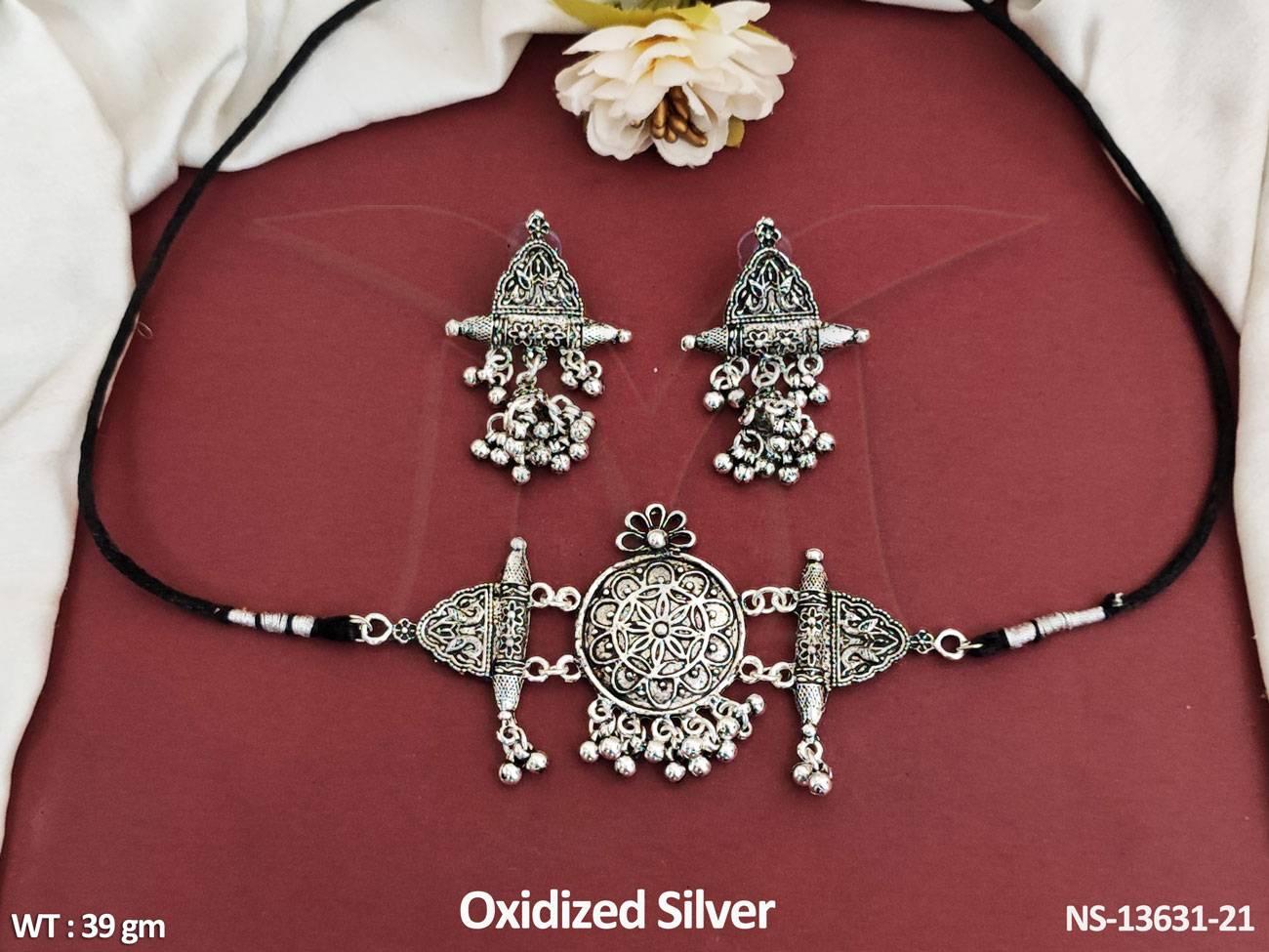 2. Beautiful Fancy Style Party wear Oxidised Jewellery Short Necklace Set