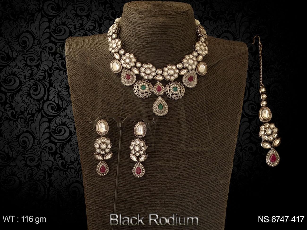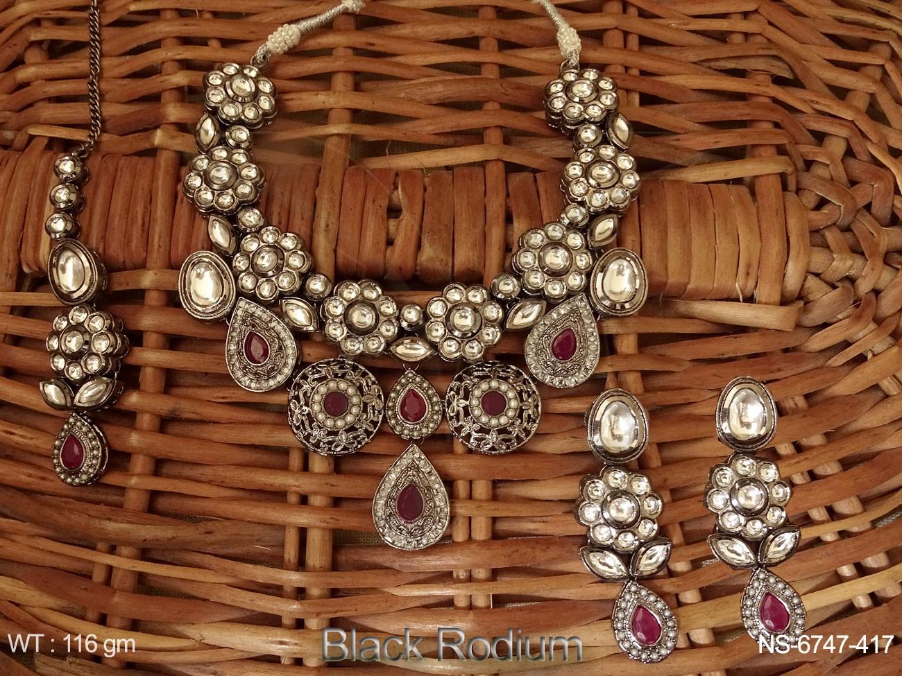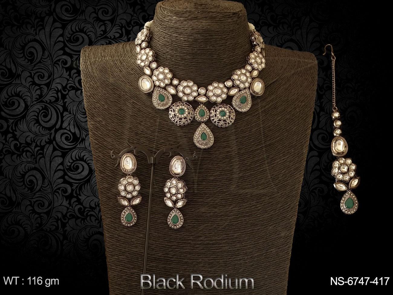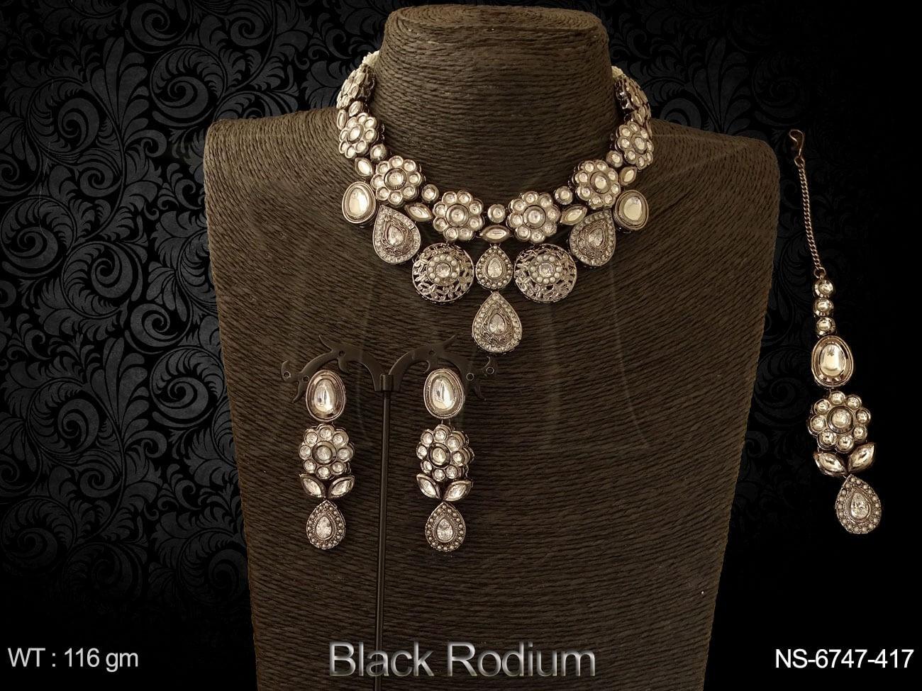 Black rodium Flower Desgner Black Kundan Necklace Set