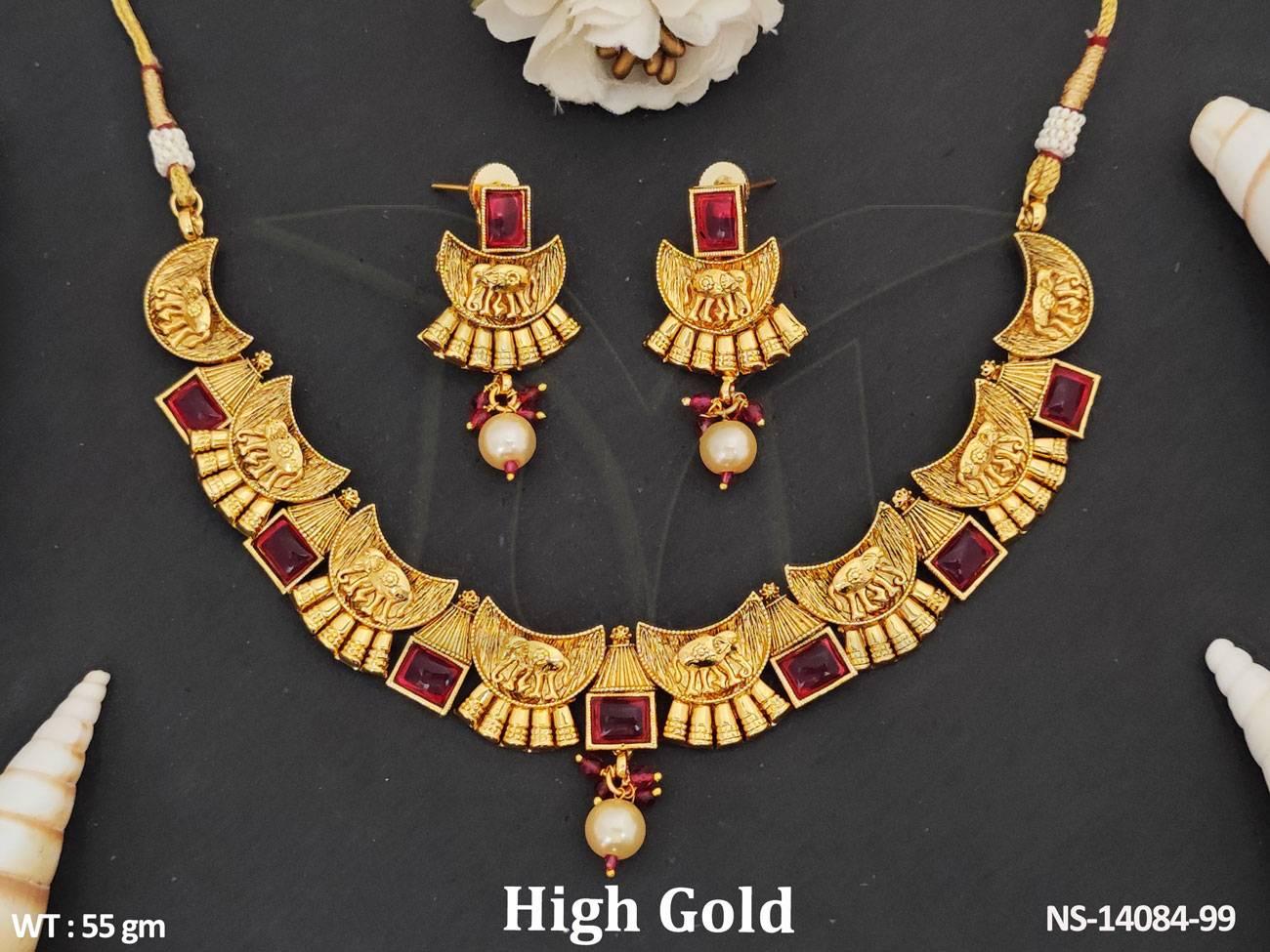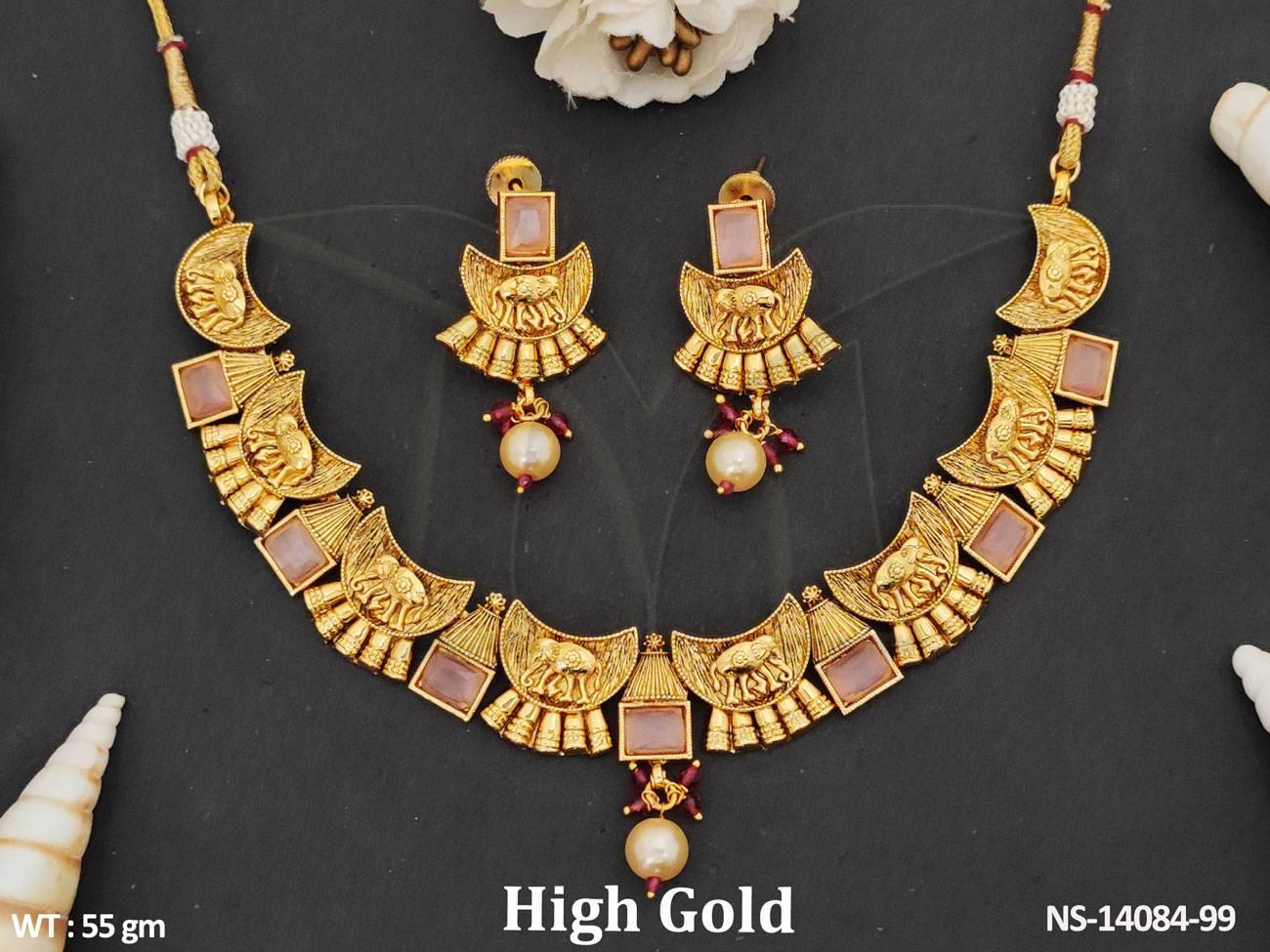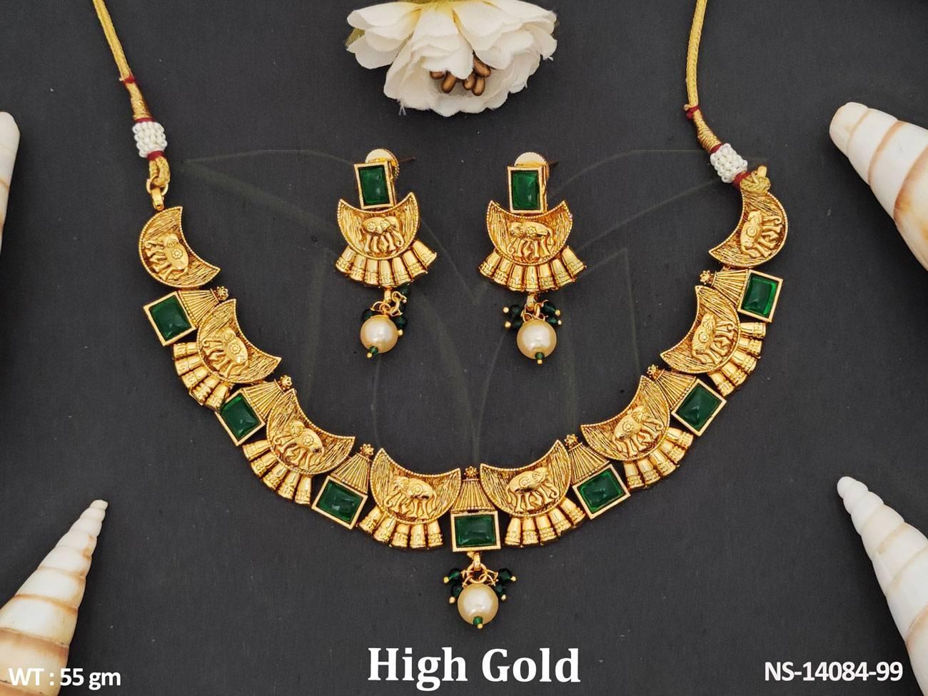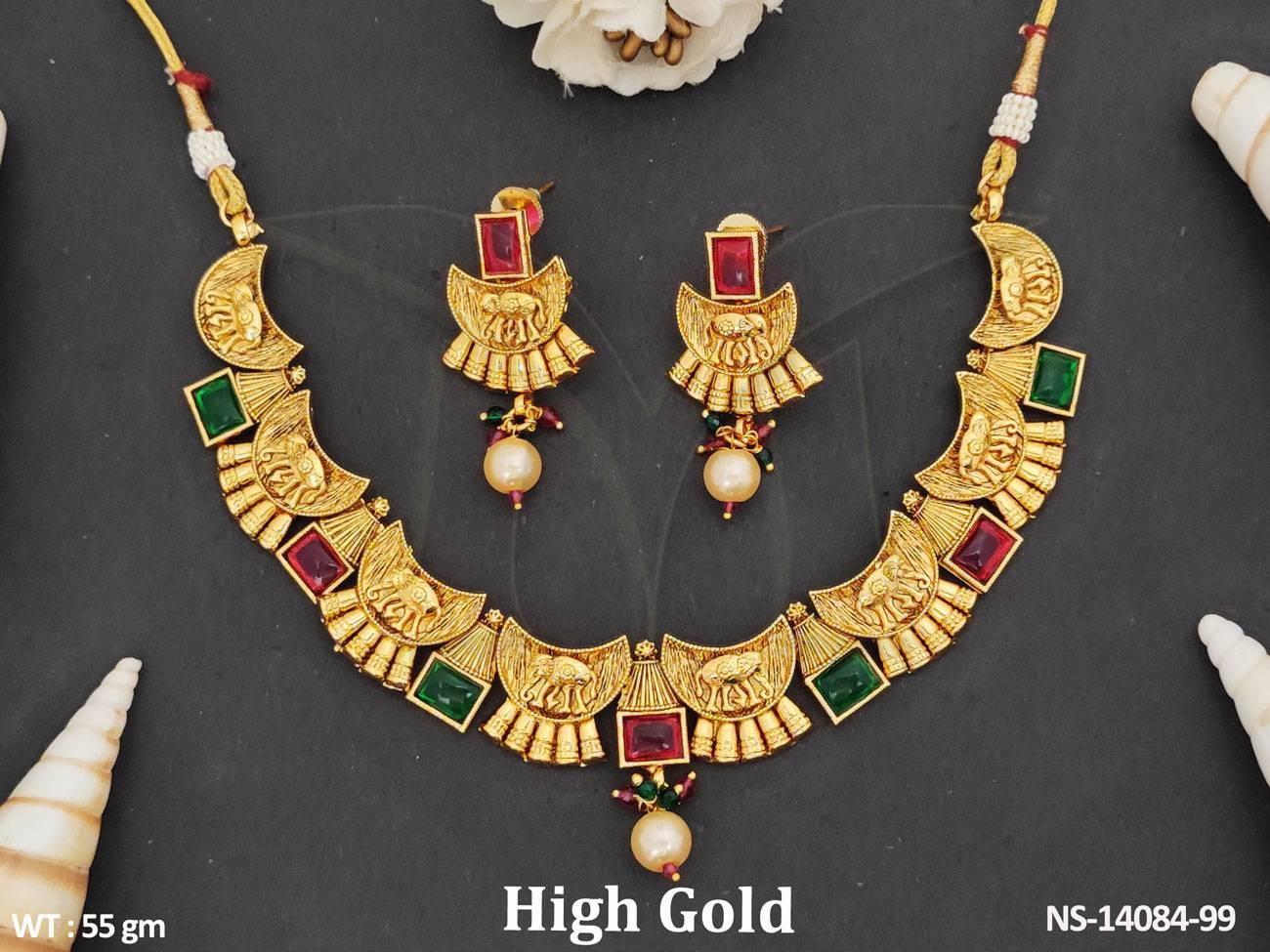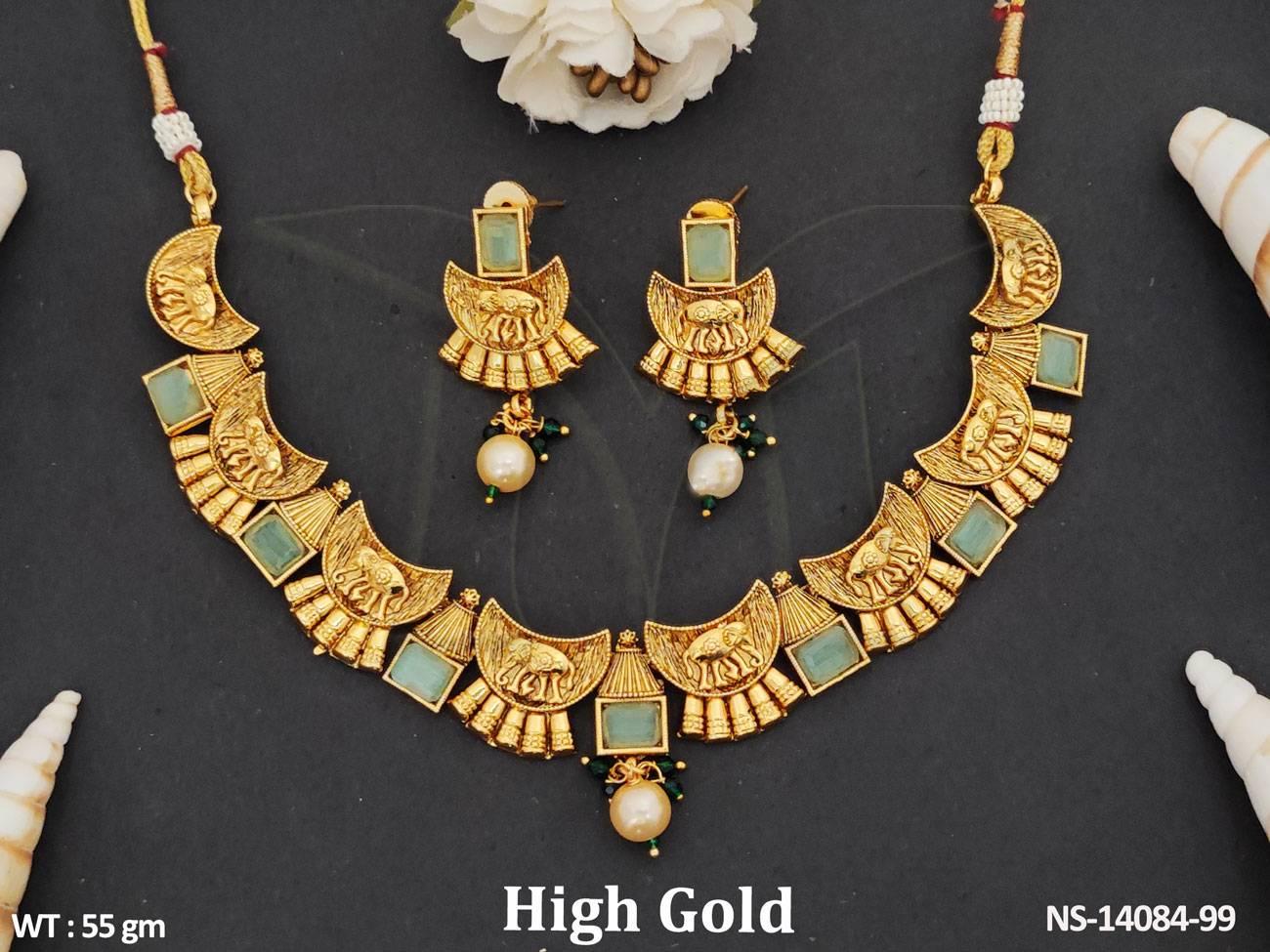 2. Clustered Pearl Design Antique Jewellery Party Wear Antique Short Necklace Set