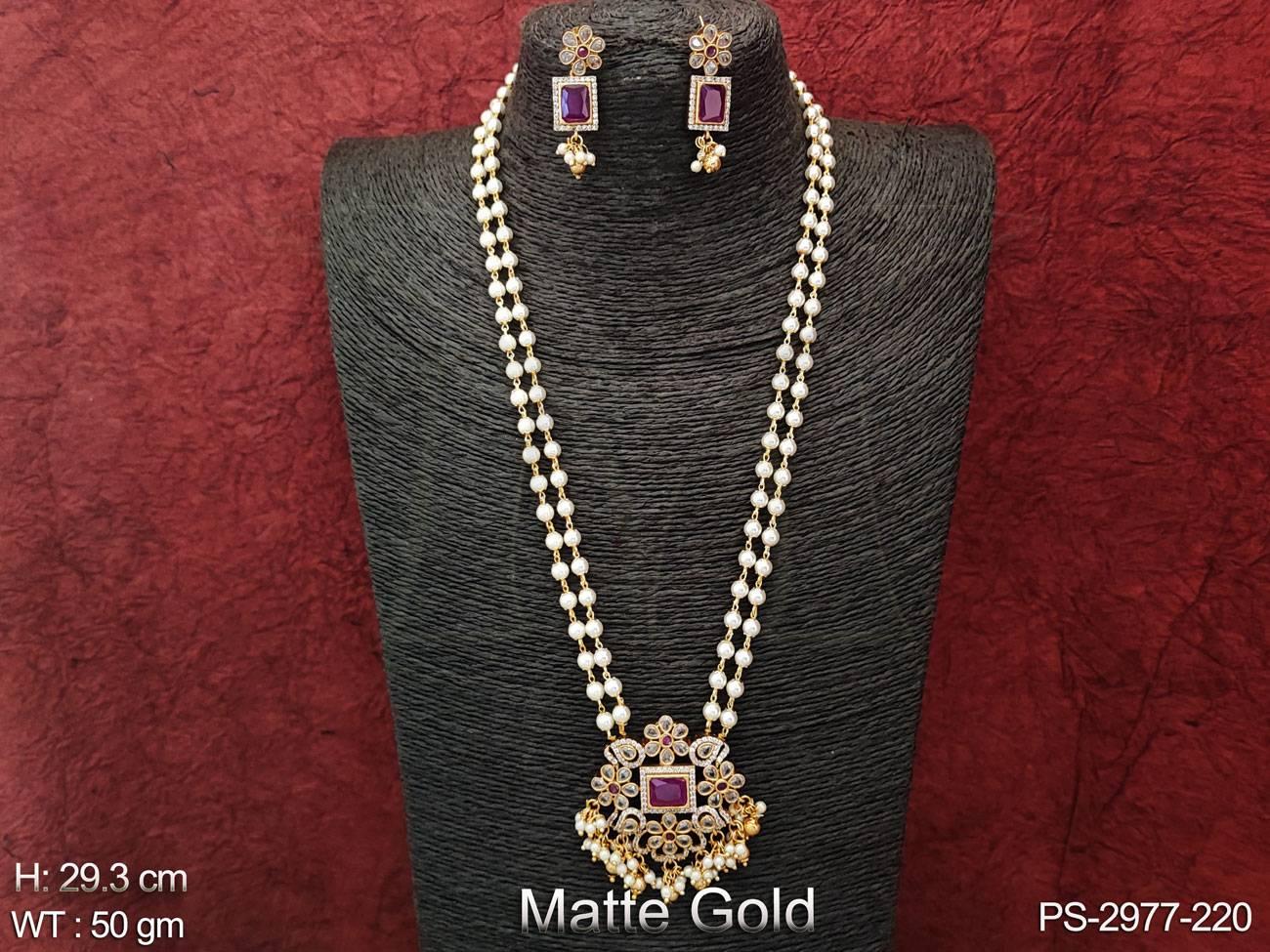 - Clustered Pearl Matte Gold Polish Fancy Style Long Kemp Jewellery Kemp Pendant Set