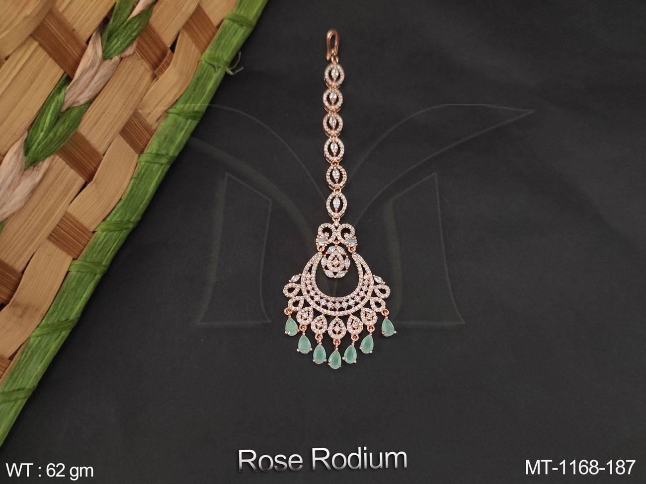 - Cz Ad Full Stones Rose Rodium Polish Designer Maang Tikka