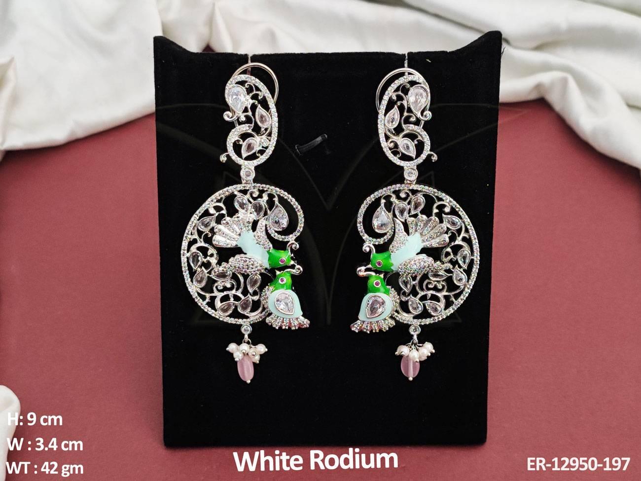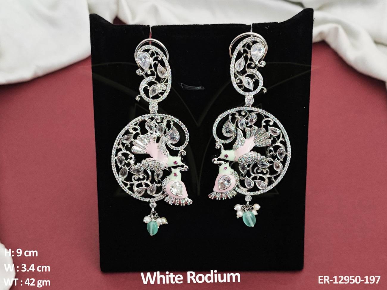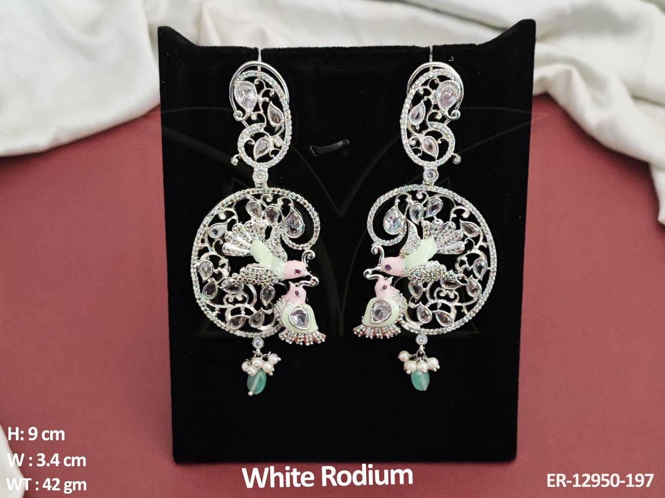 CZ AD Jewelry Accessories White Rodium Polish Designer Wear CZ AD Earrings