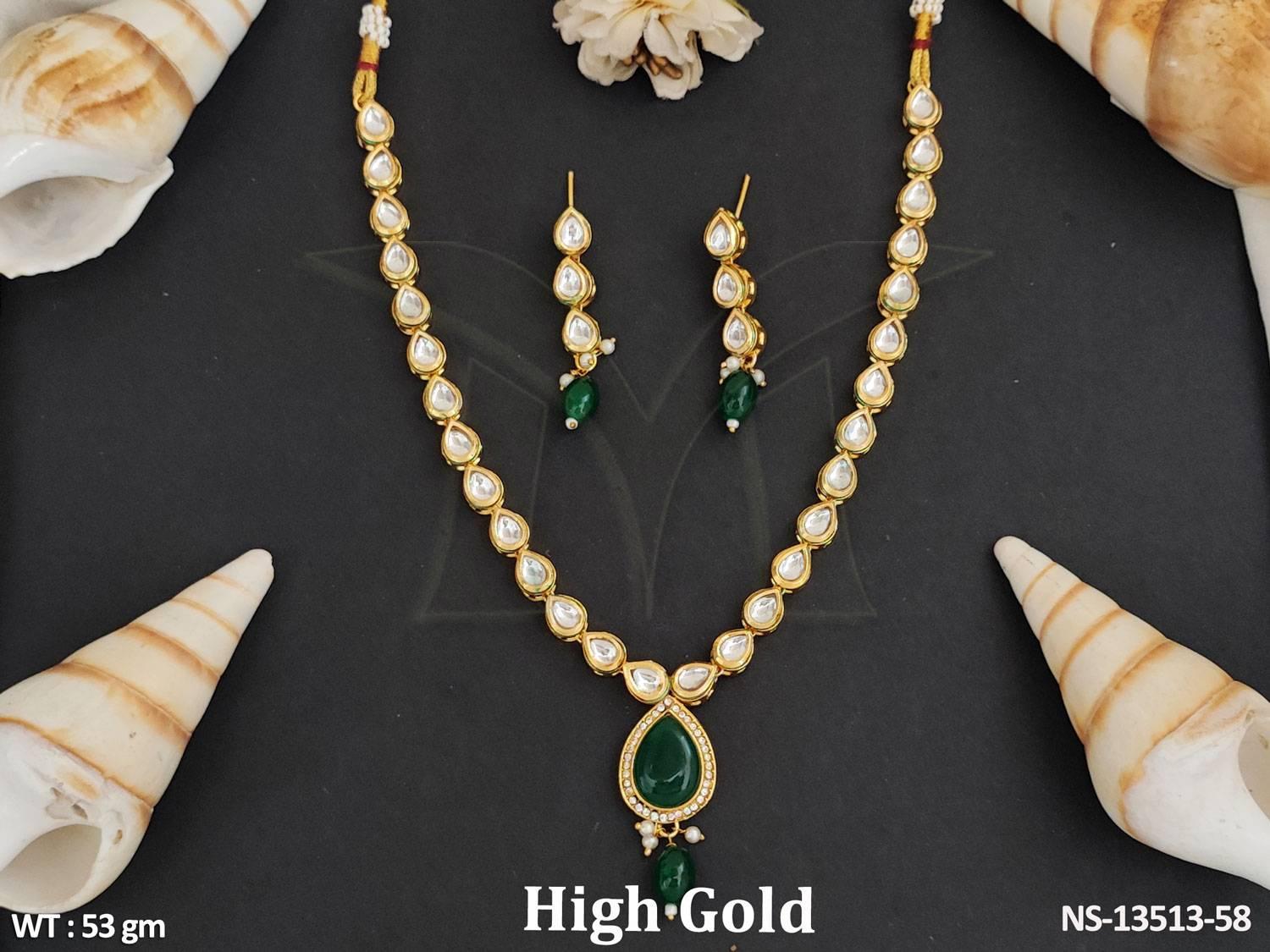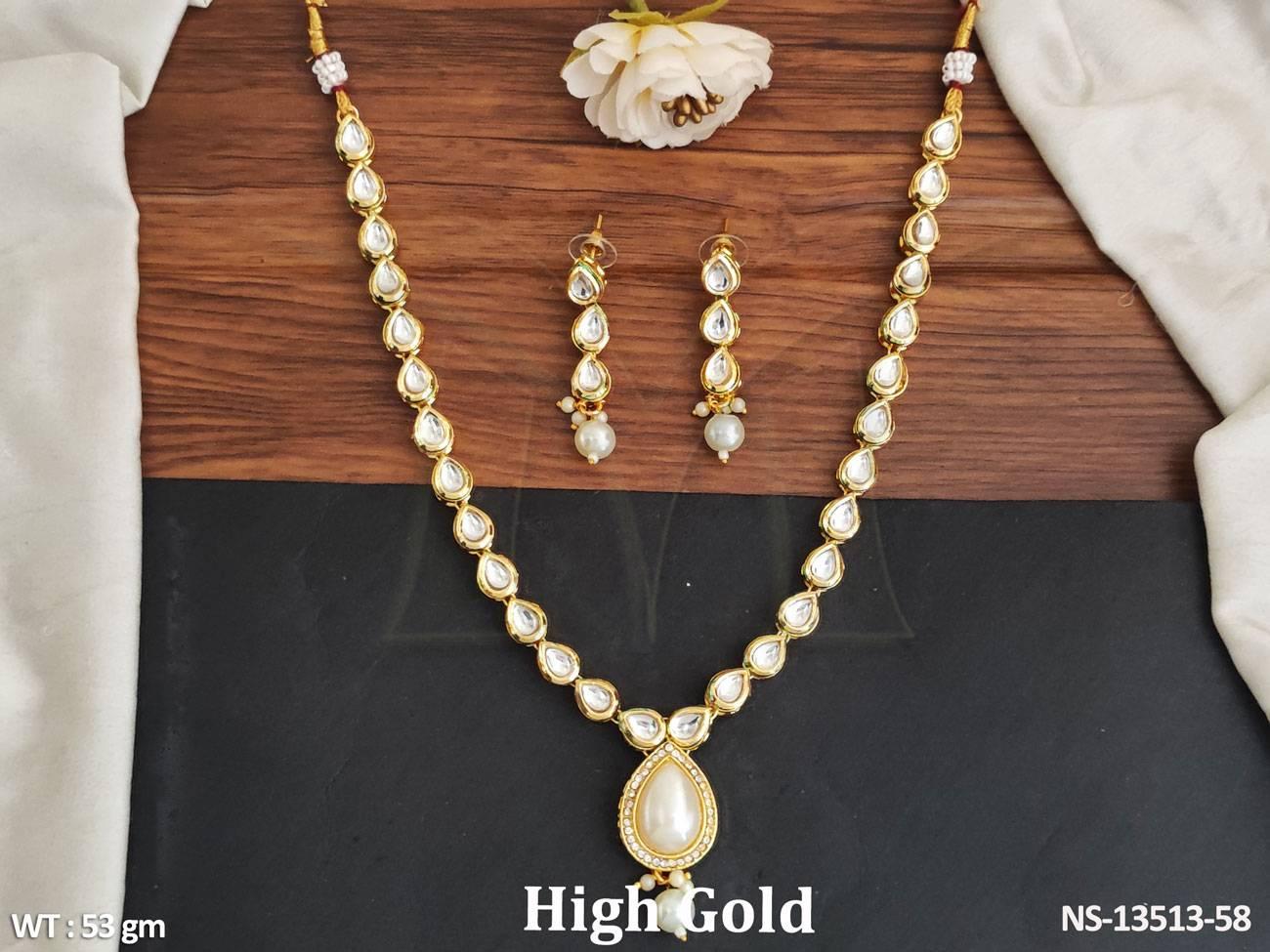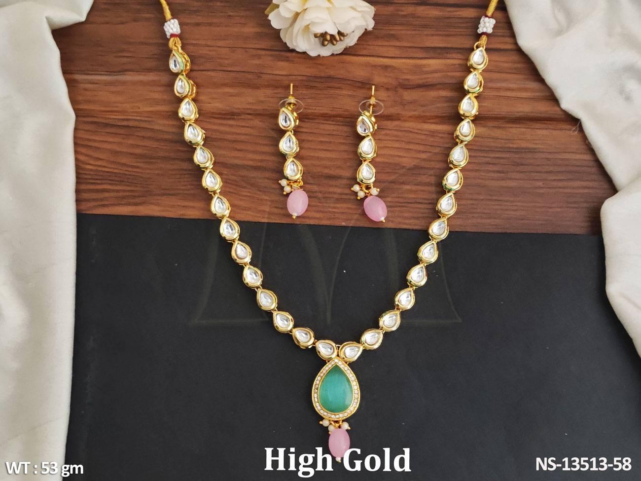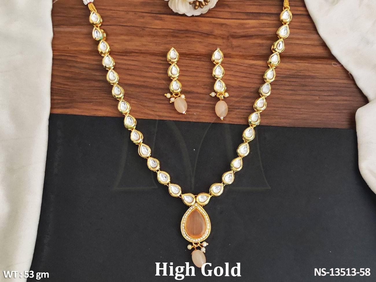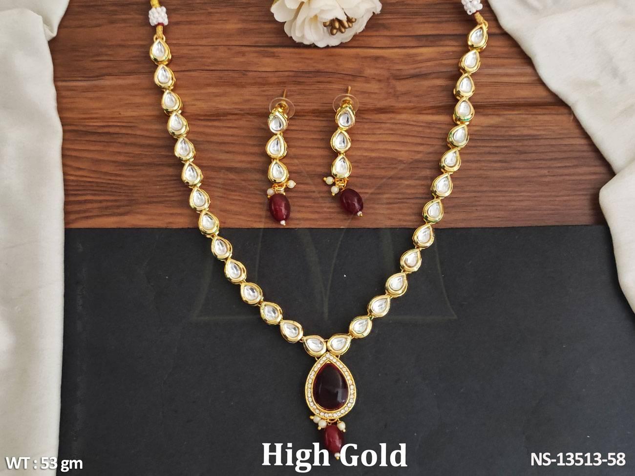 - Designer Beautiful Fancy Style Kundan Jewellery Full Stone Party Wear Necklace Set