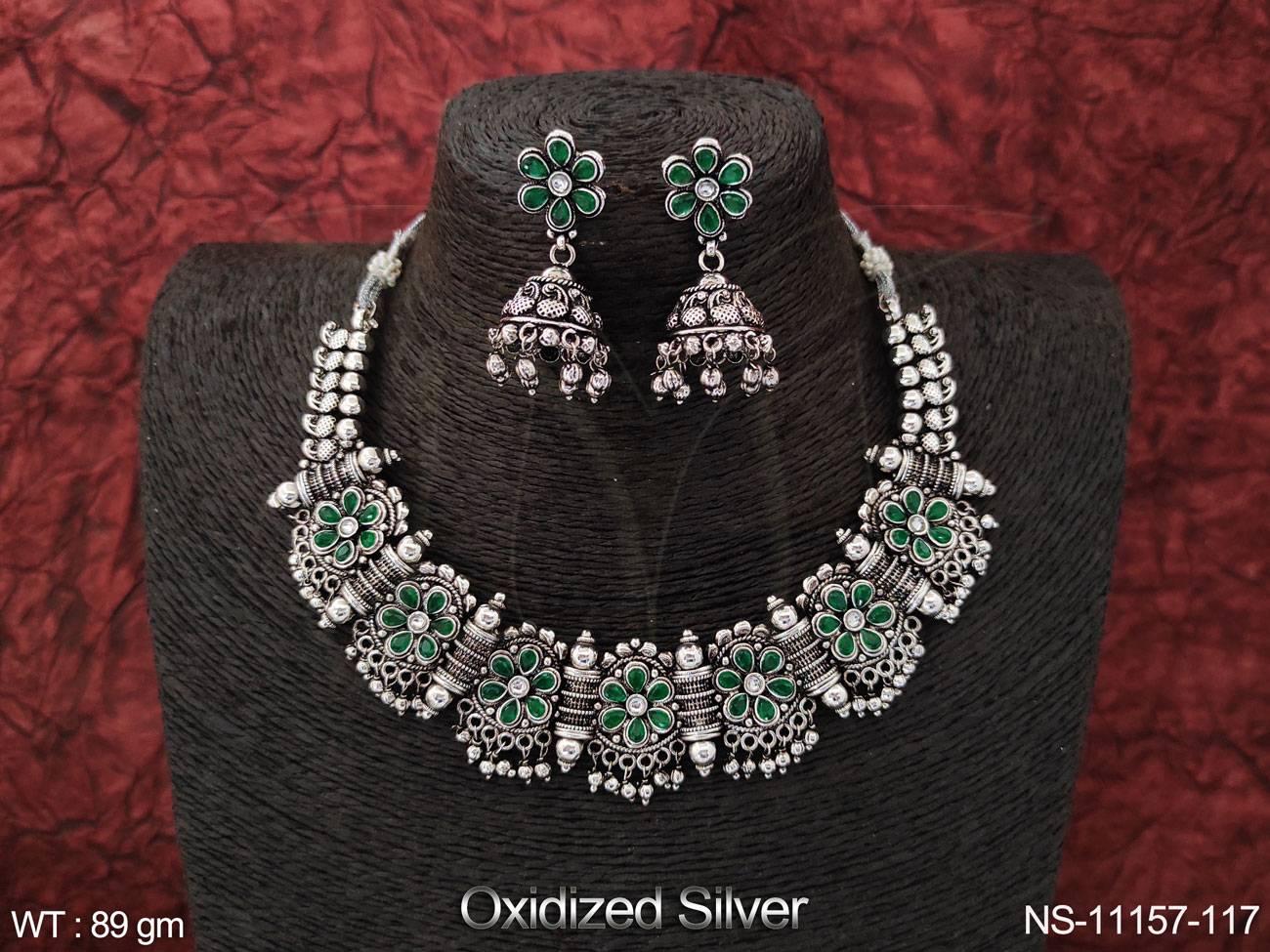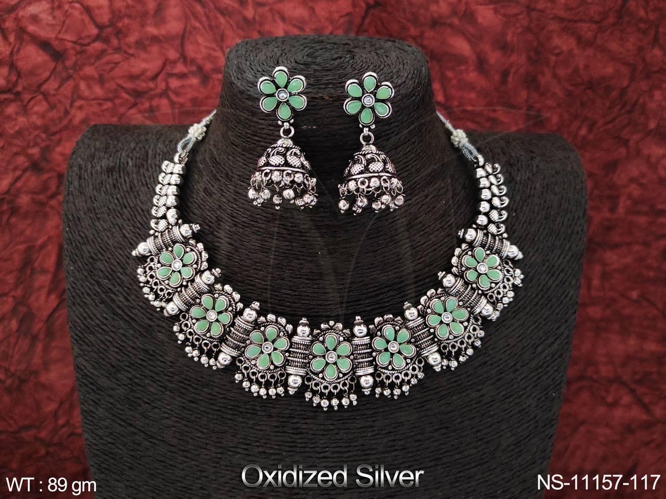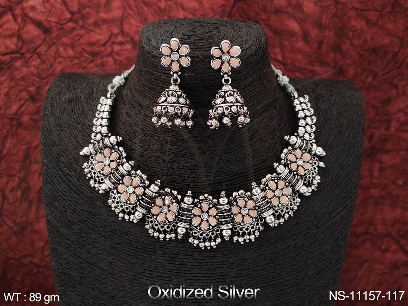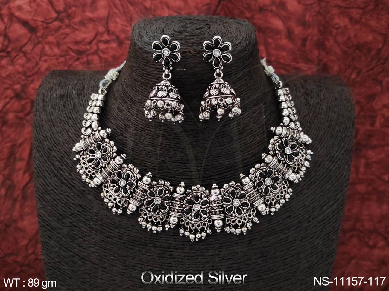 Designer Fancy Style Party wear Beautiful Oxidised Silver Jewellery Choker Short Necklace Set