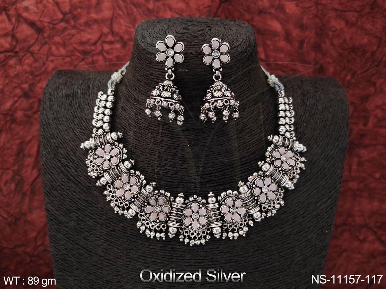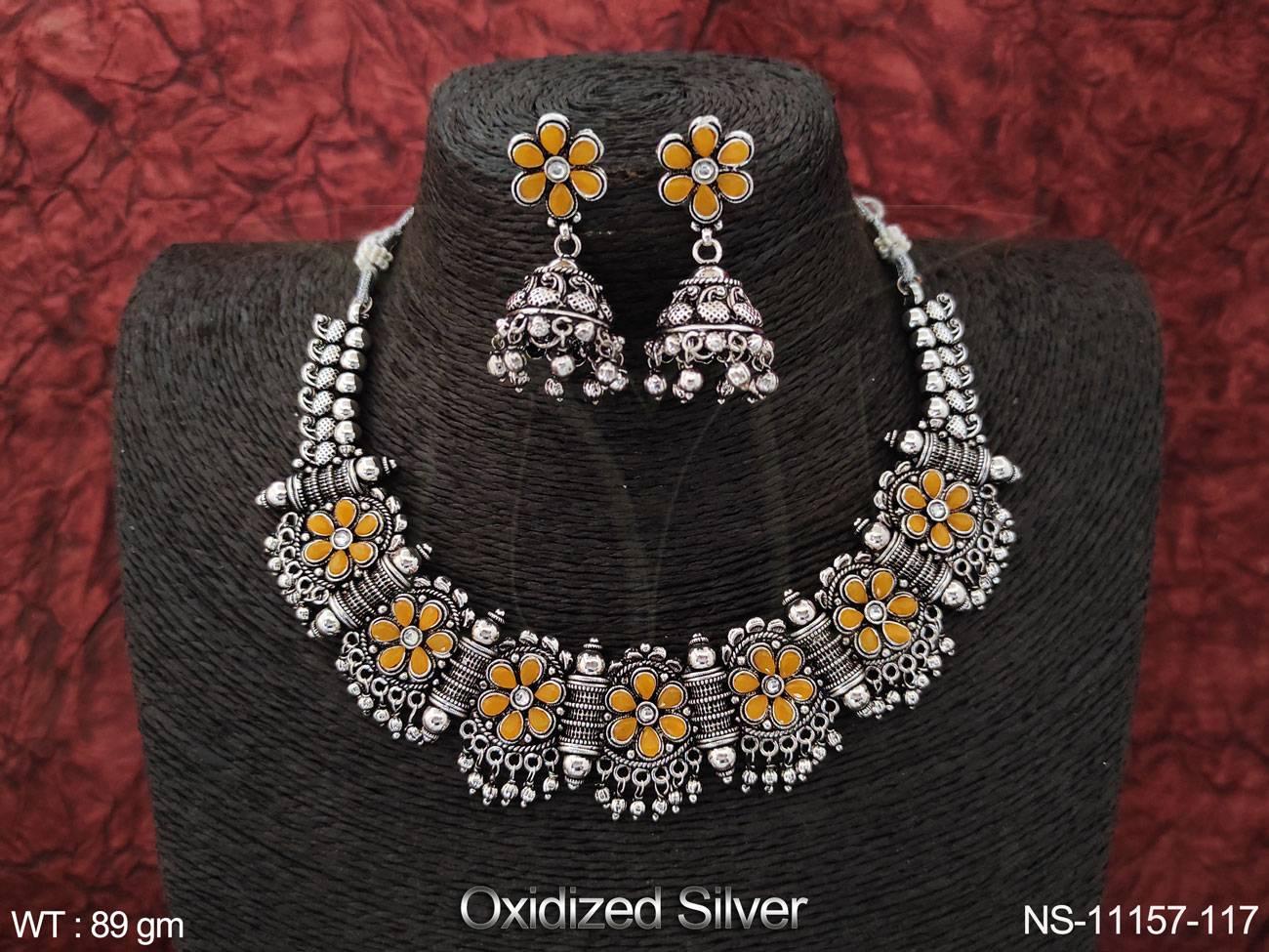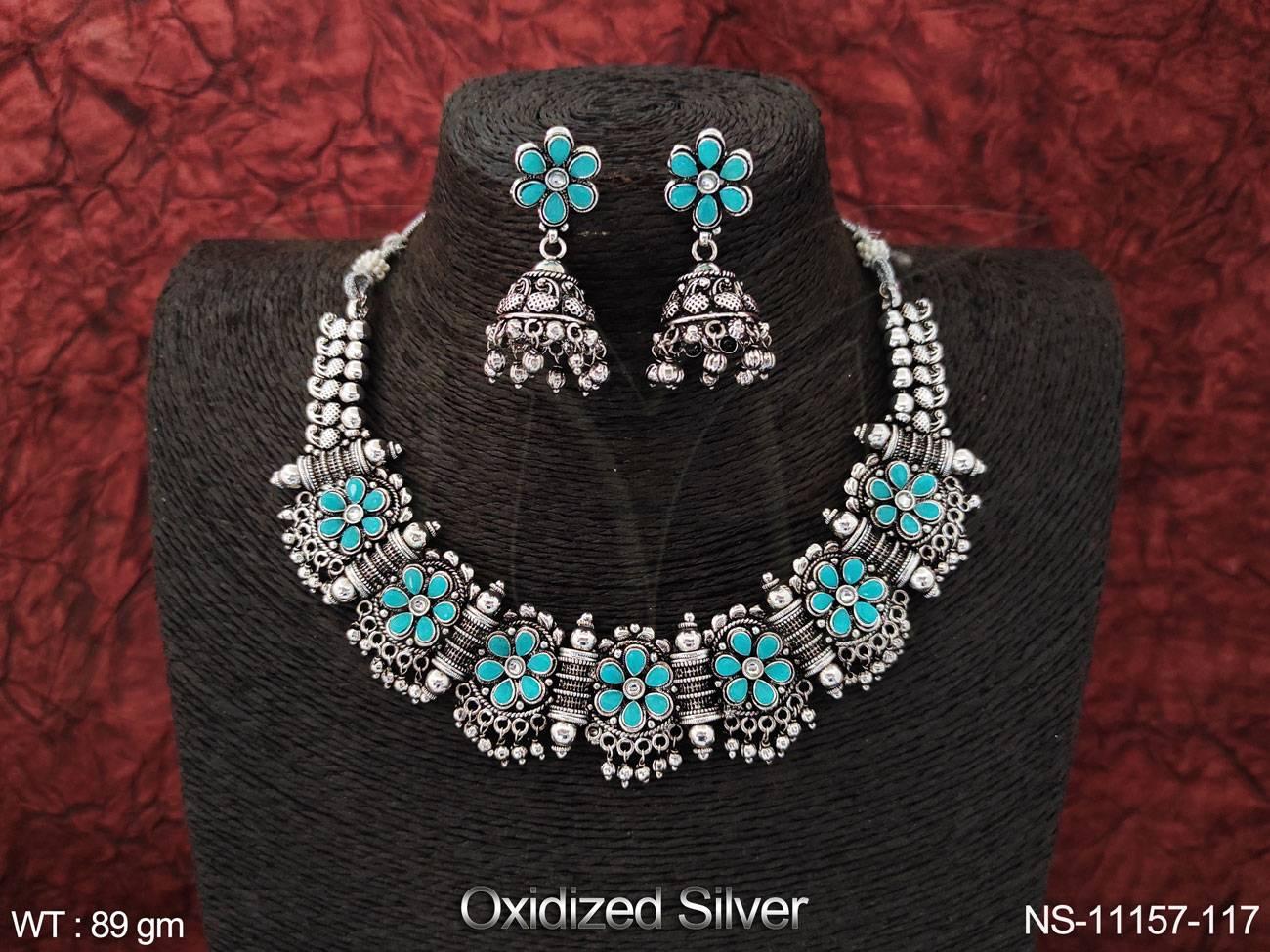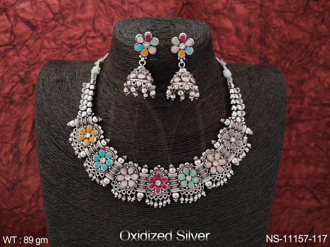 Designer Fancy Style Party wear Beautiful Oxidised Silver Jewellery Choker Short Necklace Set