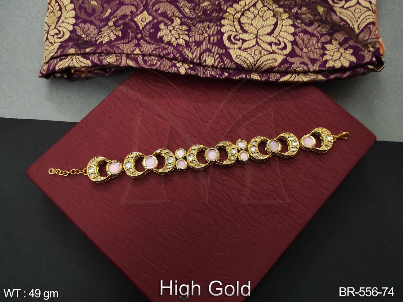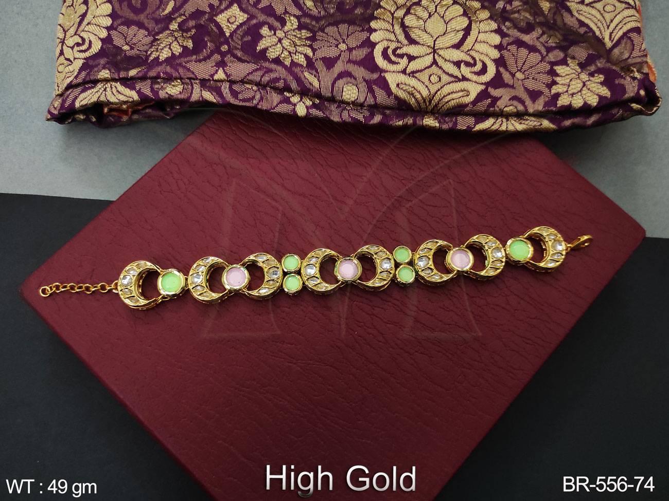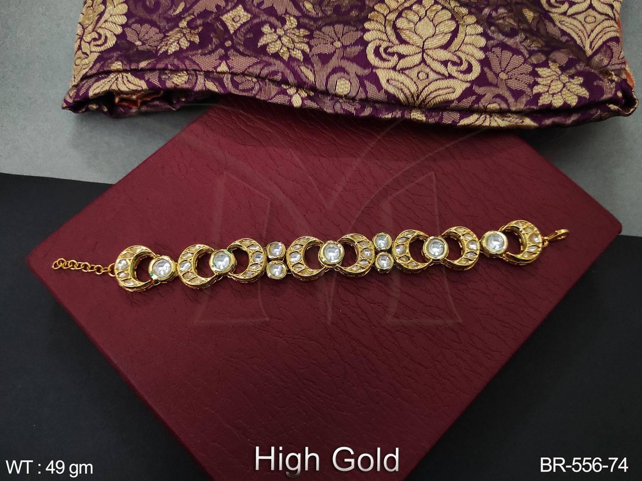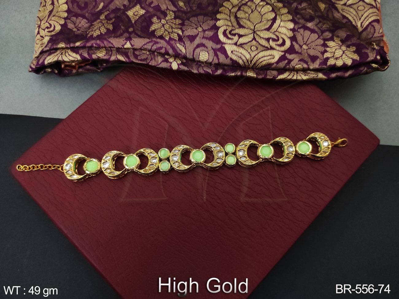 - Designer Fancy Style Party wear High Gold Polish Kundan Bracelet