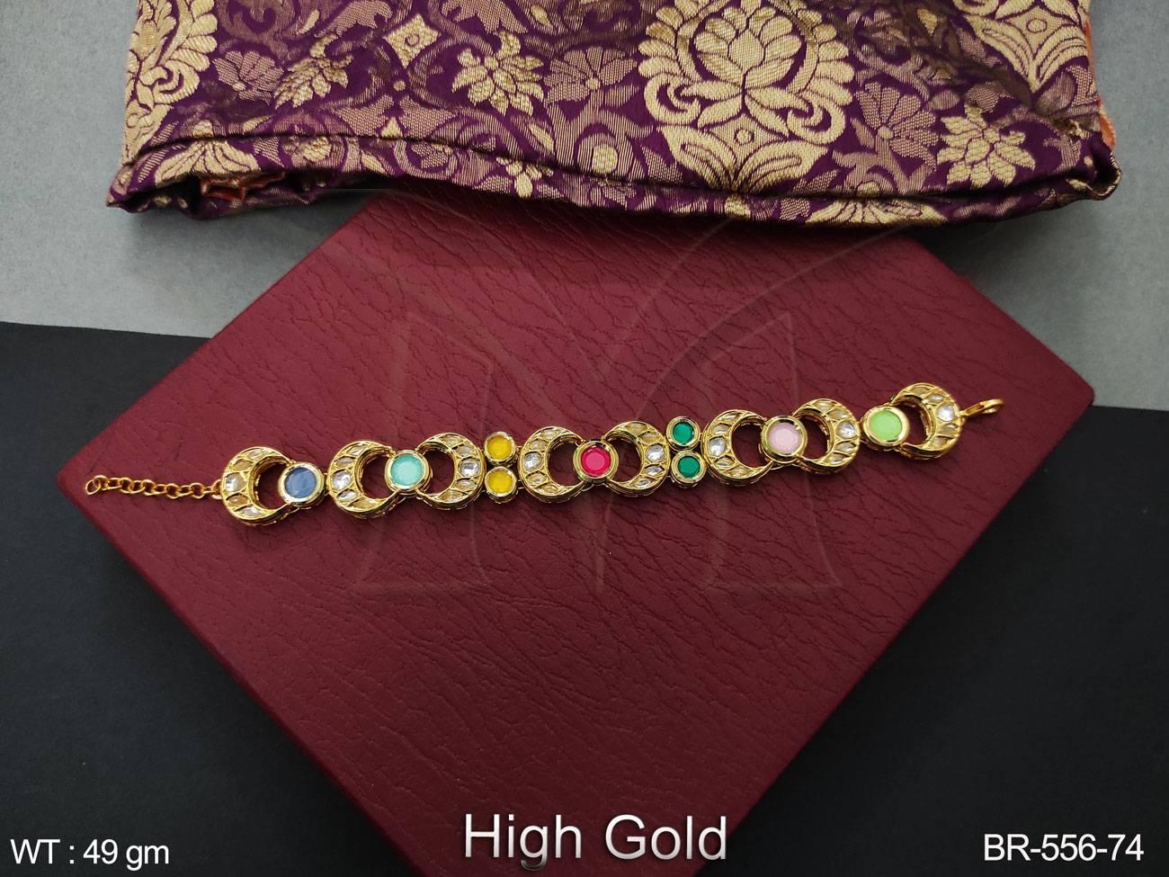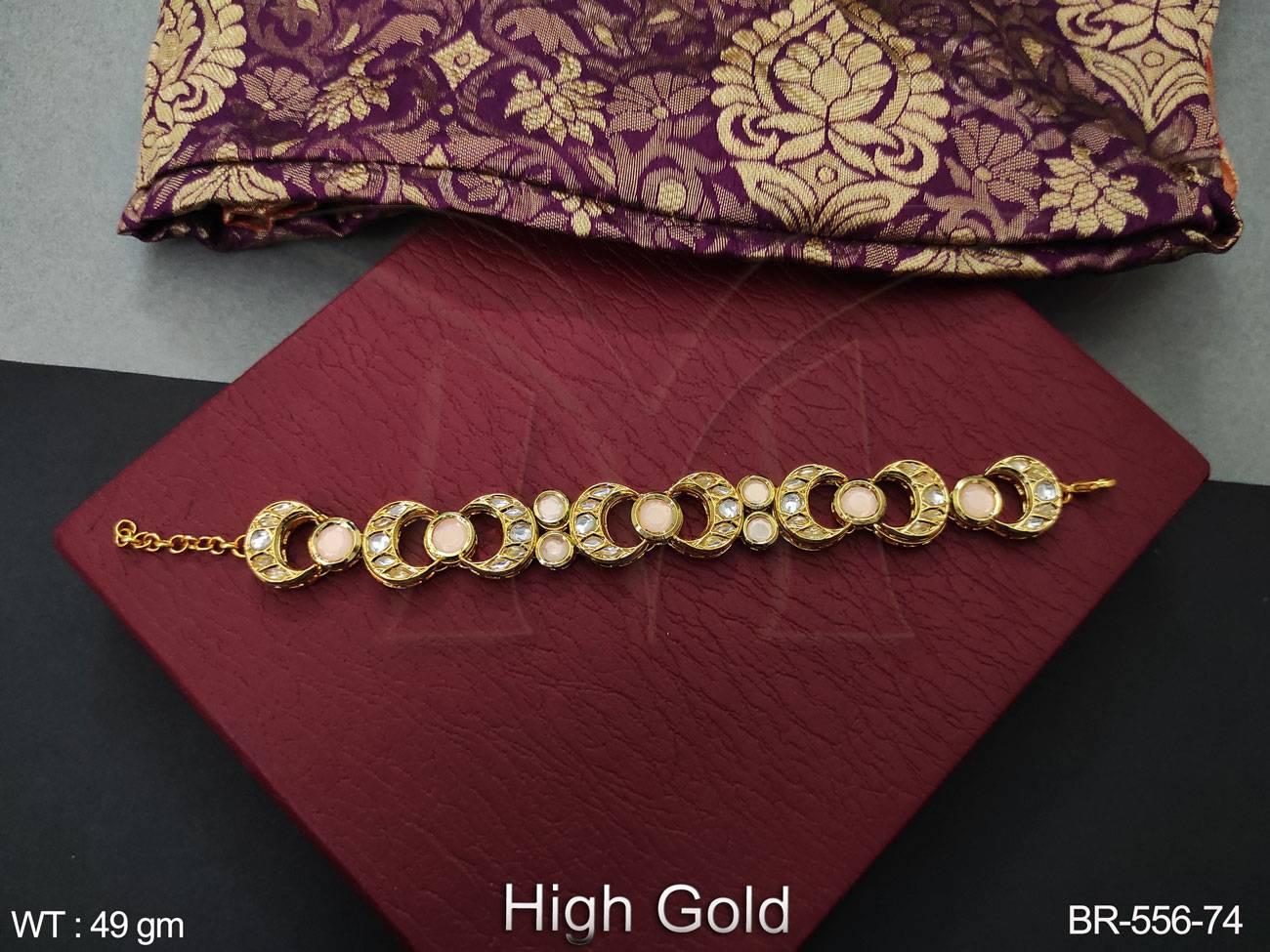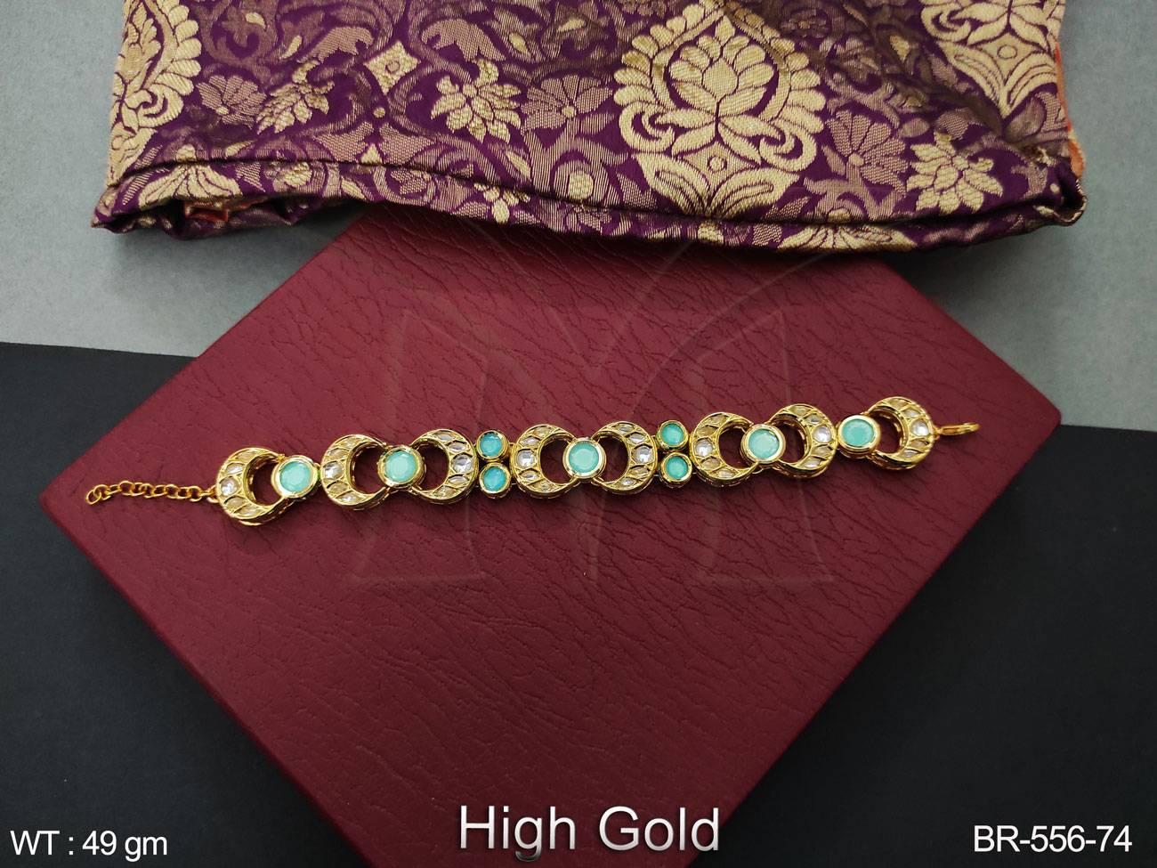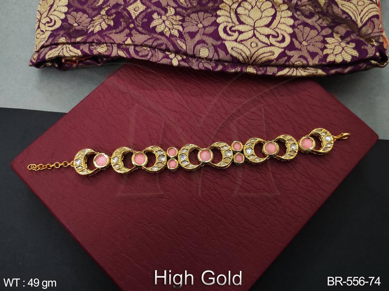 - Designer Fancy Style Party wear High Gold Polish Kundan Bracelet