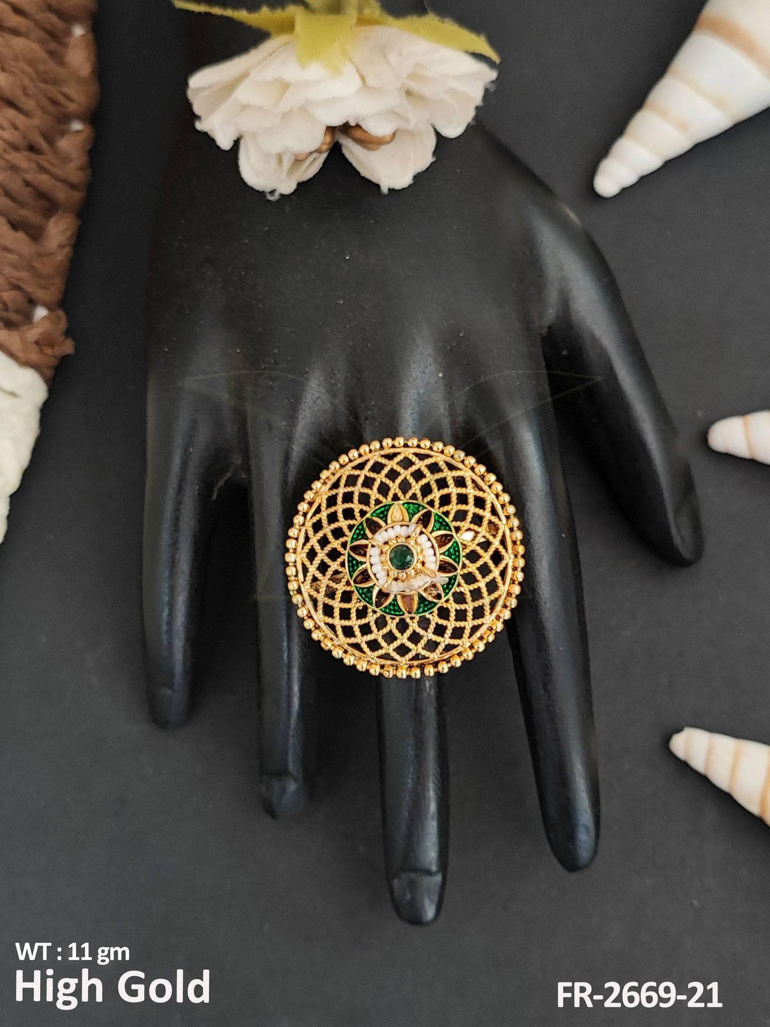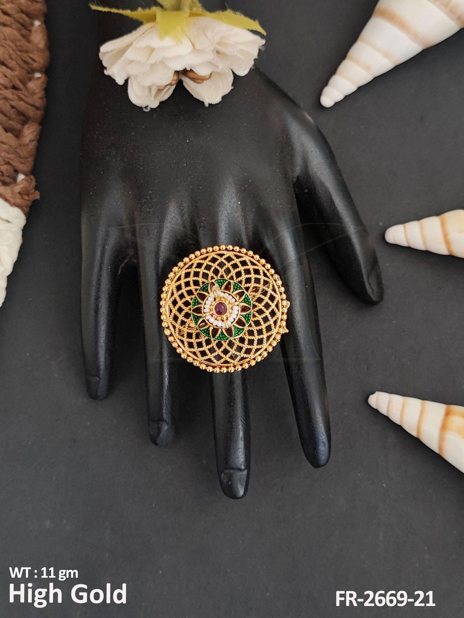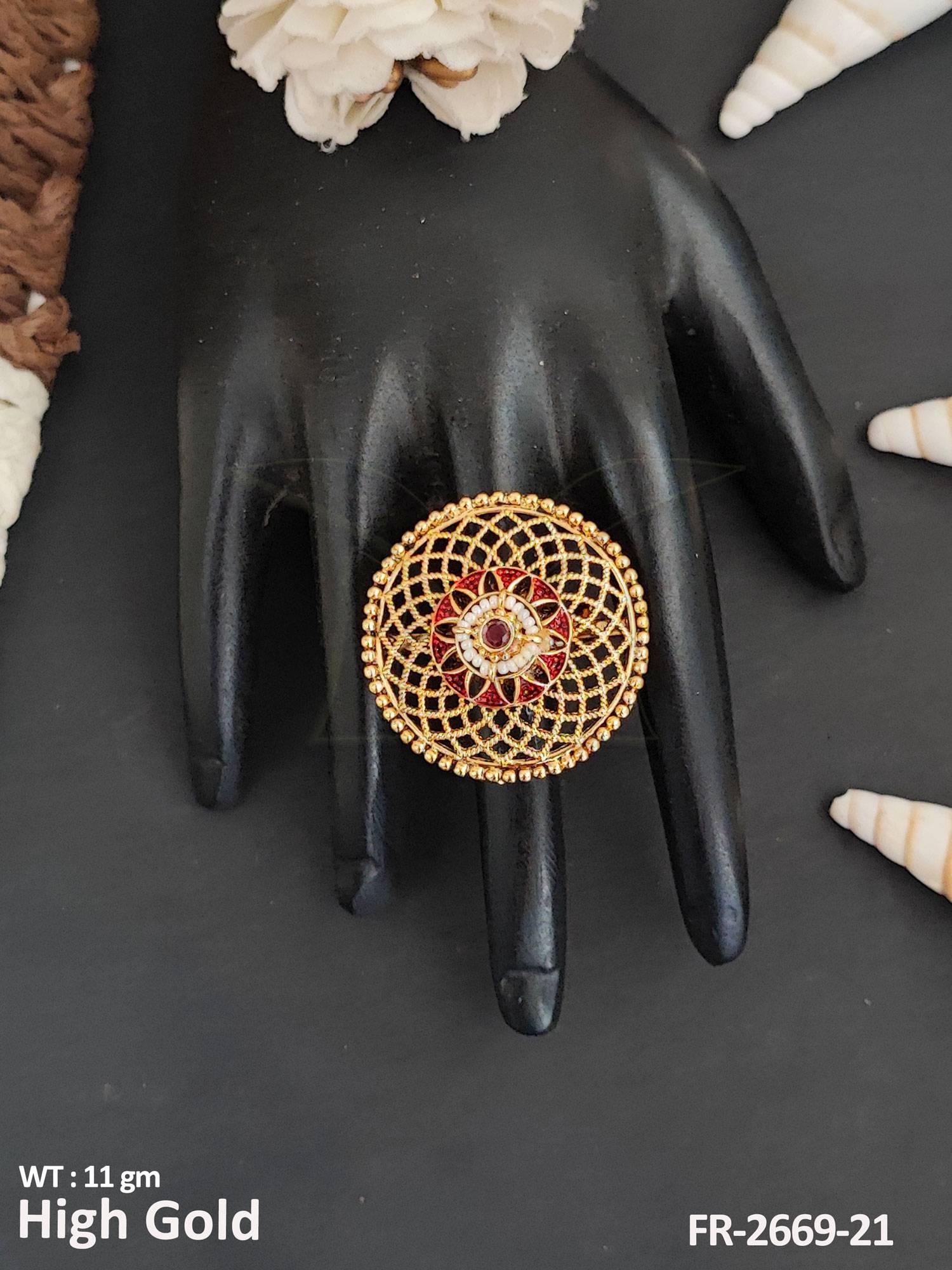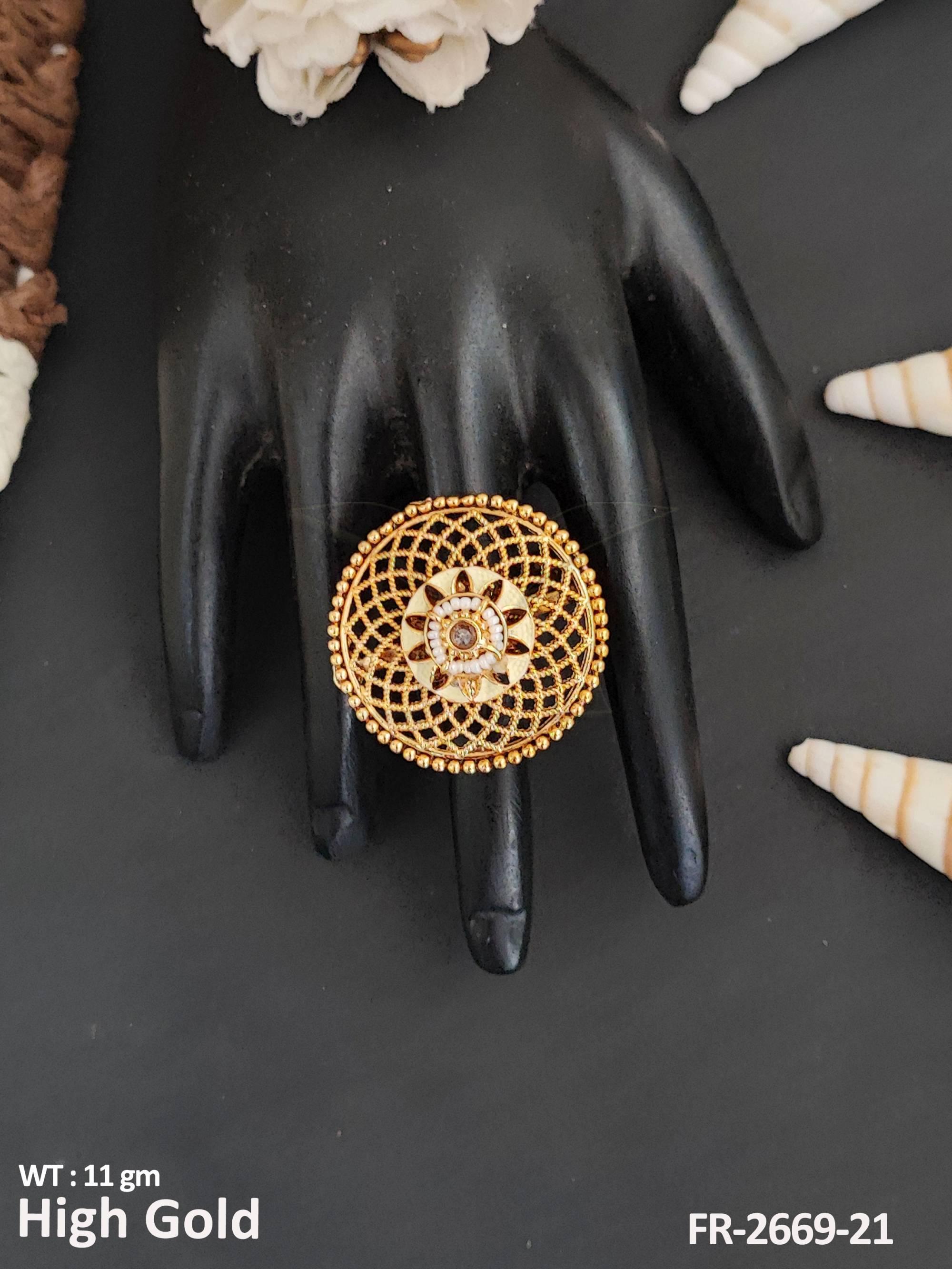 2. Designer High Gold Polish Antique Jewellery Party Wear Finger Ring