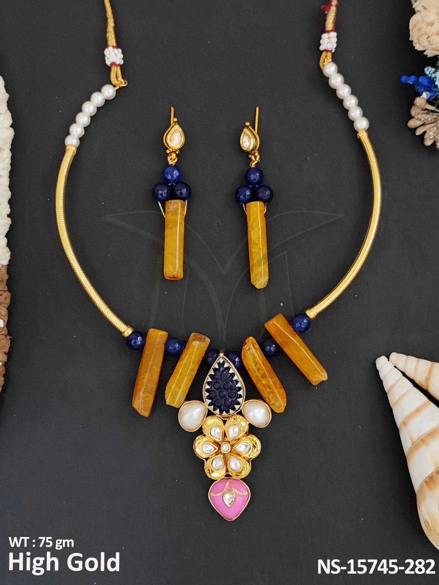 - Designer Kundan Jewellery High Gold Polish Fancy Style Necklace Set