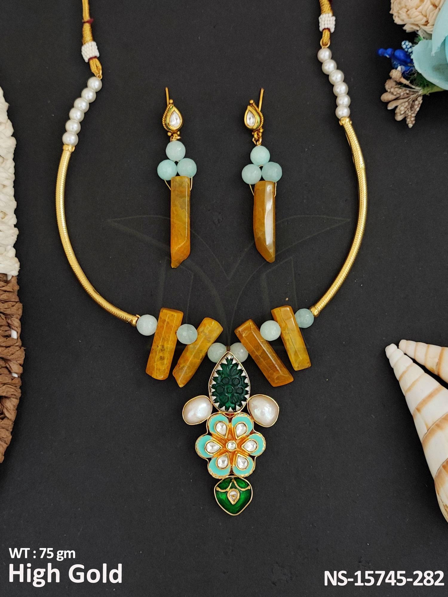 Designer Kundan Jewellery High Gold Polish Fancy Style Necklace Set