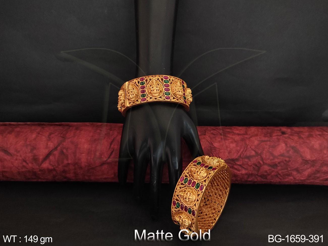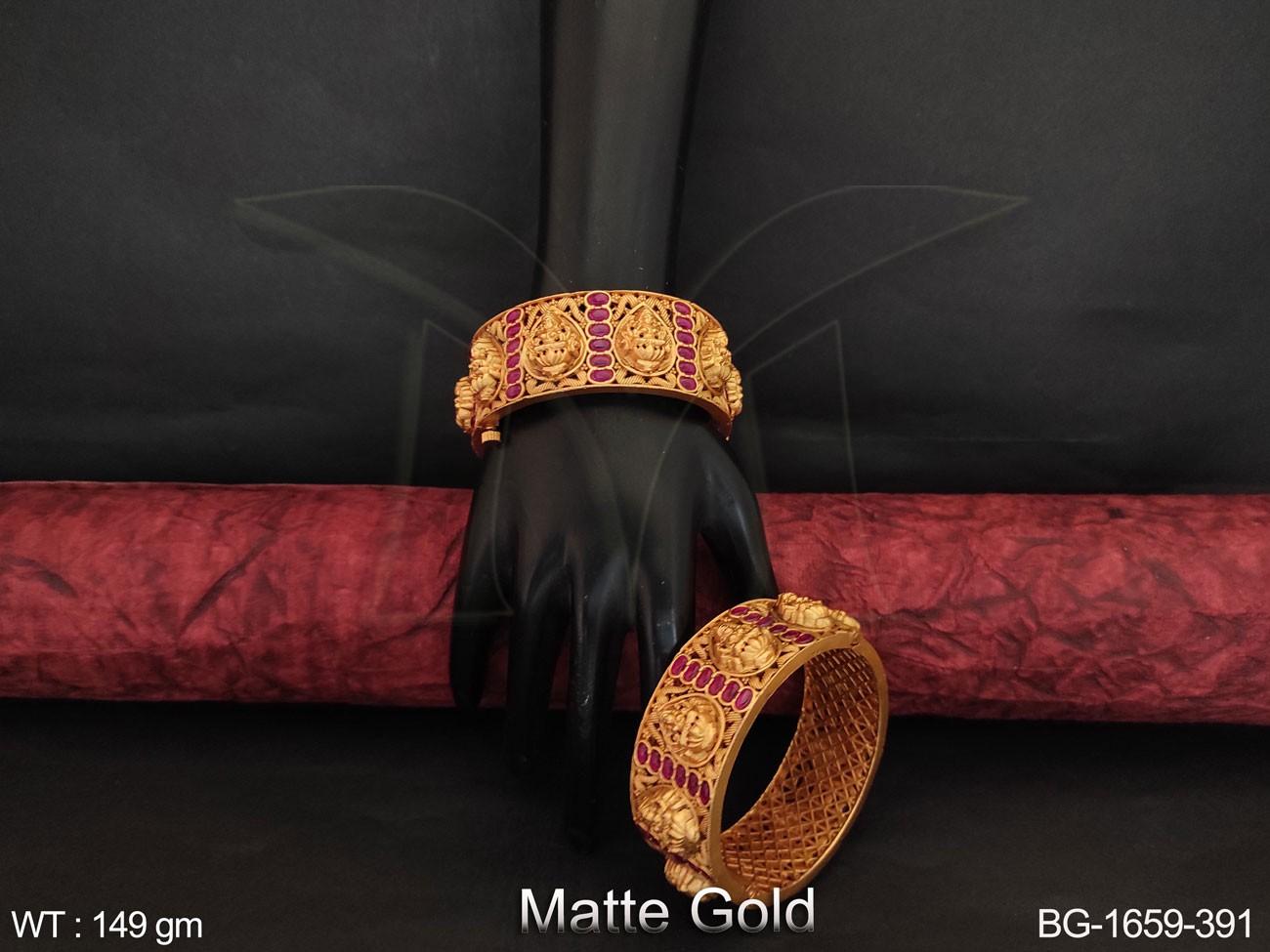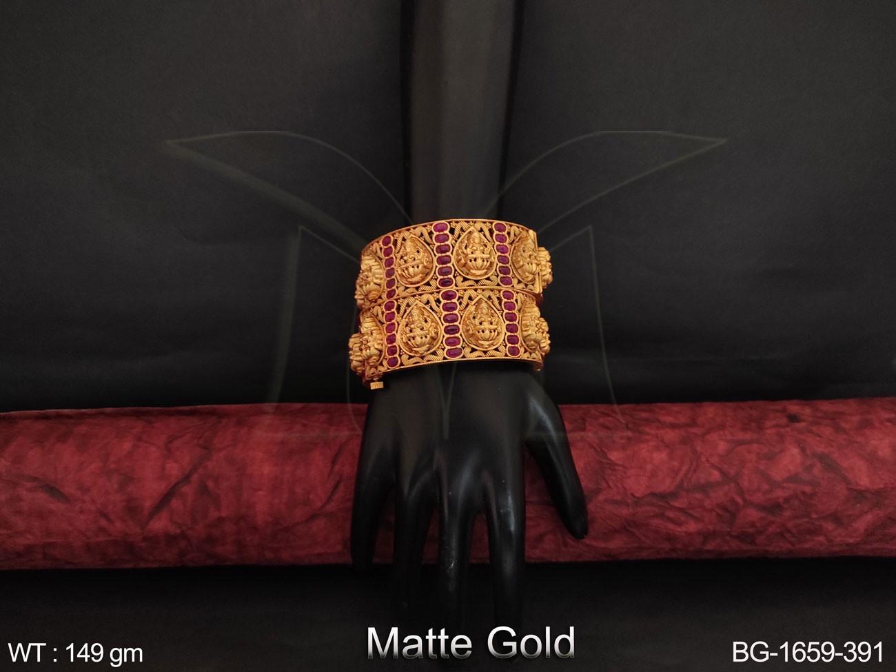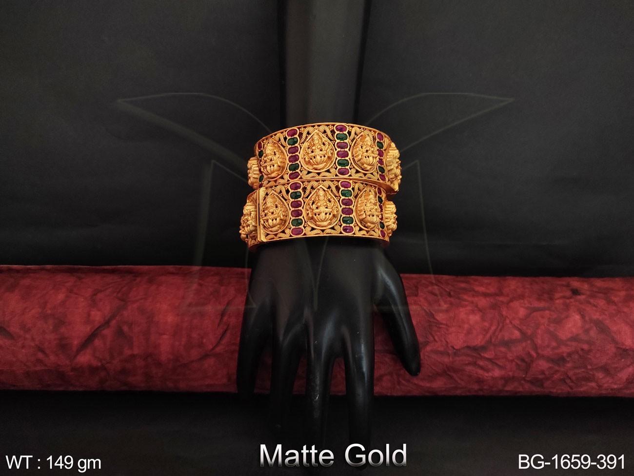 - Designer Matte Gold Polish Beautiful Laxmi Design Temple Bangle Set