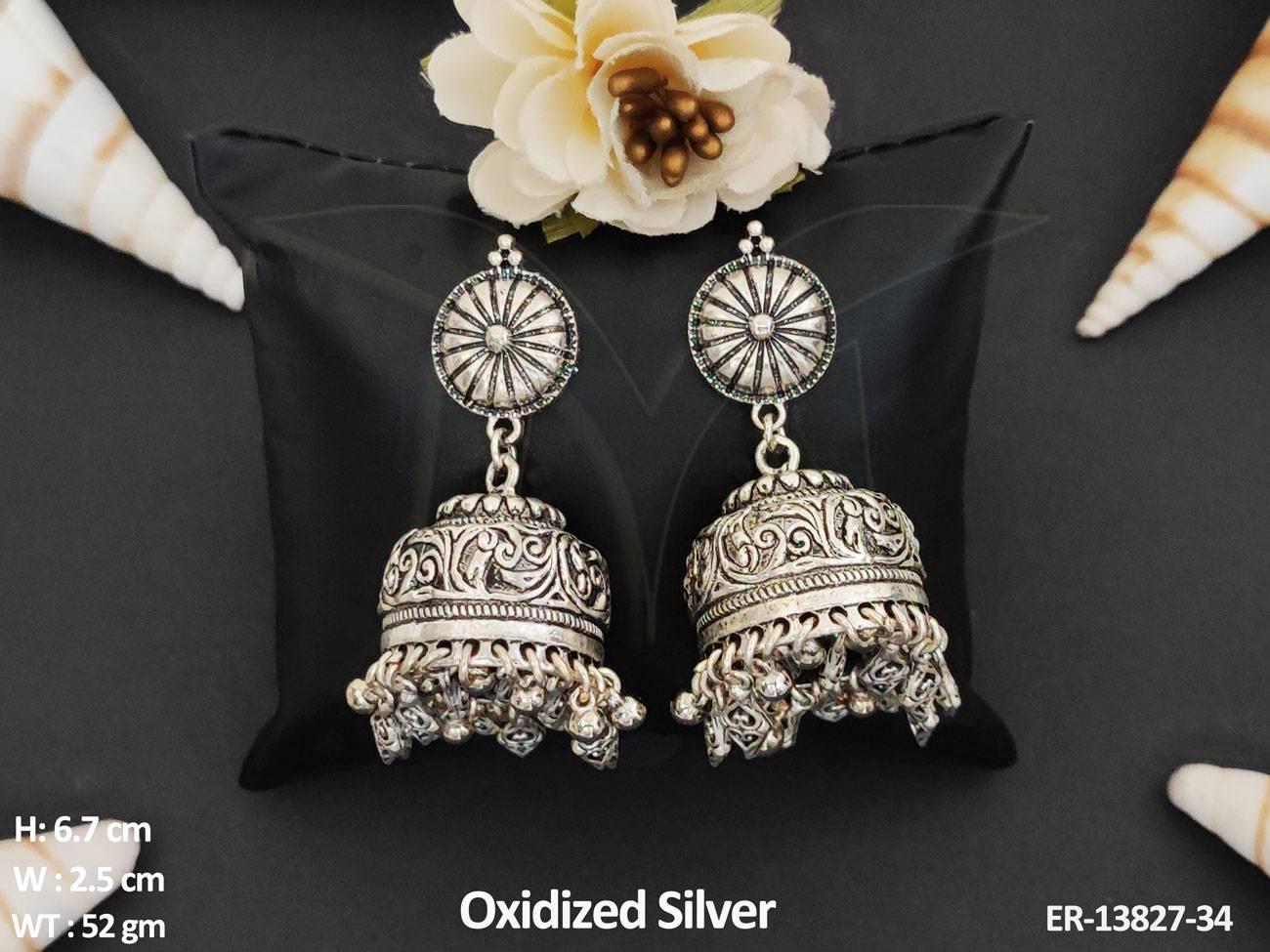 - Designer Party wear Oxidised Silver Polish Party wear Antique Style Oxidised Jhumka Earring