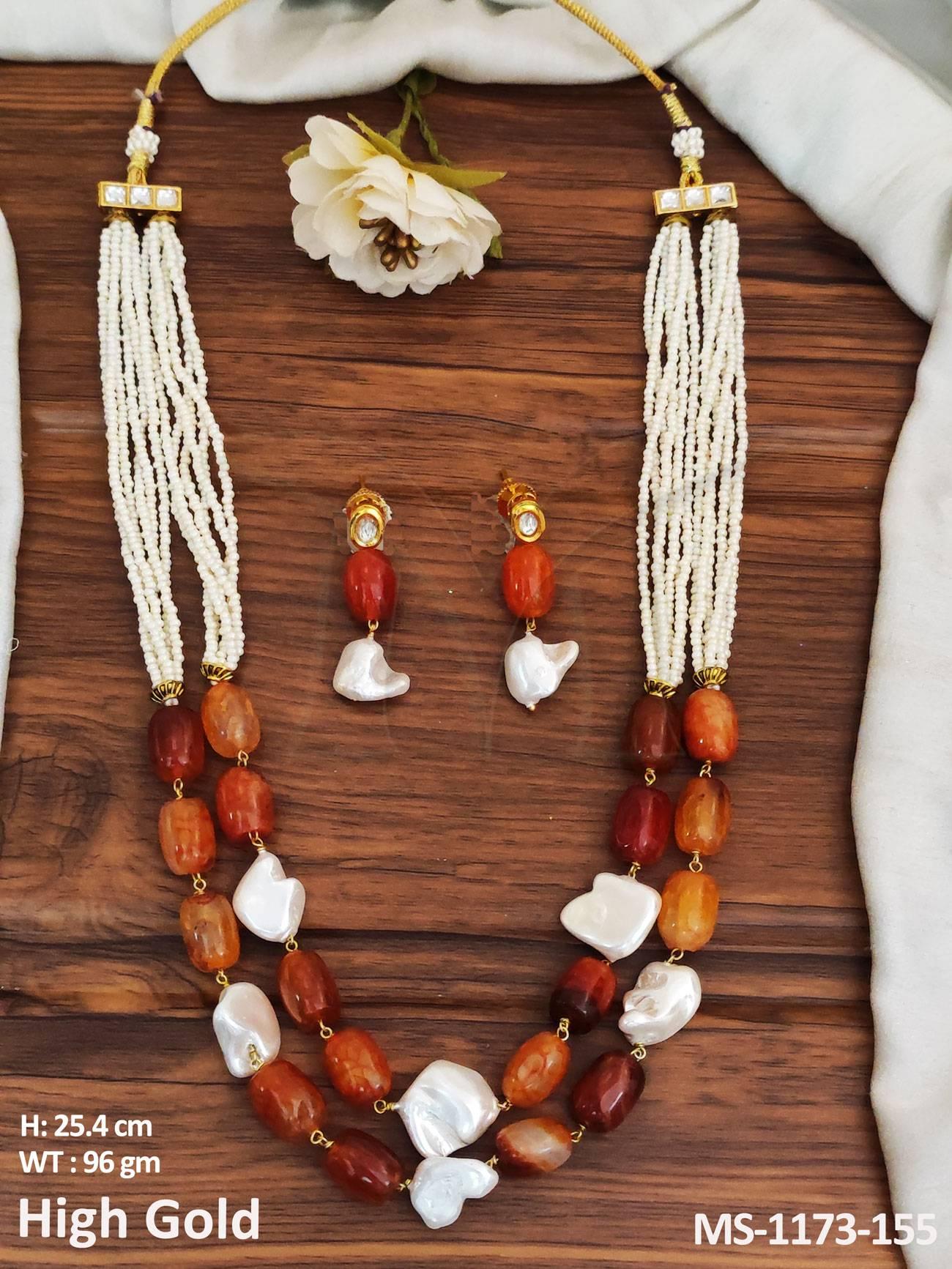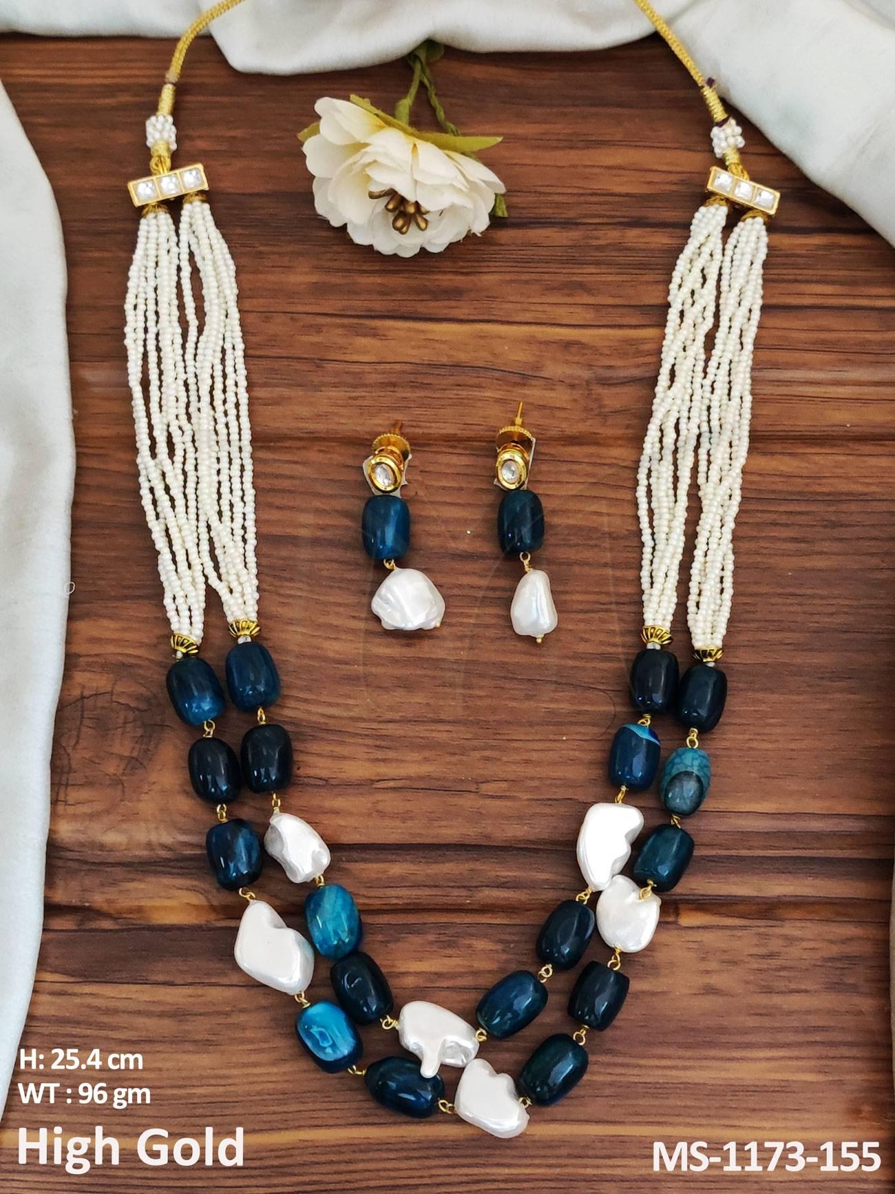 - Desinger High Gold Polish Fancy Design Ethnic Beaded Jewellery Traditional Long Mala Set