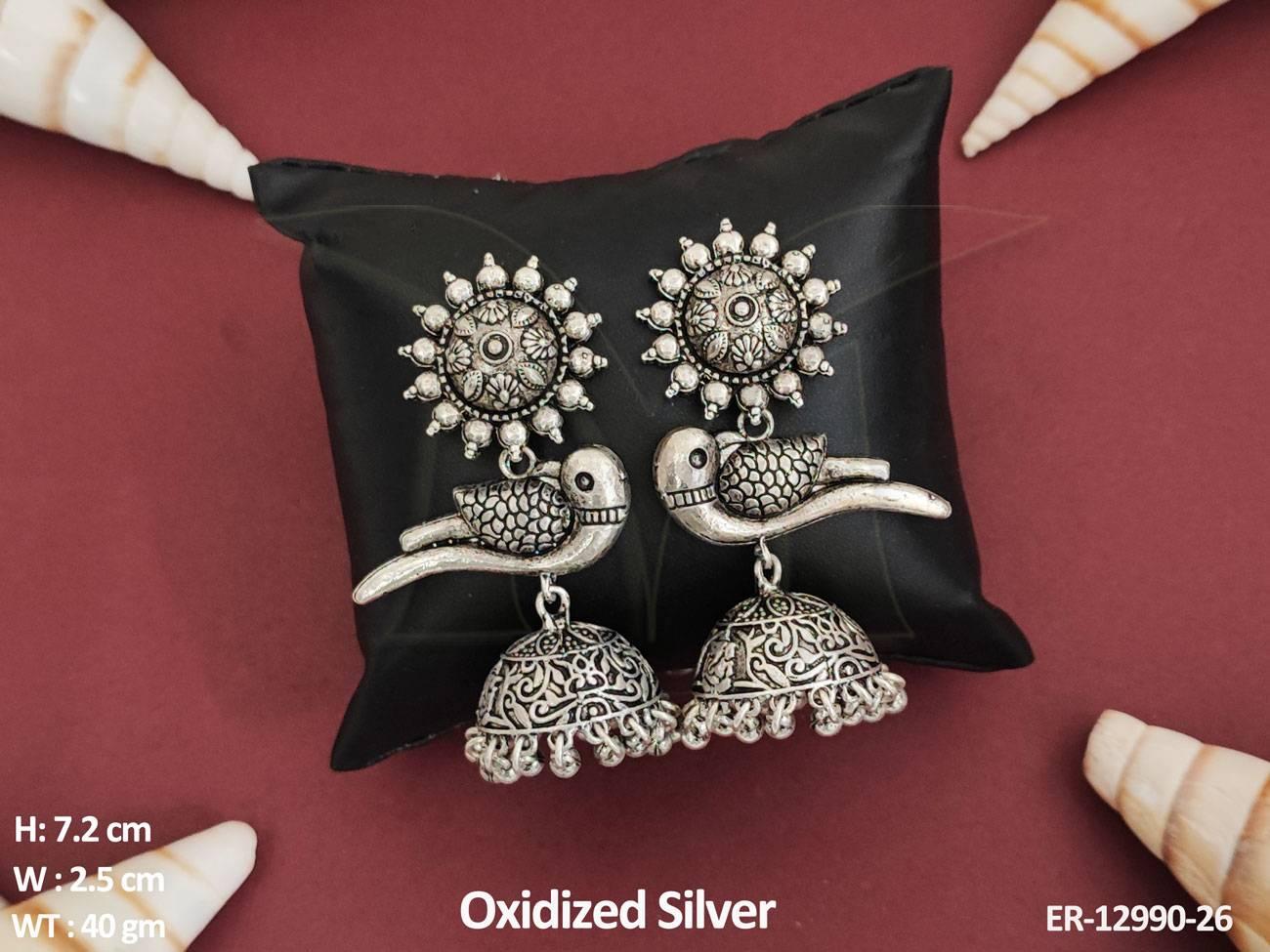 - Fancy Design Party wear Beautiful Antique Oxidised Silver Polish Oxidised Jhumka Earring