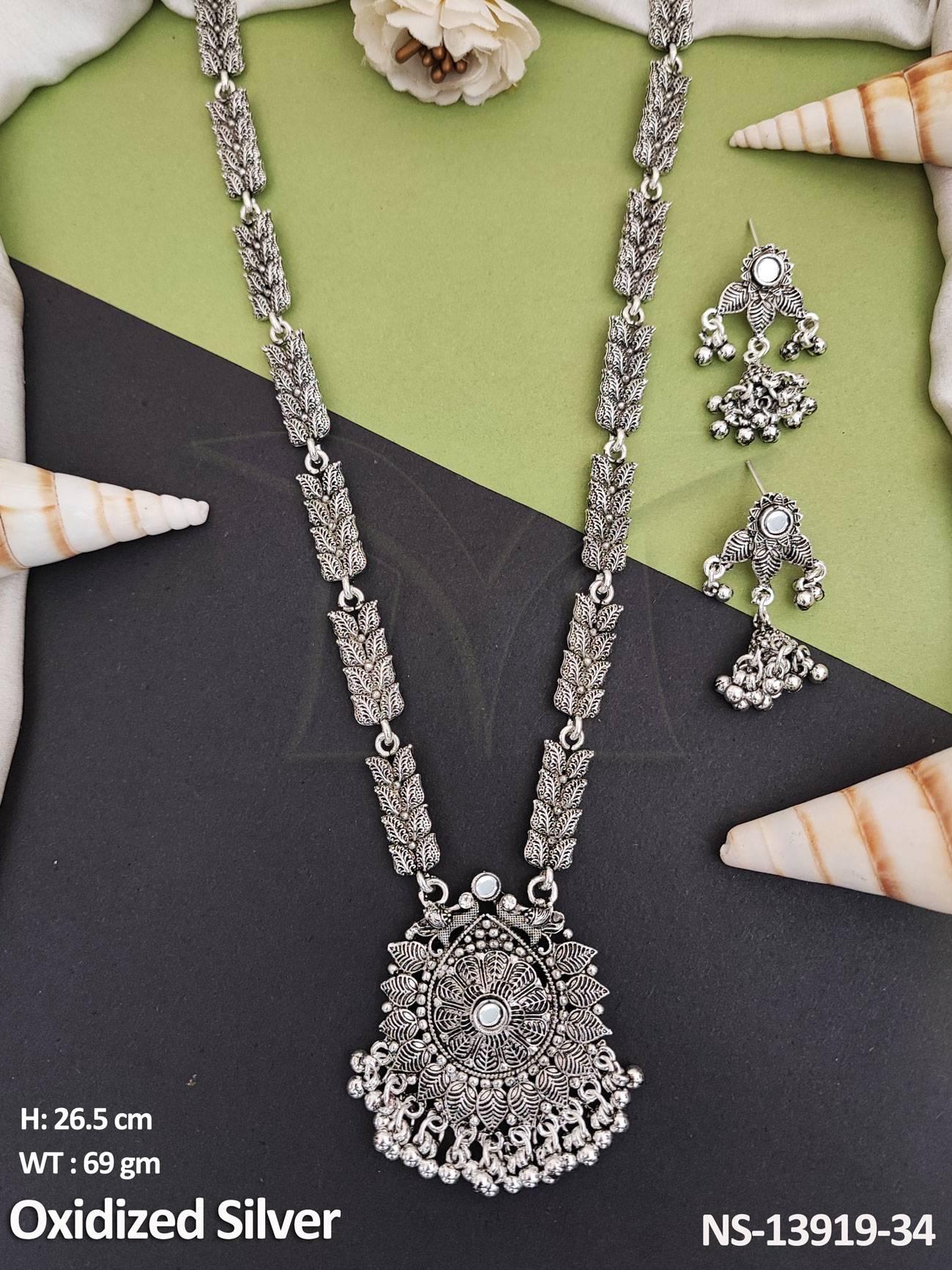 - Fancy design Party wear Beautiful Oxidised Jewellery Oxidised Silver Polish Oxlidised Long Necklace Set