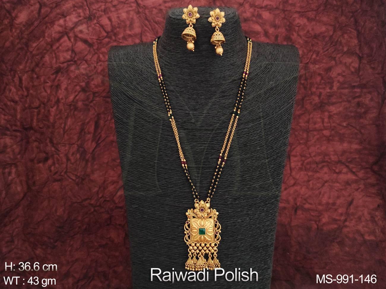 - Fancy Design Pendant Rajwadi Polish Designer Long Antique Mangalsutra