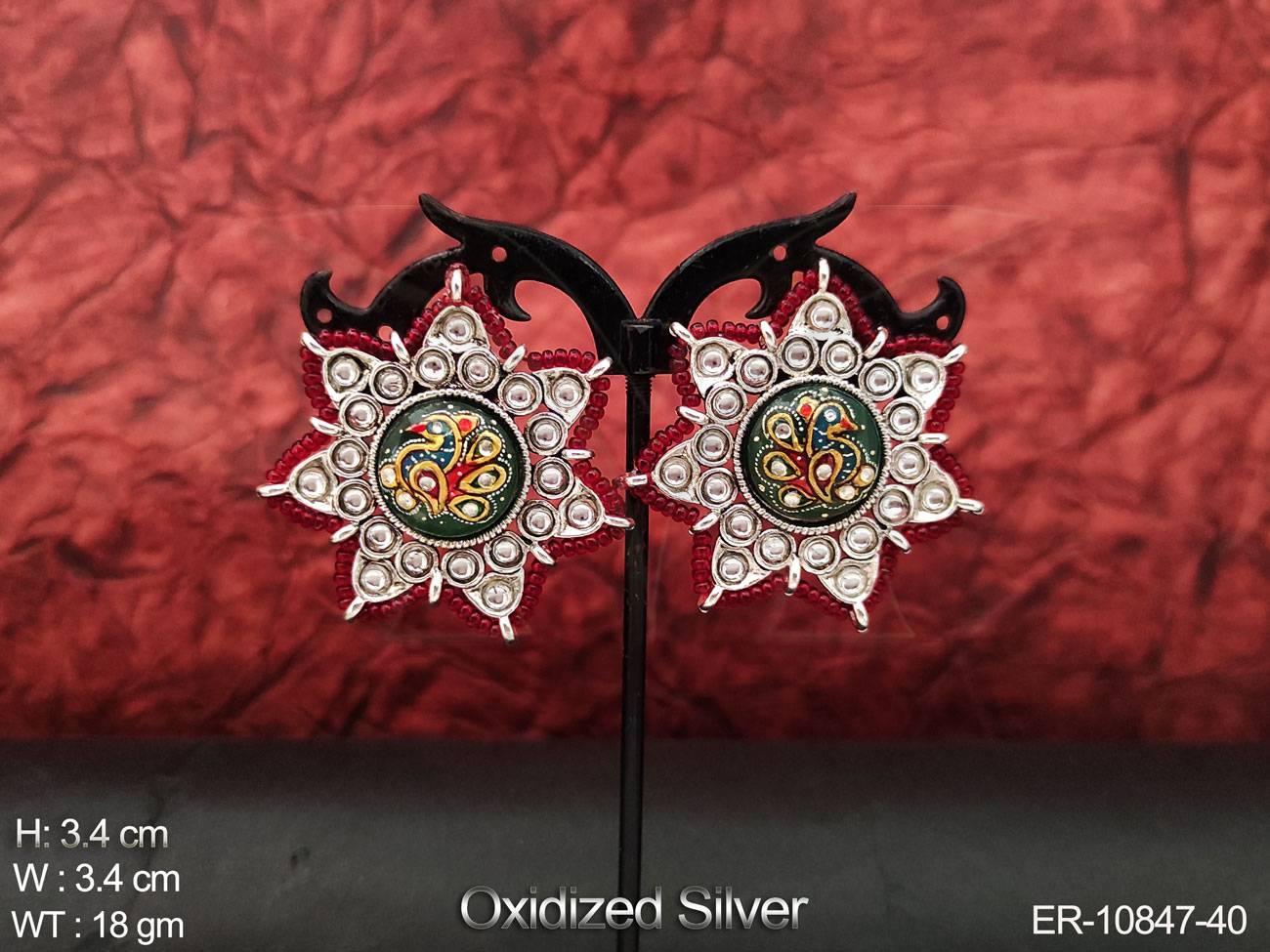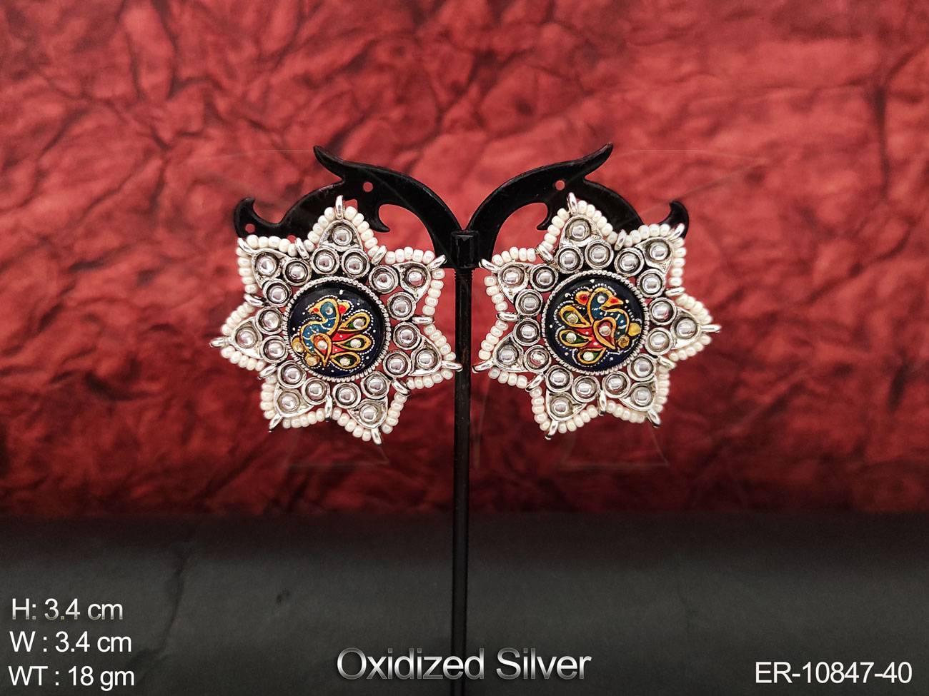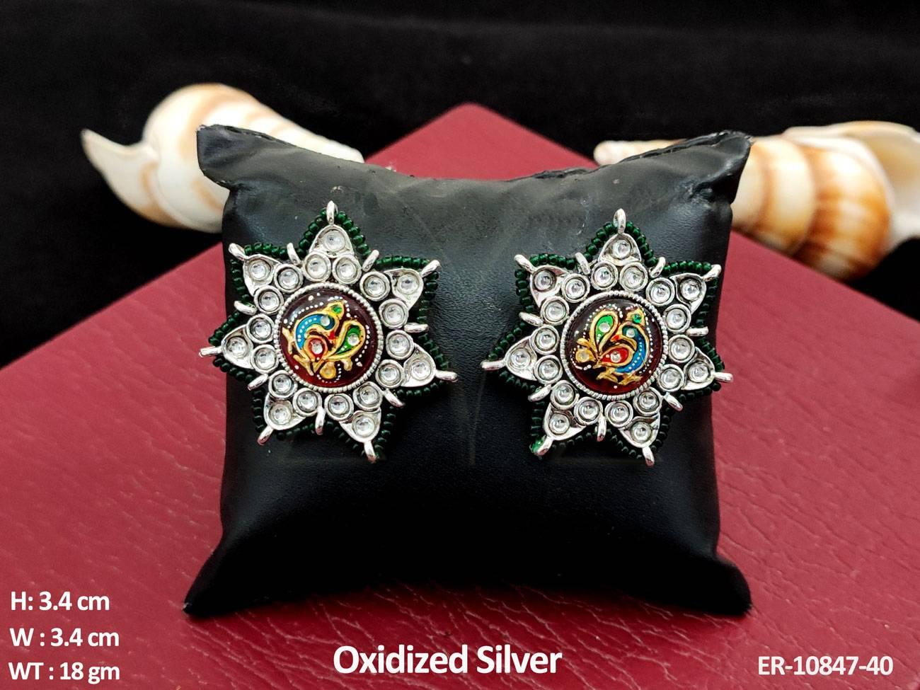 - Fancy Style Party wear Beautiful Oxidised Silver Polish Designer Oxidised Jewellery Earring Tops
