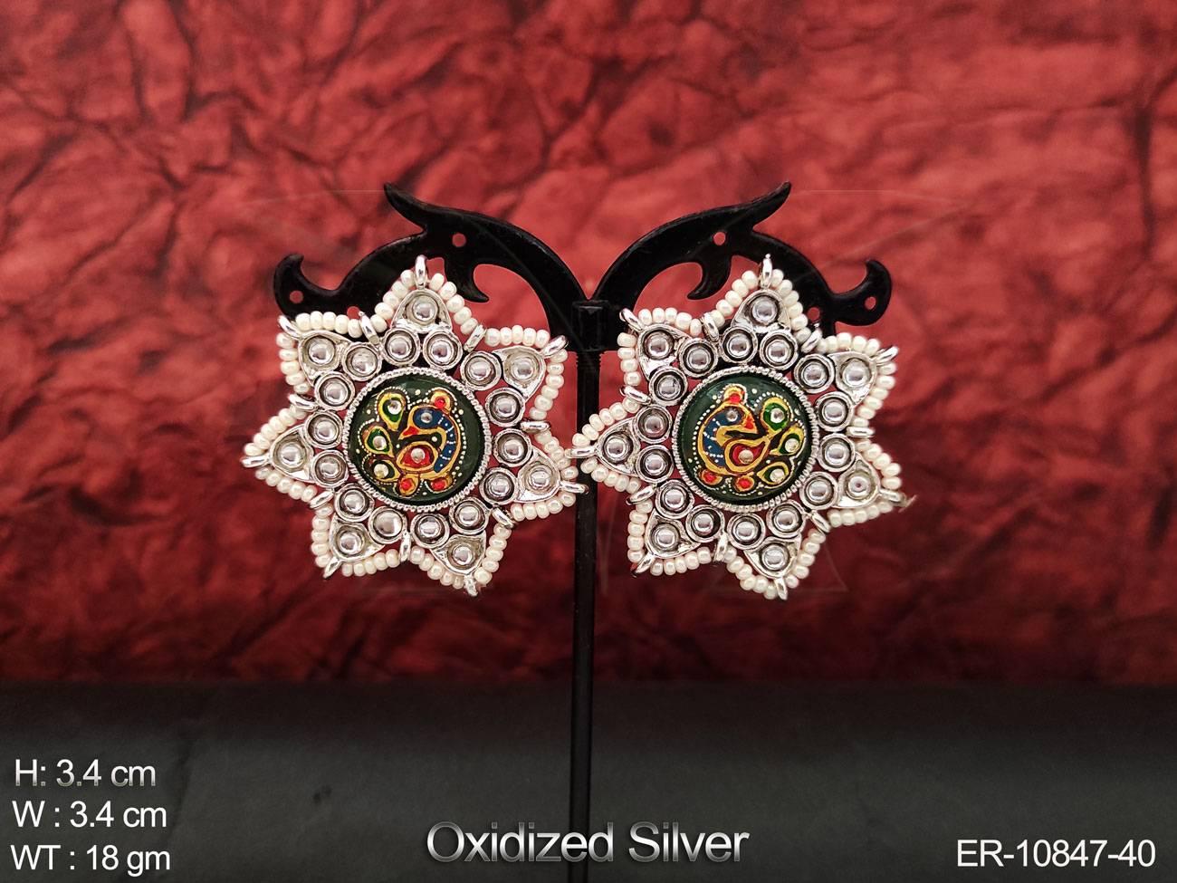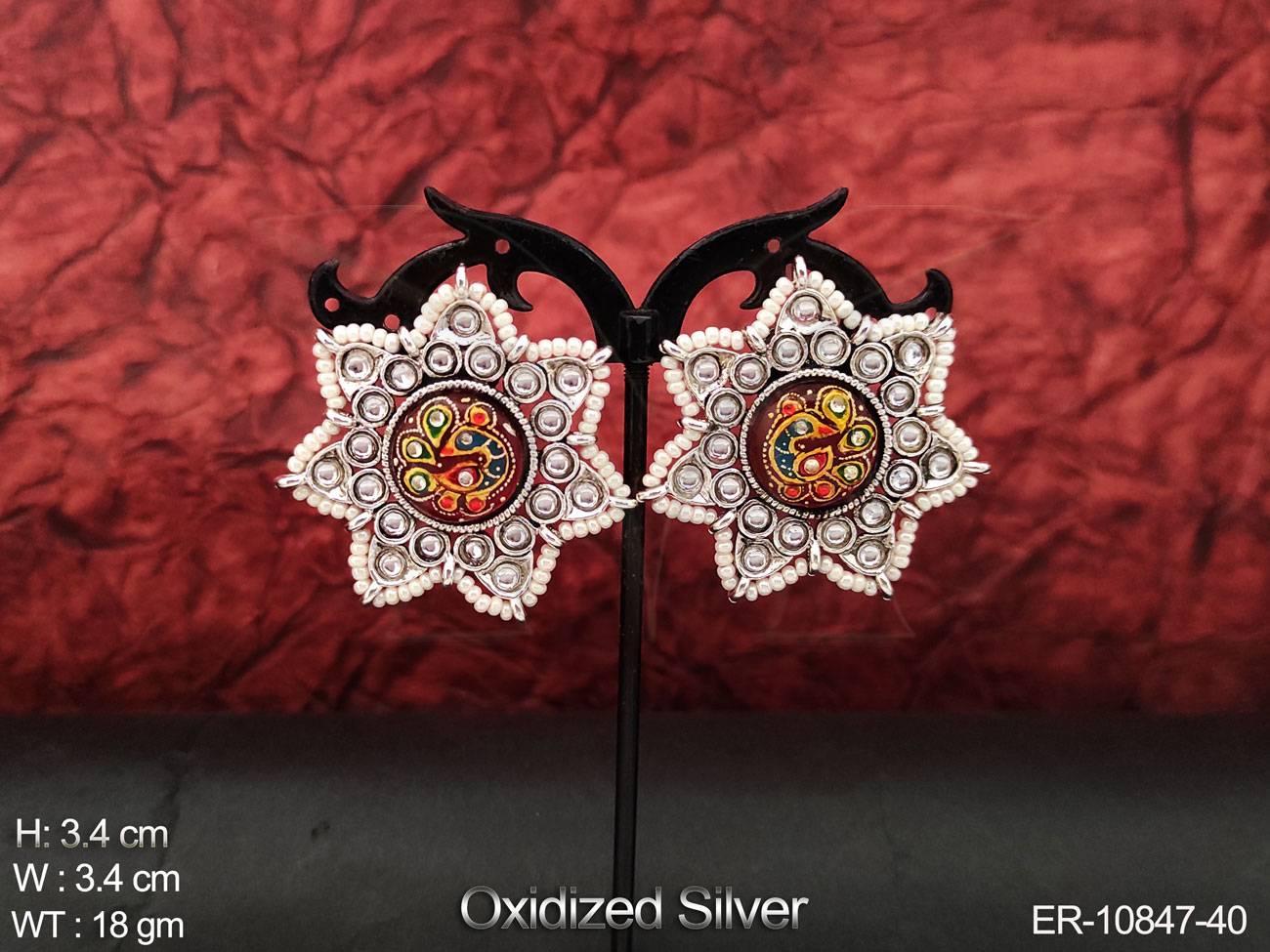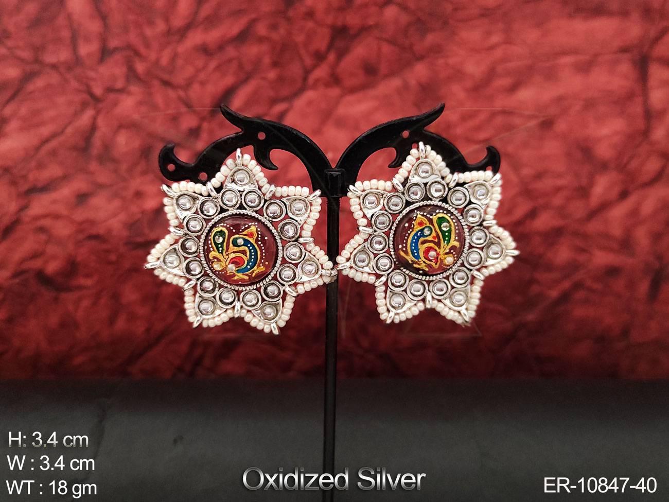 - Fancy Style Party wear Beautiful Oxidised Silver Polish Designer Oxidised Jewellery Earring Tops