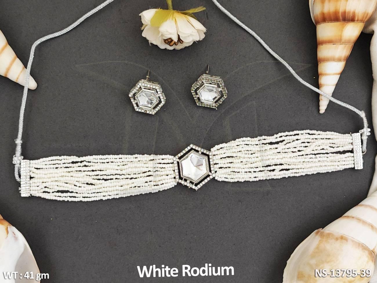 - Fancy Style Party wear Beautiful White Rodium Polish Designer Kundan Stones Kundan Choker Style Necklace Set