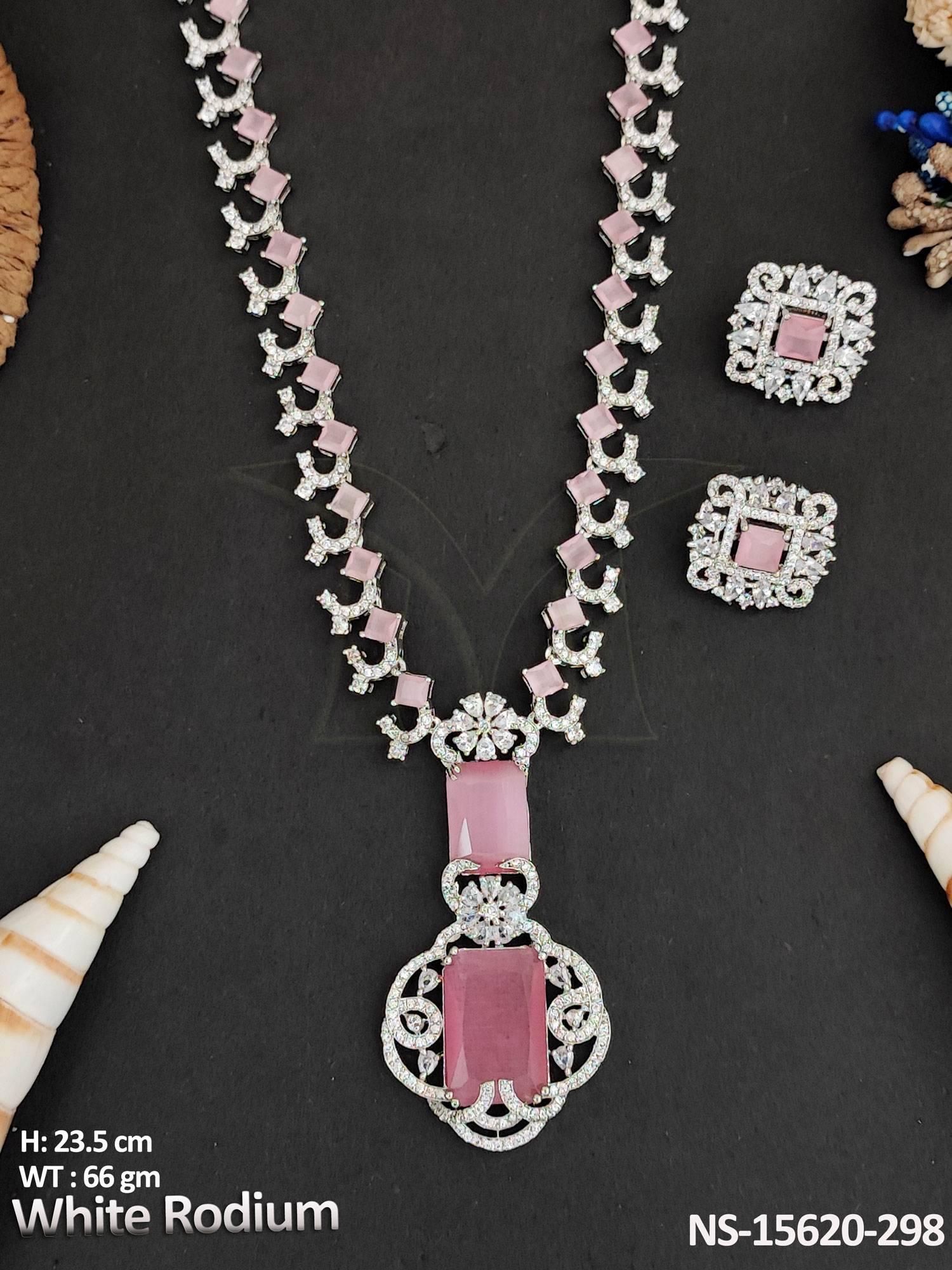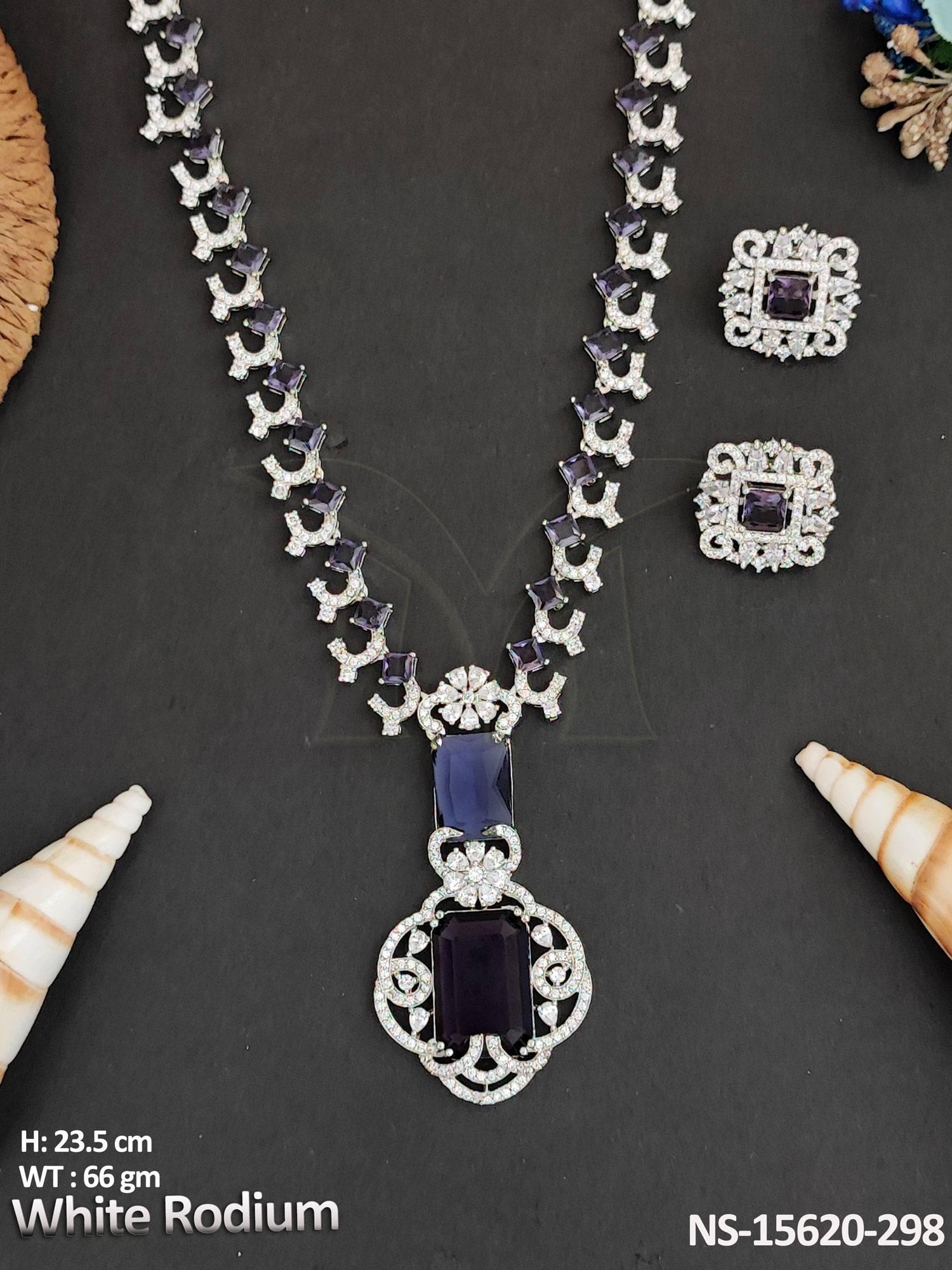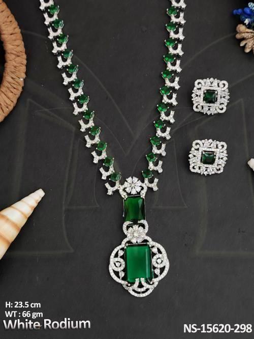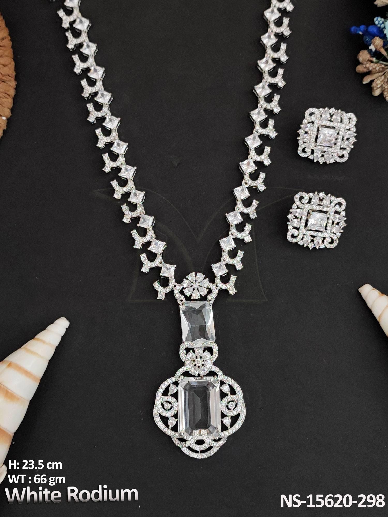 - Full AD CZ Stone White Rodium Polish Fancy Style Necklace set