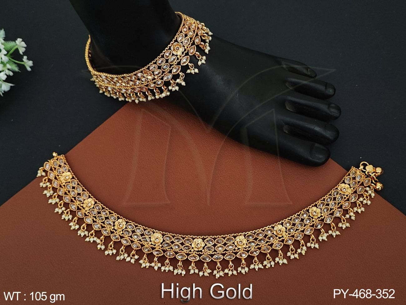 - Full Antique Stones High Gold Polish Clustered Pearl Antique Payal
