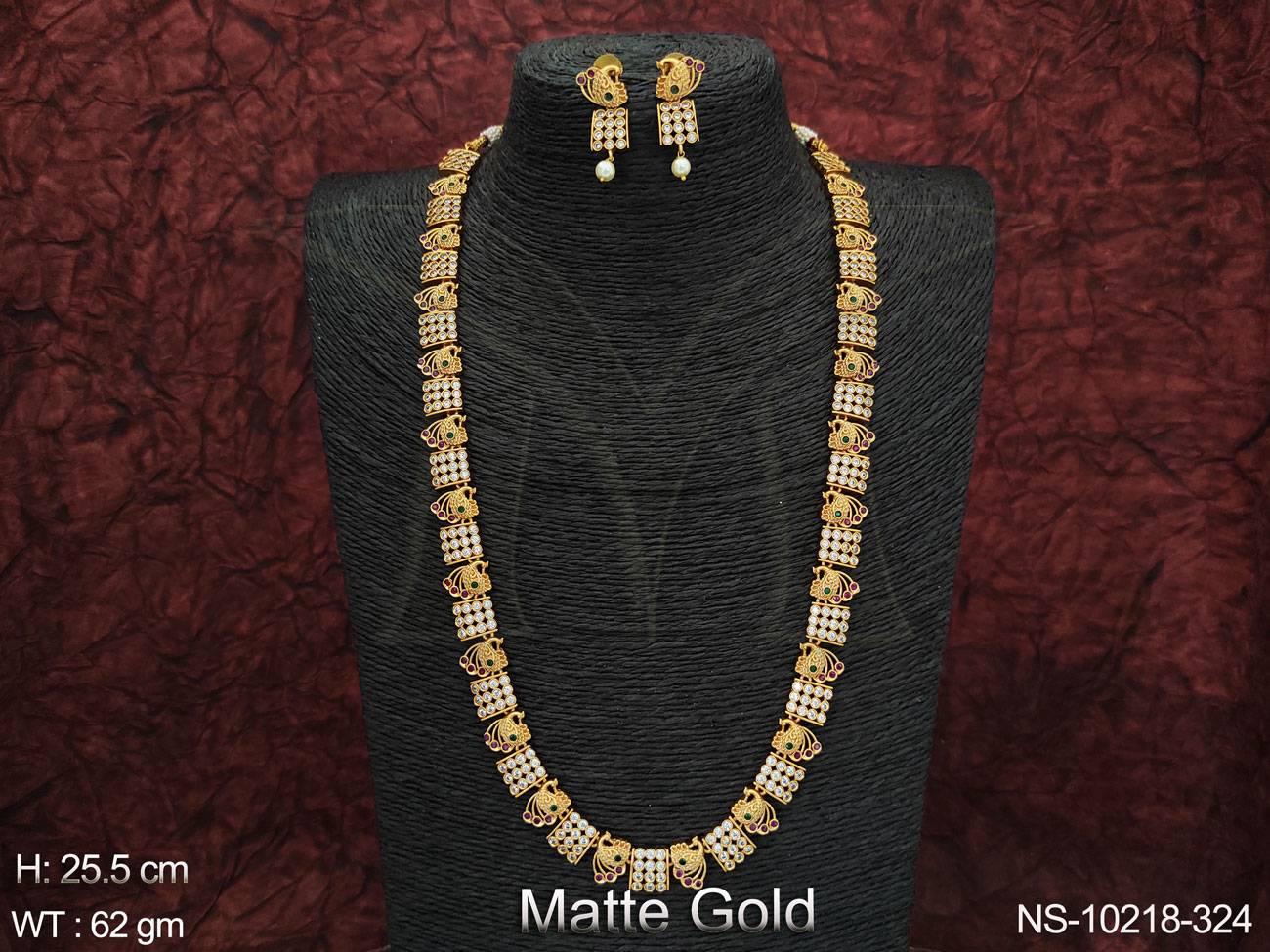 - Full Antique Stones Matte Gold Polish Beautiful Party wear Long Necklace set