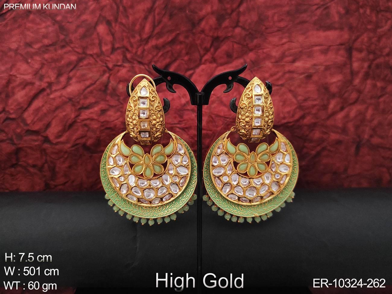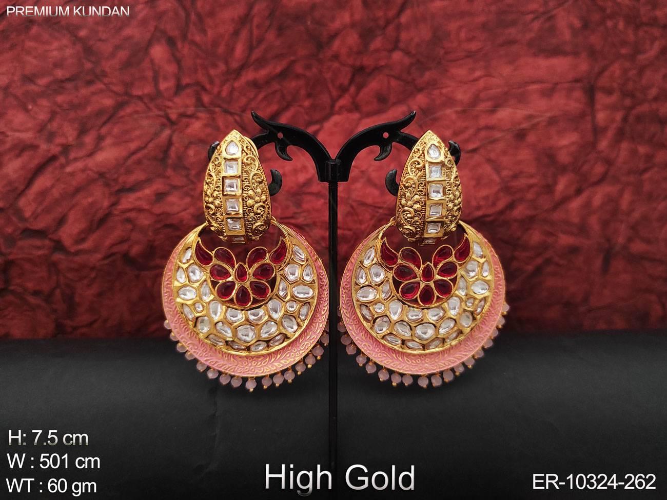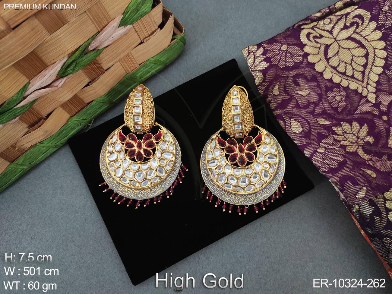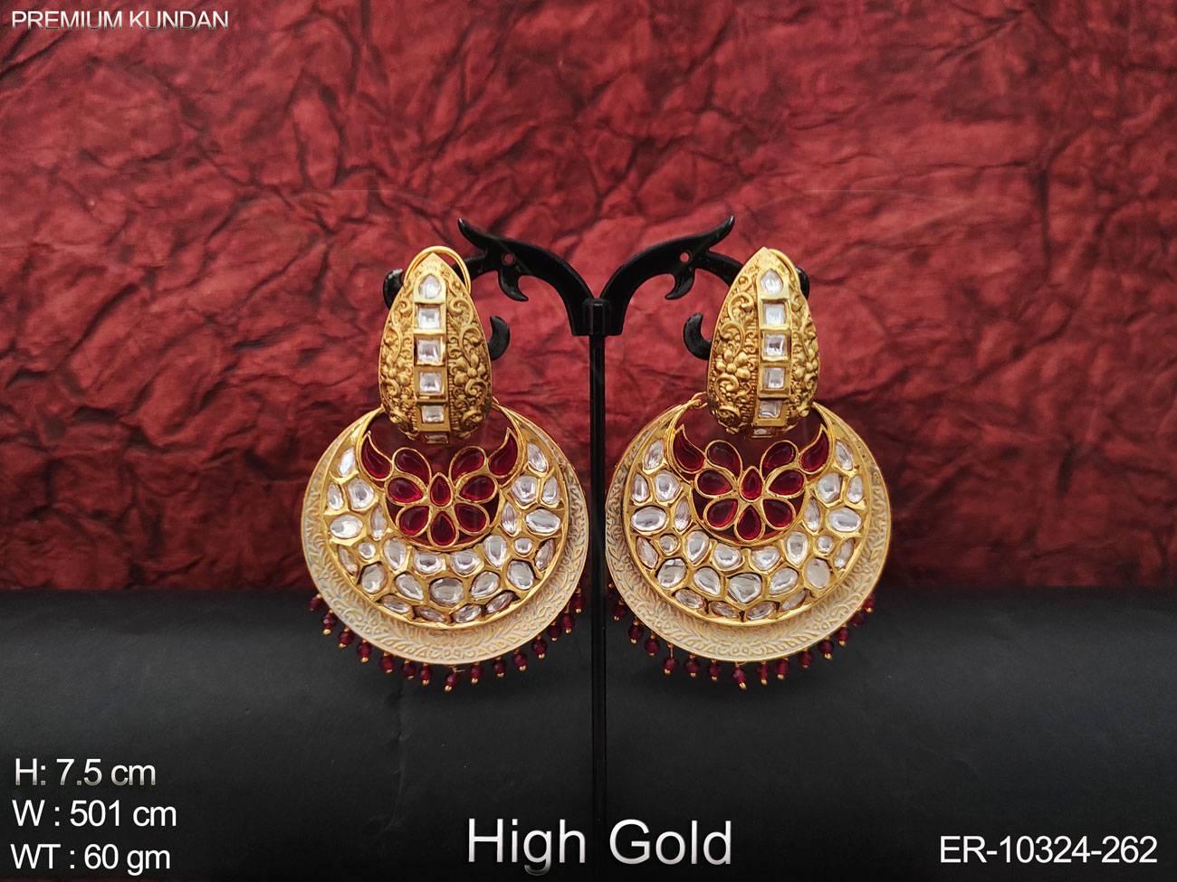 - Full Kundan Chand Shape High Gold Polish Party Wear Fancy Design Kundan Earring