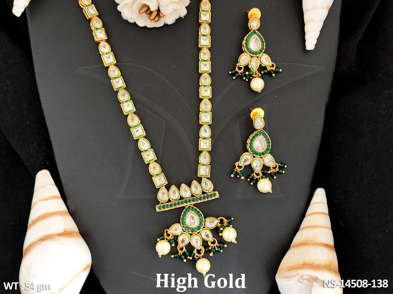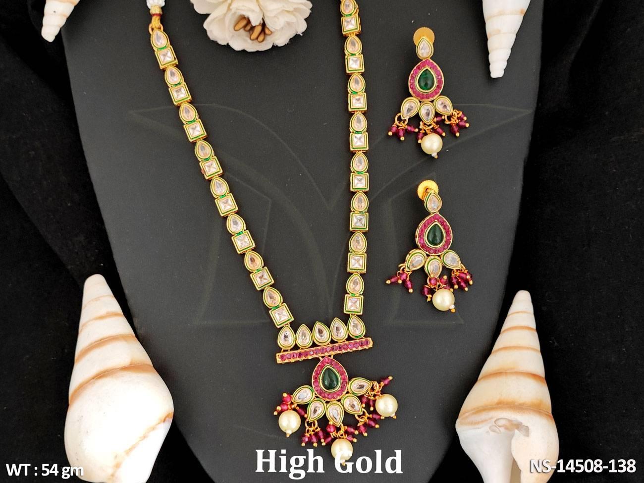 - High Gold Polish Antique Polki Jewellery Designer Necklace Set Party Wear