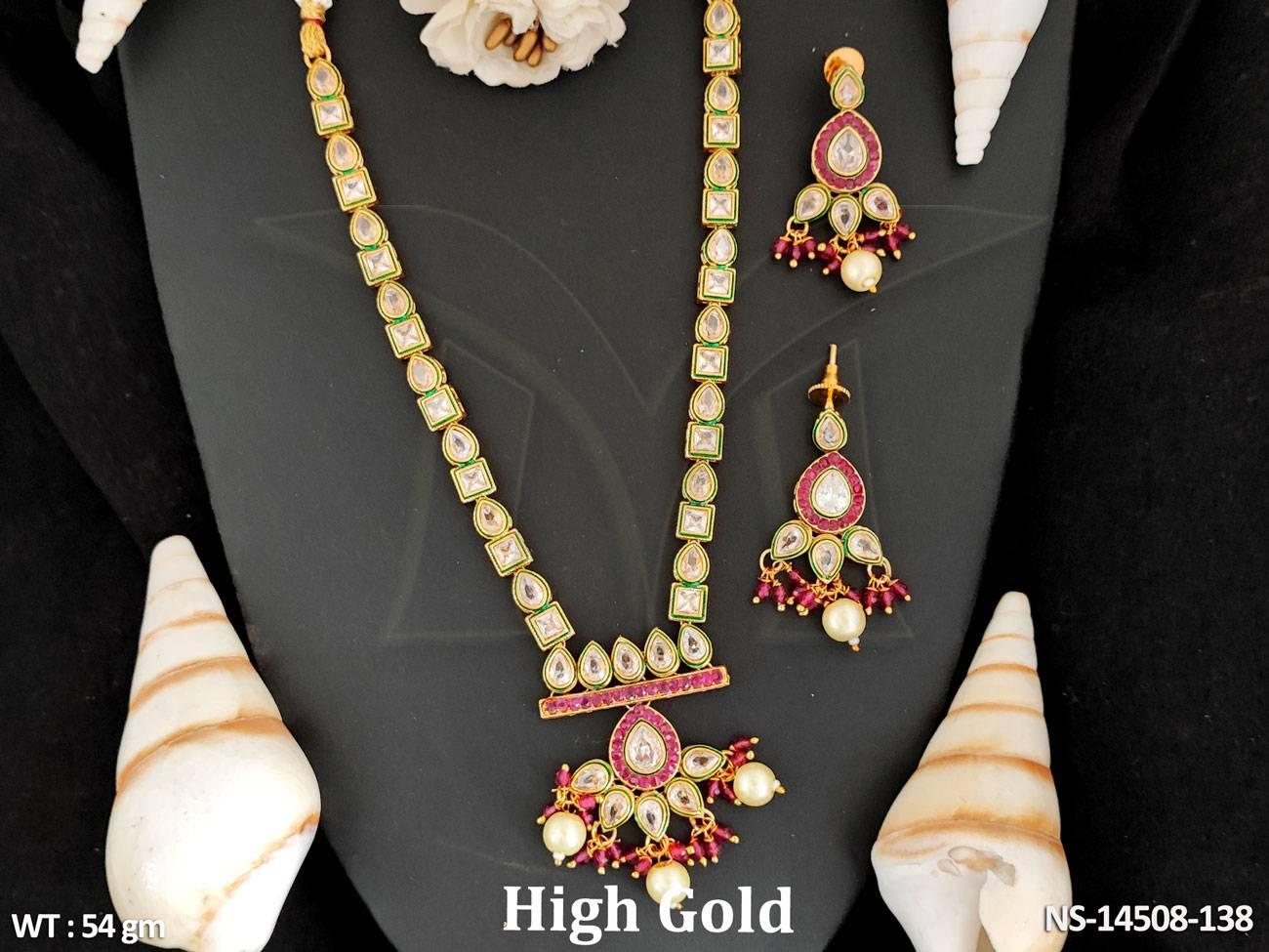 High Gold Polish Antique Polki Jewellery Designer Necklace Set Party Wear