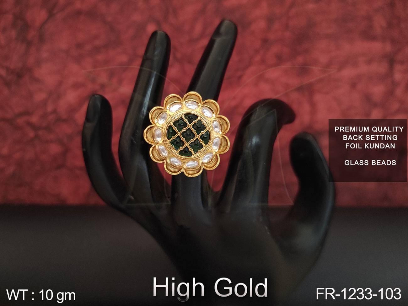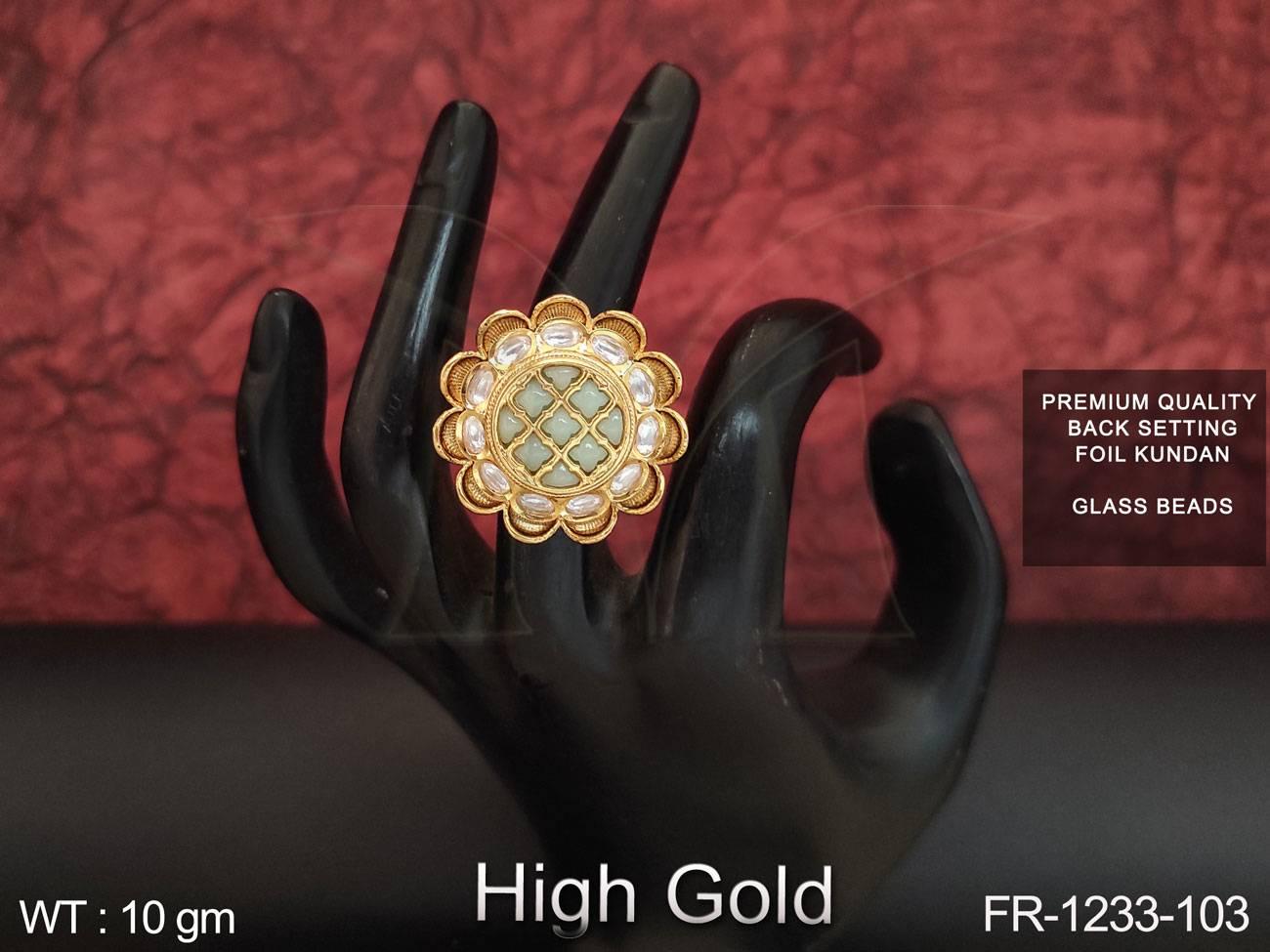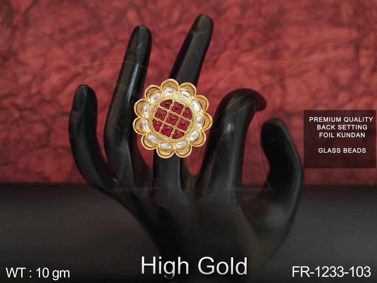 - High Gold Polish Designer Fancy Full Kundan Stones Party wear finger Ring