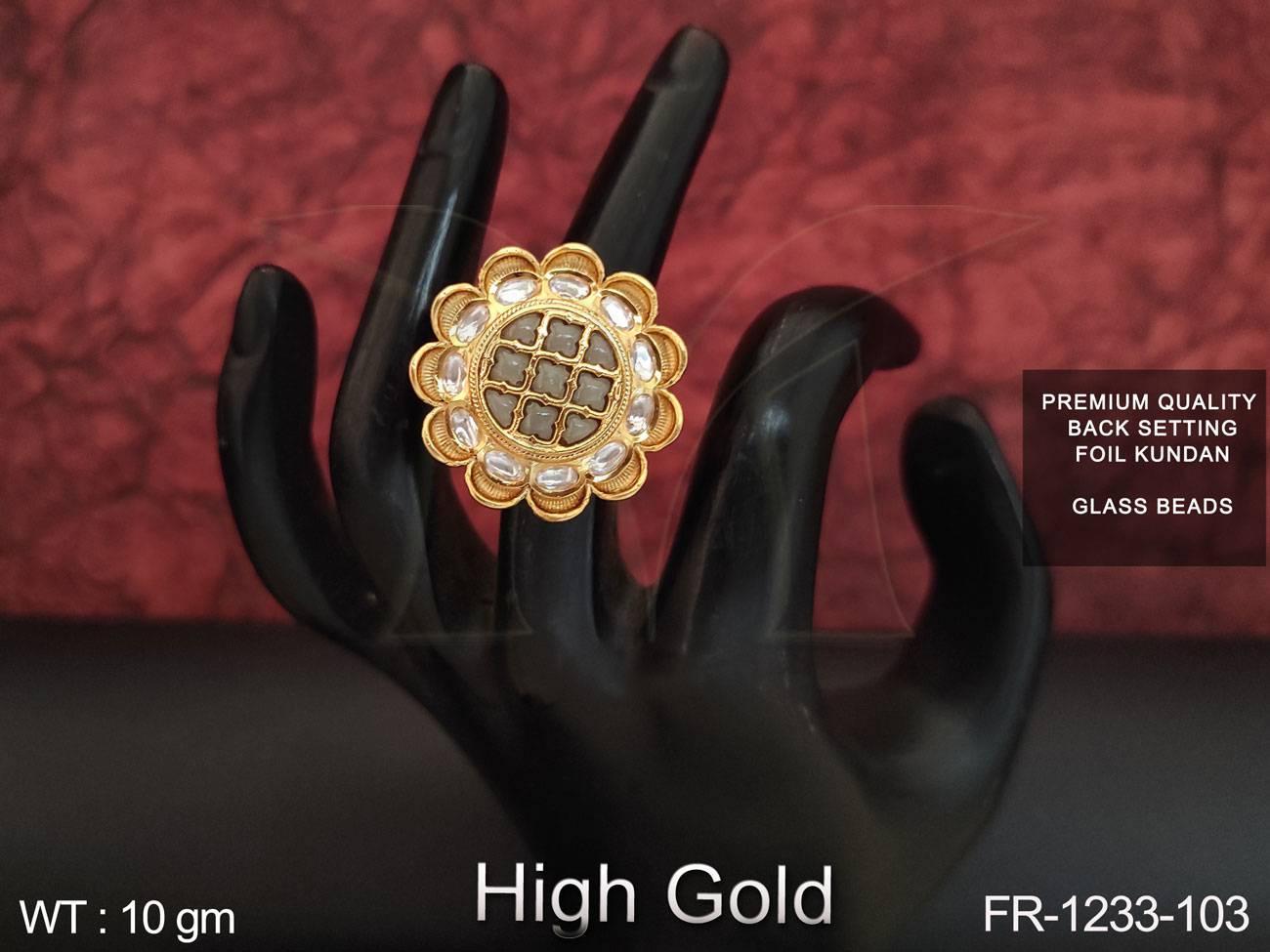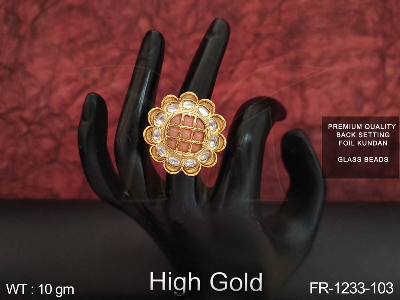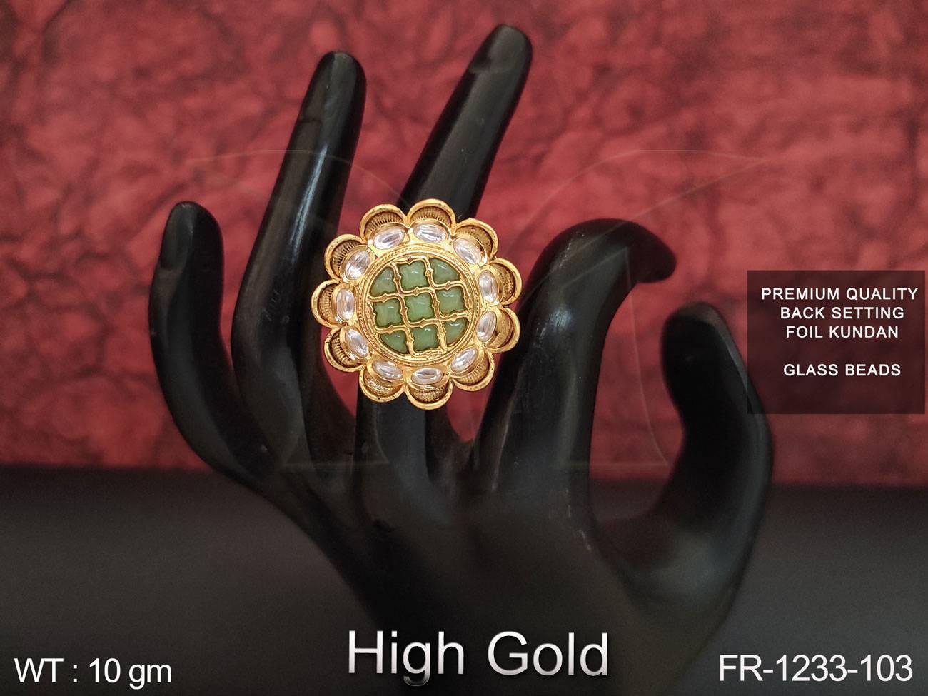 - High Gold Polish Designer Fancy Full Kundan Stones Party wear finger Ring