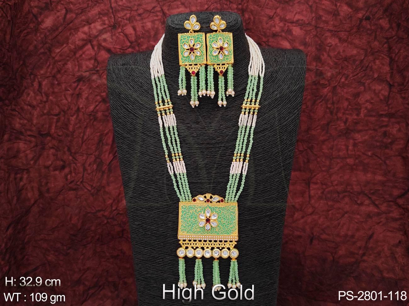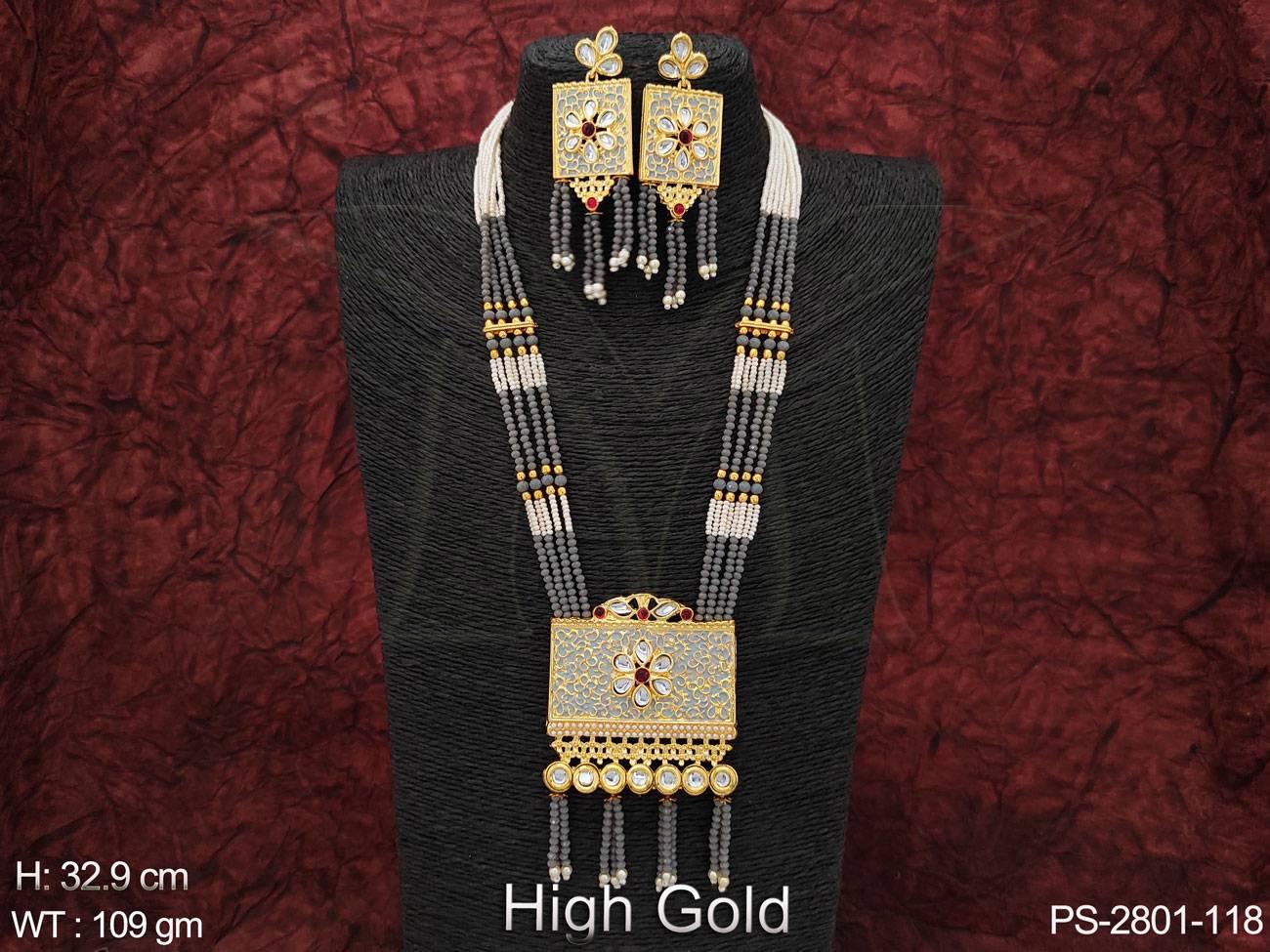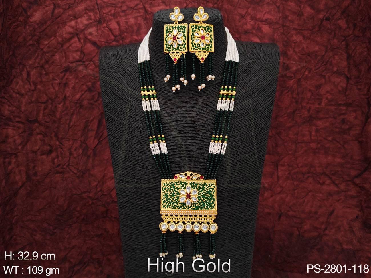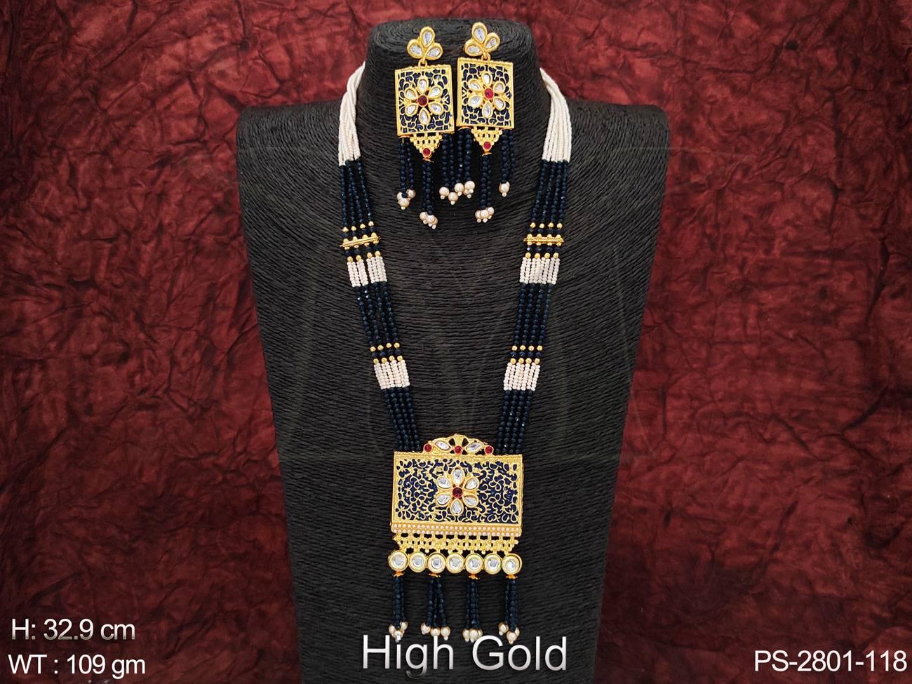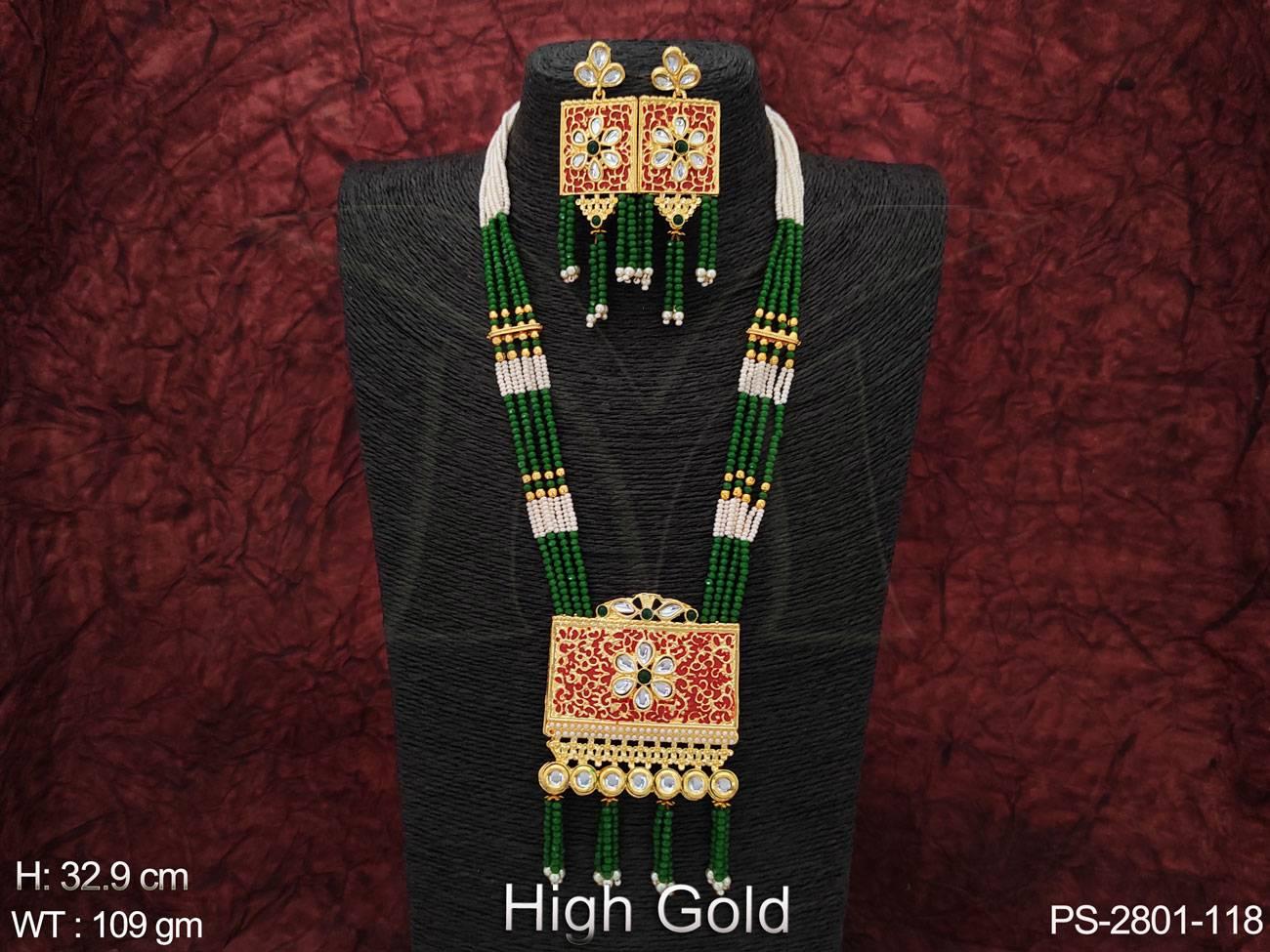 High Gold Polish Ethnic Beaded Kundan Jewellery Designer Party wear Long Kundan Pendant Set