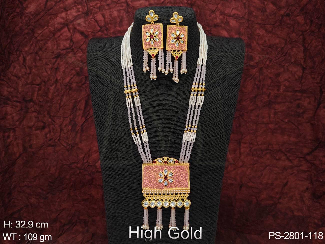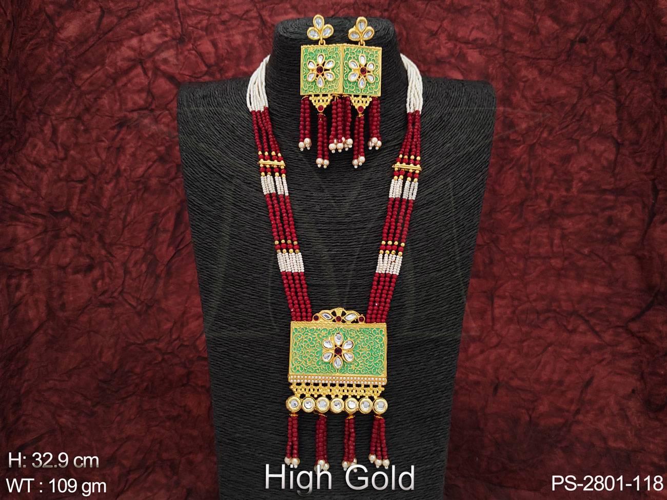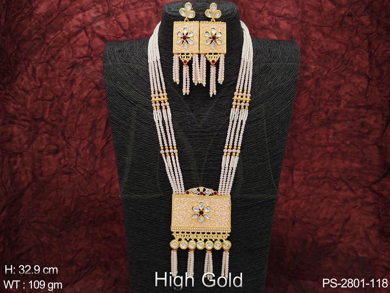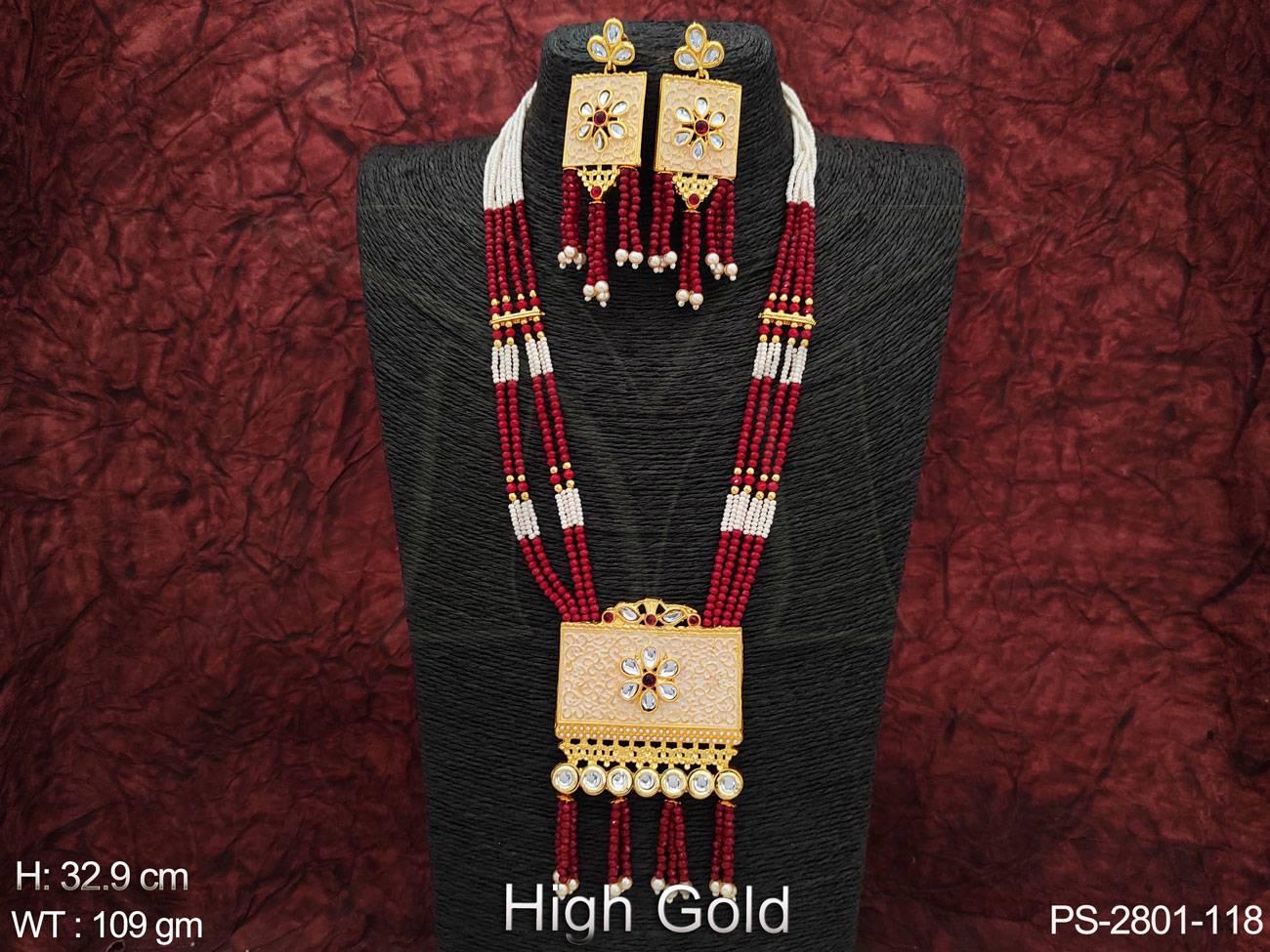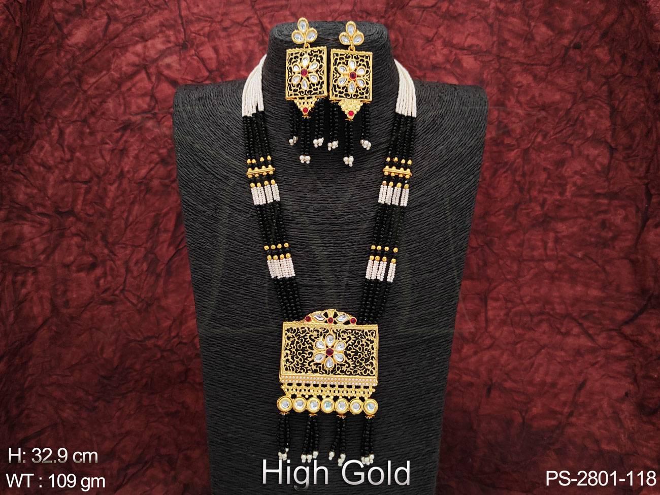 High Gold Polish Ethnic Beaded Kundan Jewellery Designer Party wear Long Kundan Pendant Set