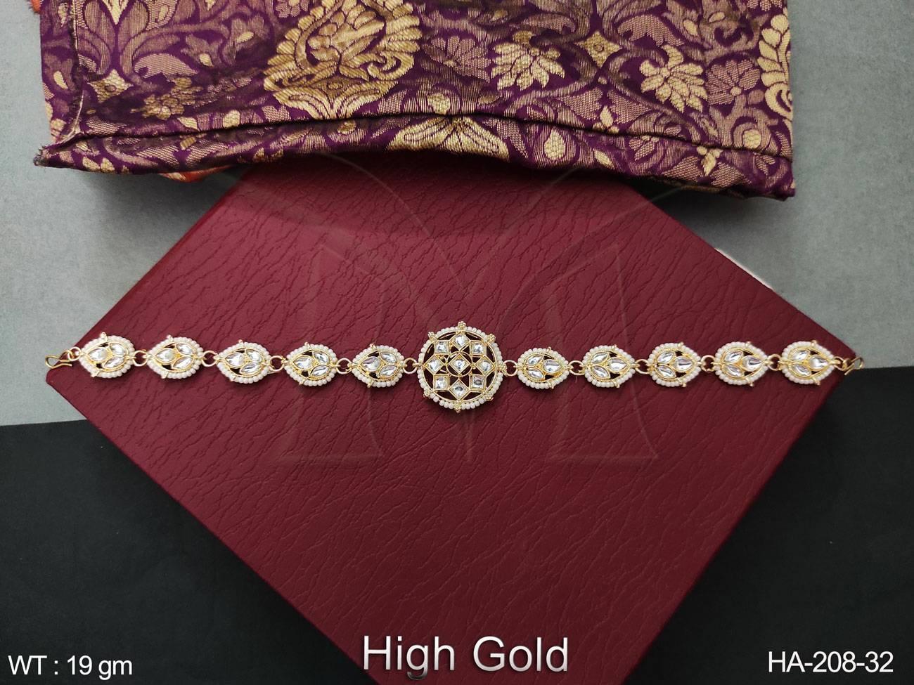 - High Gold Polish Fancy Style Party wear Kundan Jewellery Hair Accessories Matha Patti