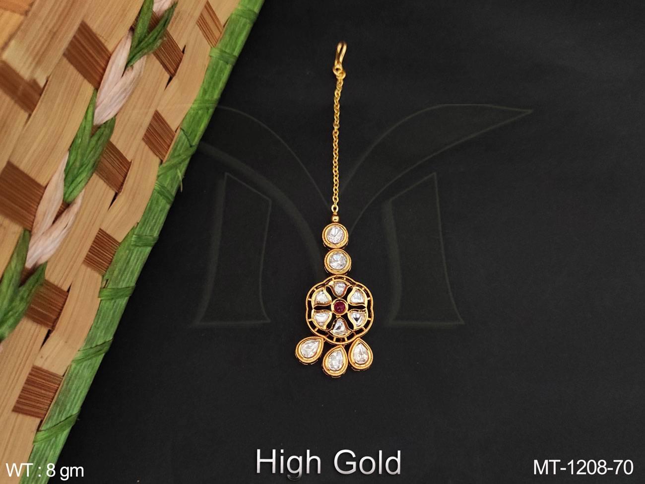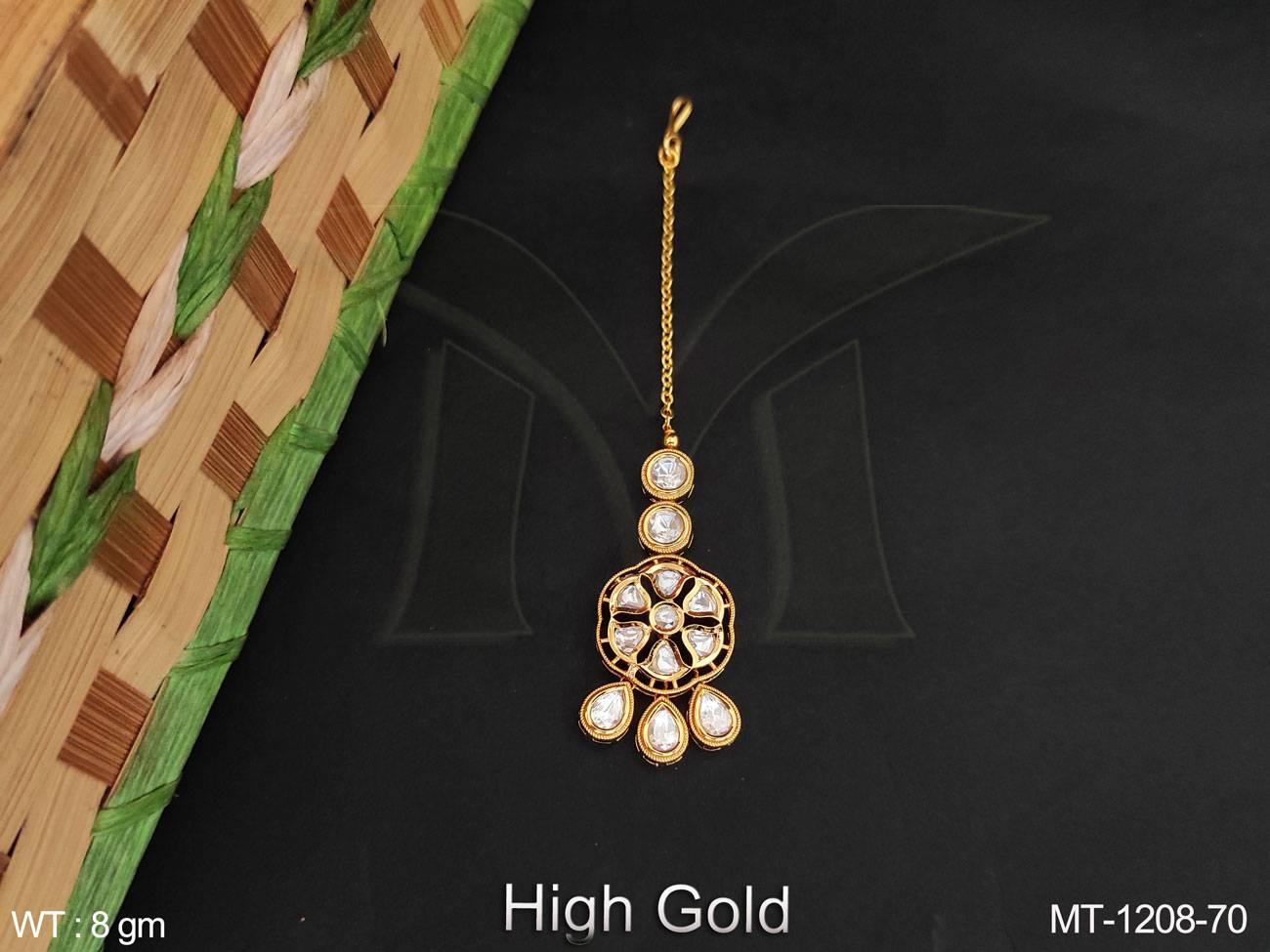 High Gold Polish Full Kundan Party Wear Fancy Designer Kundan Maang Tikka