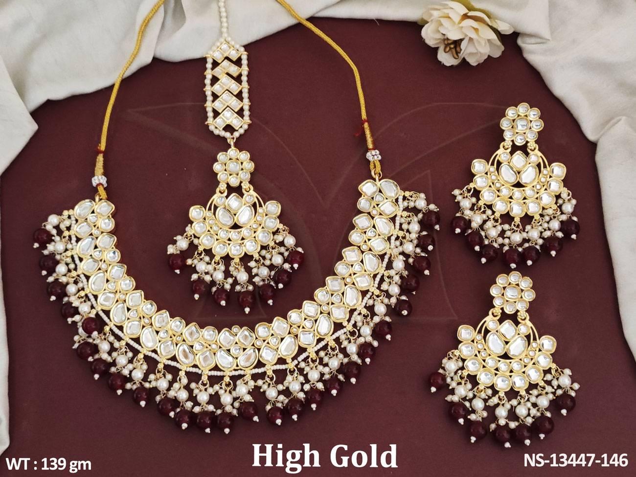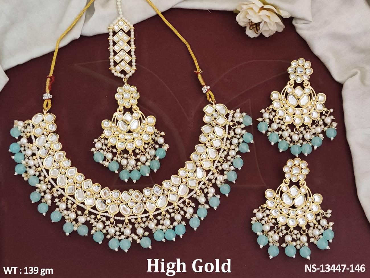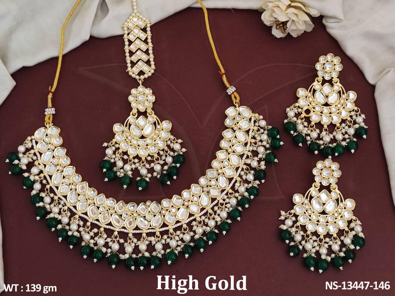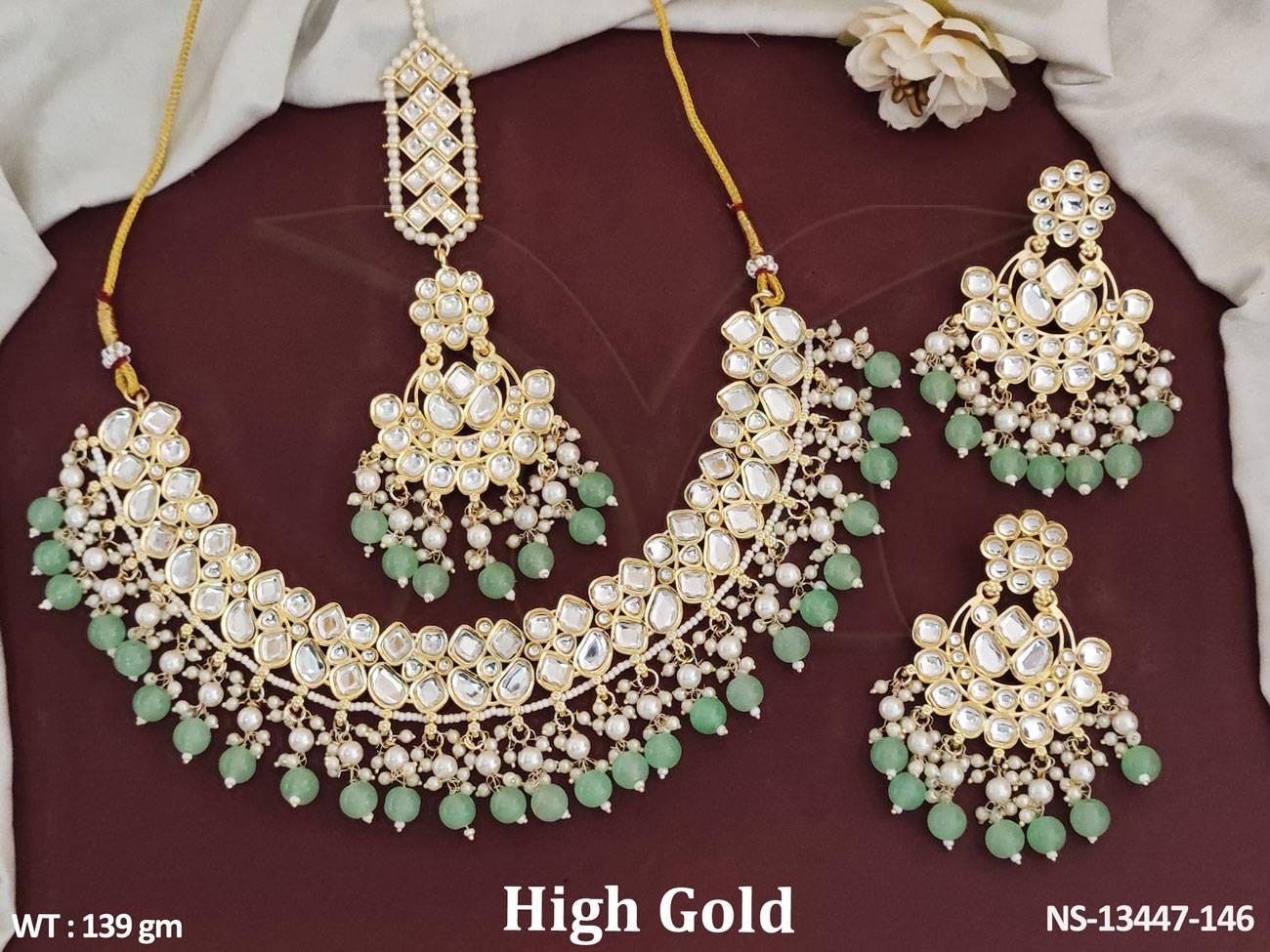 - High Gold Polish Kundan Jewelry Wedding Wear Beautiful Look Traditional Jewelry Heavy Kundan Necklace Set