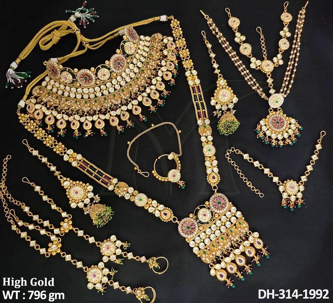 - High Gold Polish Kundan Stones Designer Heavy Kundan Jewellery Kundan Dulhan set