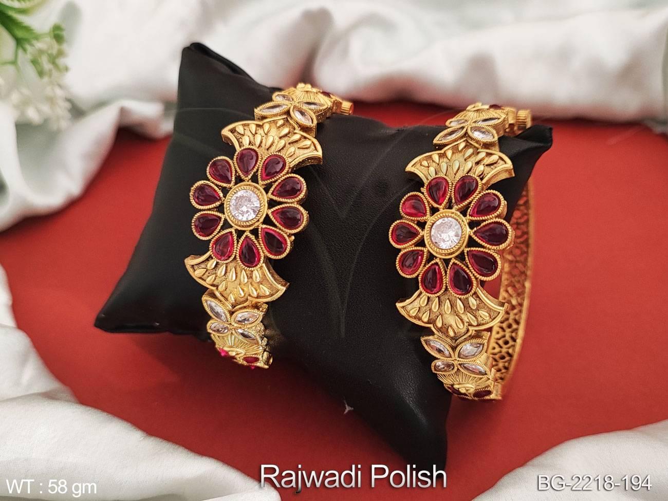 - Kemp Design Rajwadi Polish Fancy Design Party wear Beautiful Kemp Jewellery Kemp Bnagle Set of 2