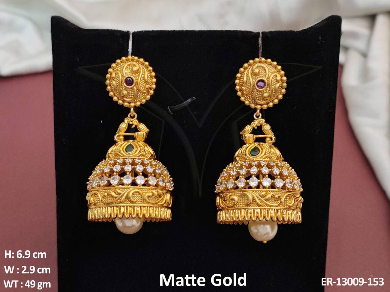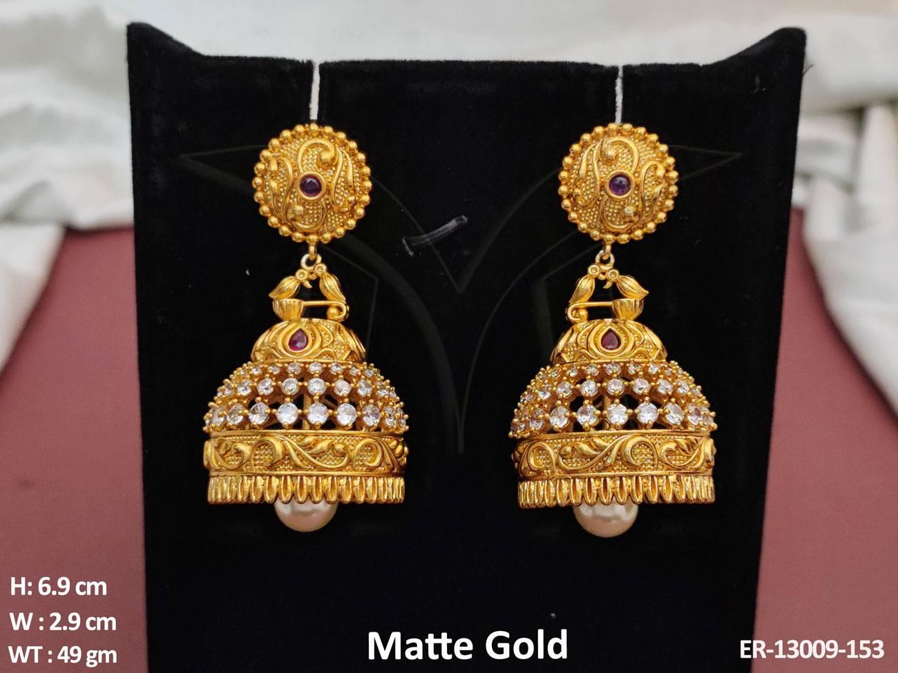 2. Kemp Jewellery Matte Gold Polish Full Stone Kemp Jhumka Earrings