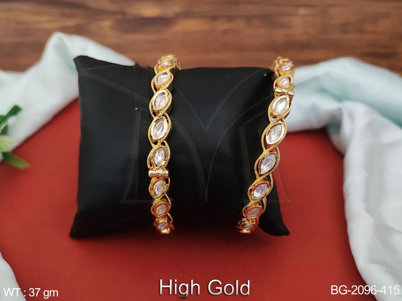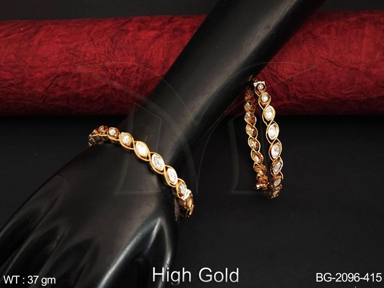 - Kundan Jewellery Designer High Gold Polish Pray Wear 2 Bangles Set