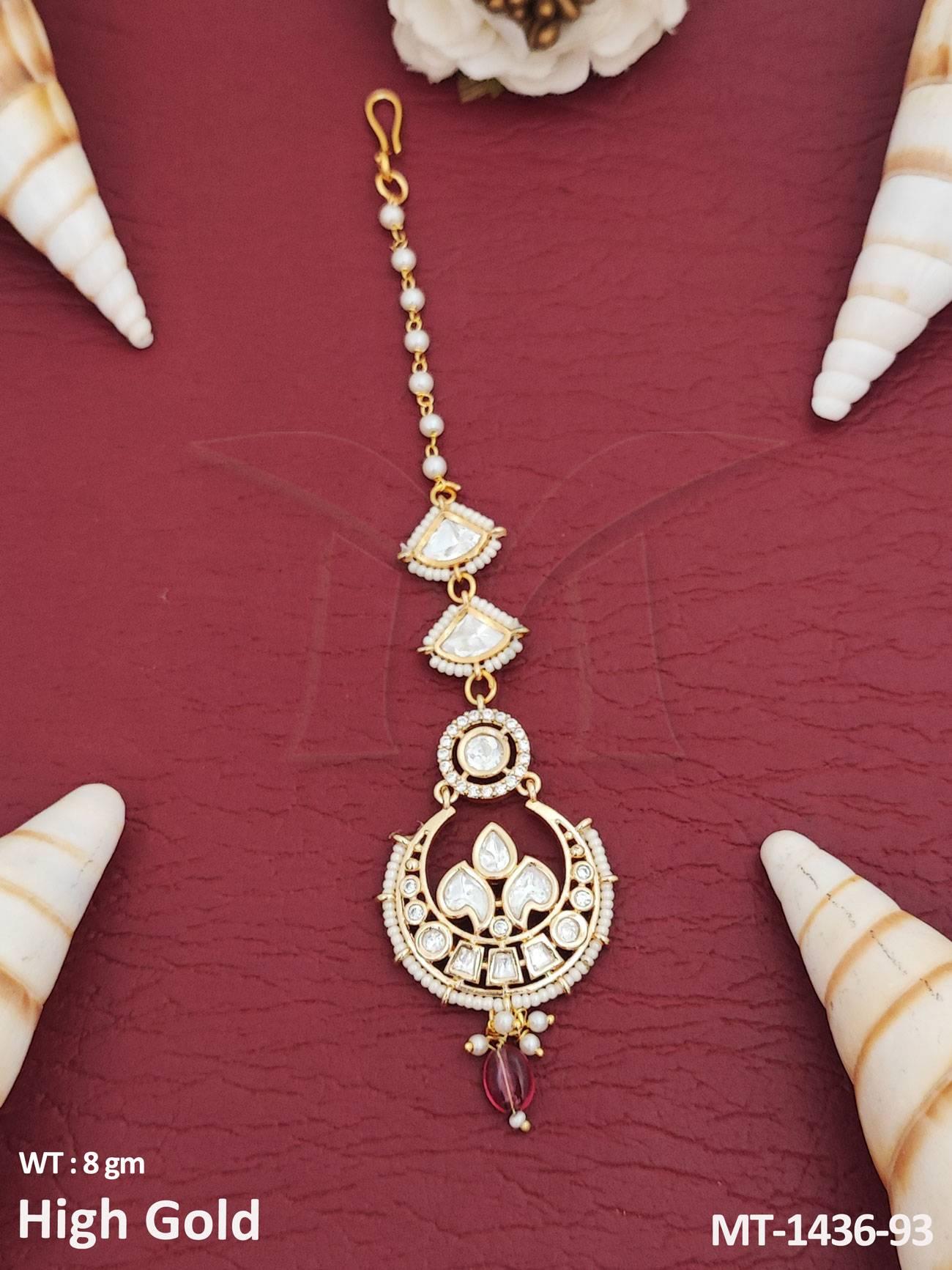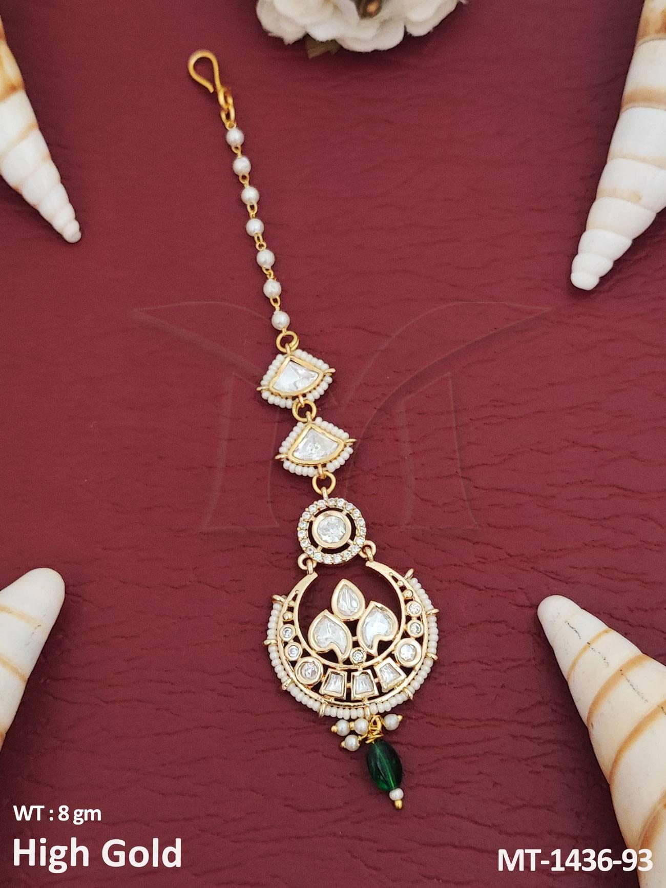 Kundan Jewellery High Gold Polish Clusterpearls Designer Kundan Maang Tikka