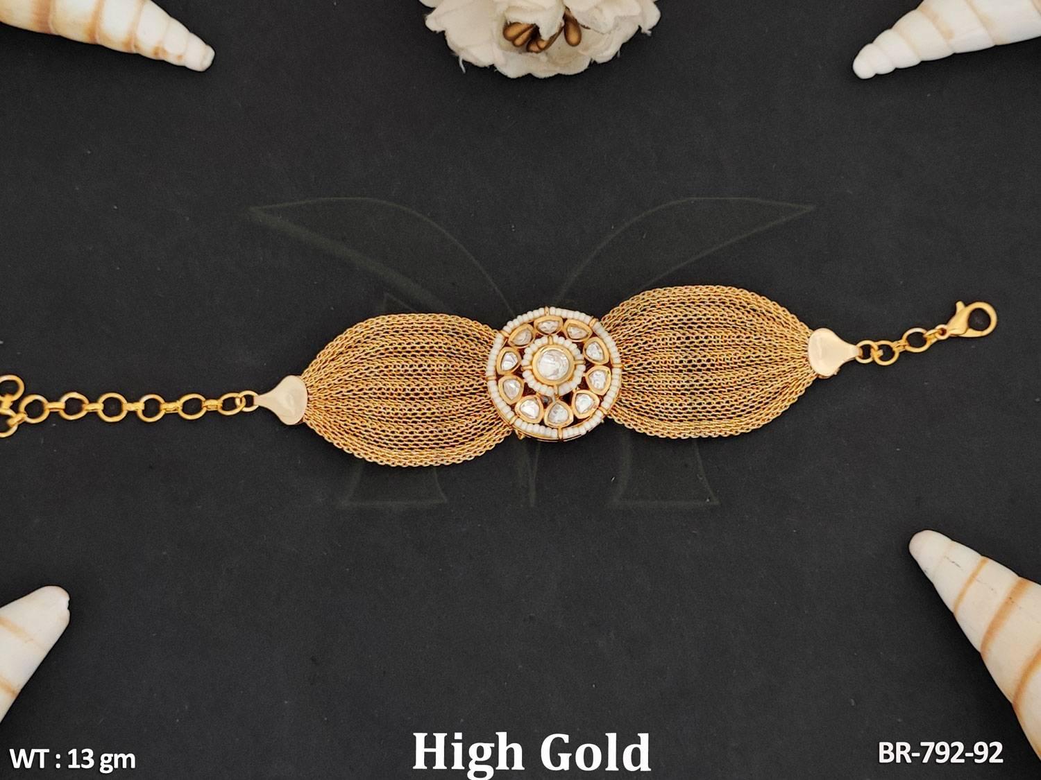 - Kundan Jewellery High gold Polish Designer Party Wear Kundan Bracelet