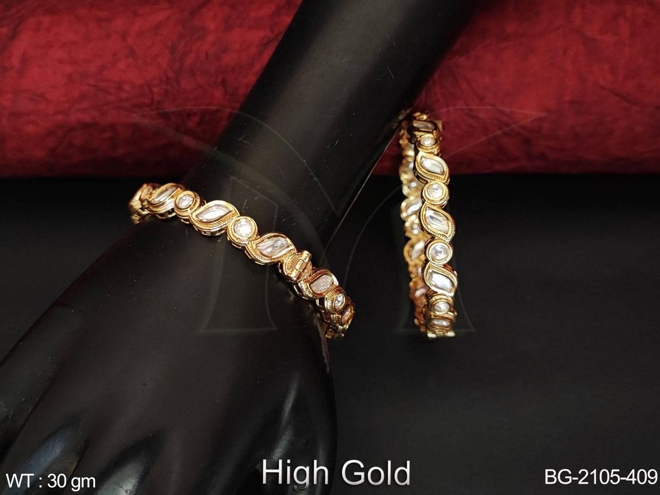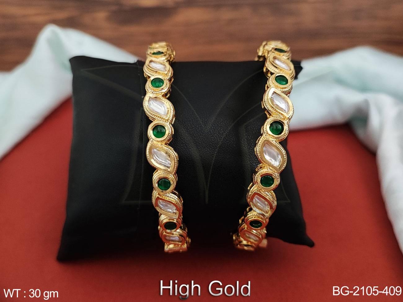 - Kundan Jewellery High Gold Polish Full Stone Party Wear 2 Bangles