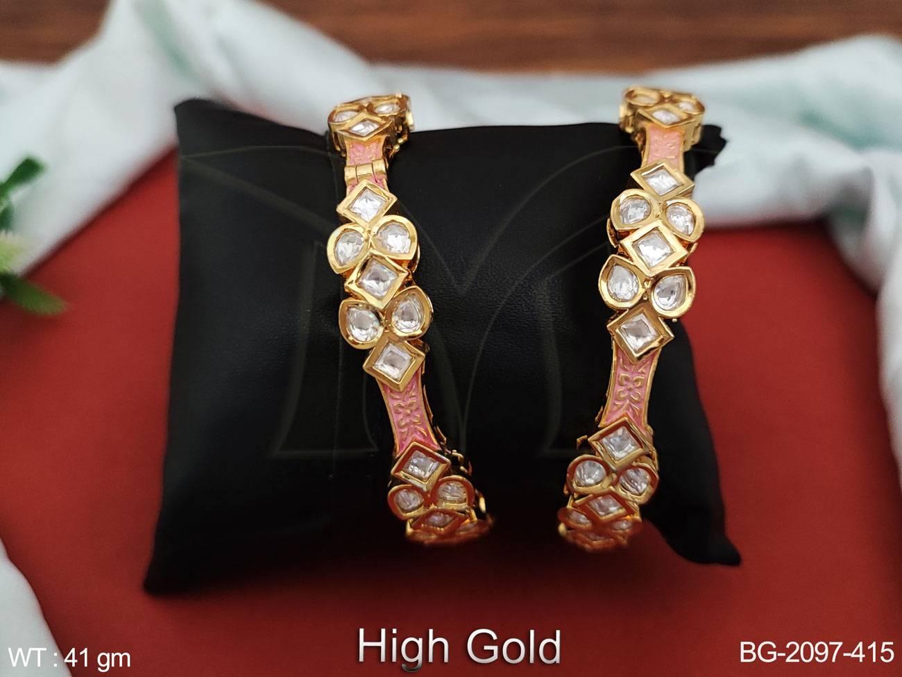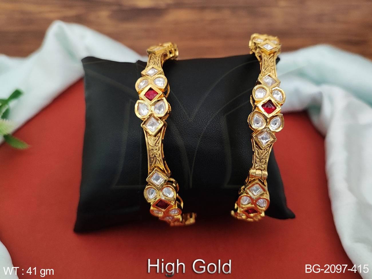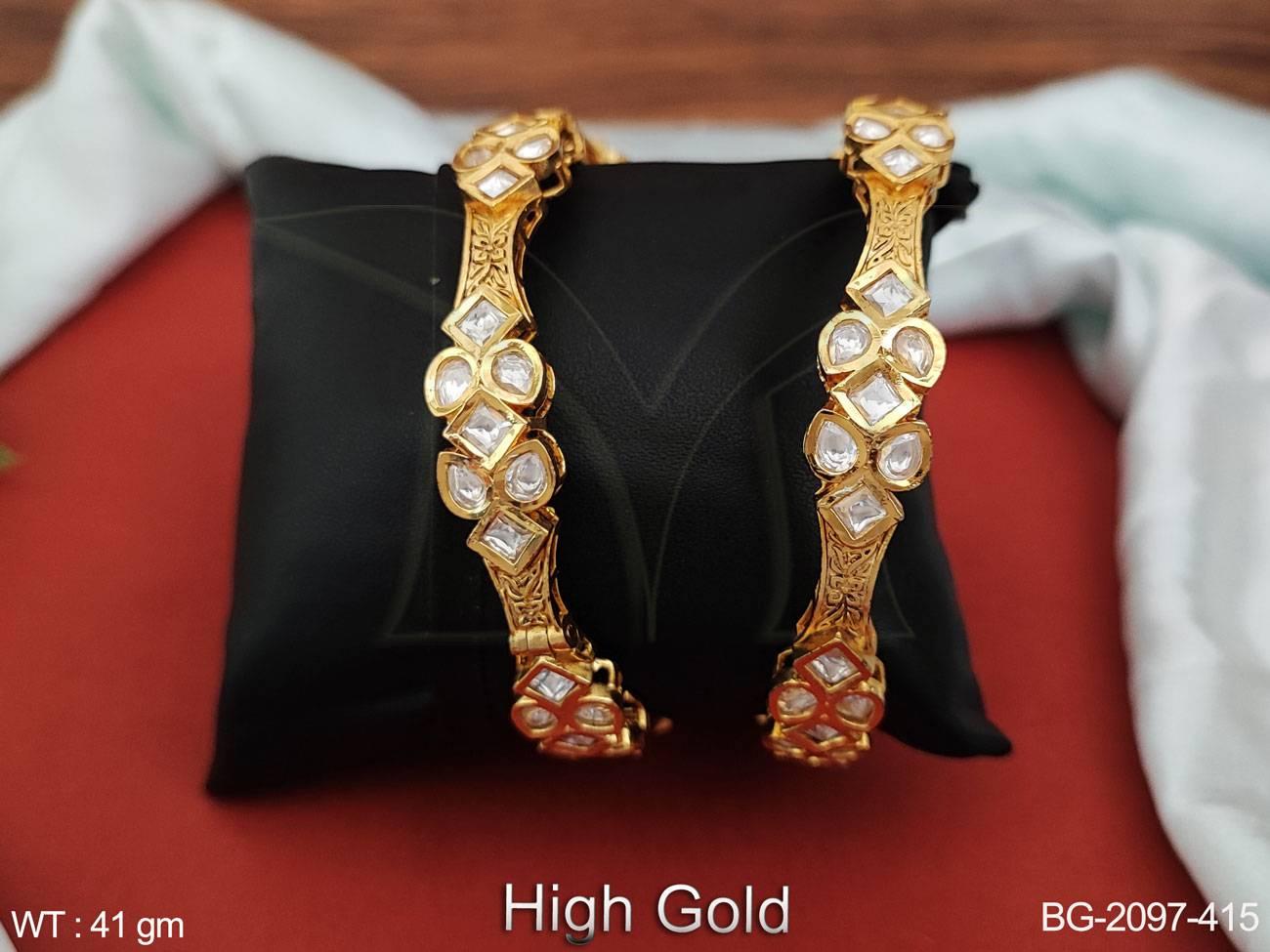 - Kundan Jewellery High Gold Polish Full Stone Party Wear Bangles